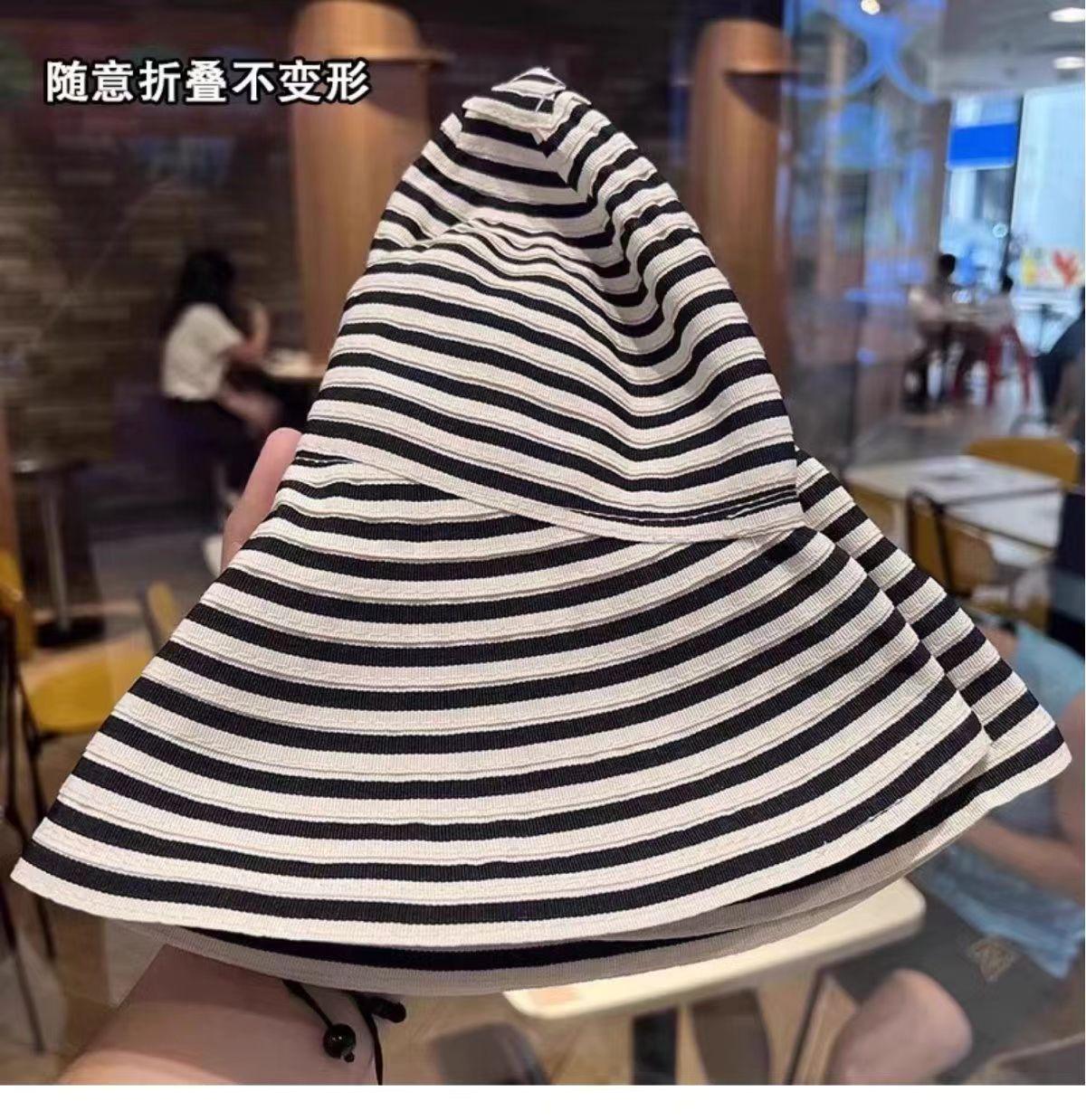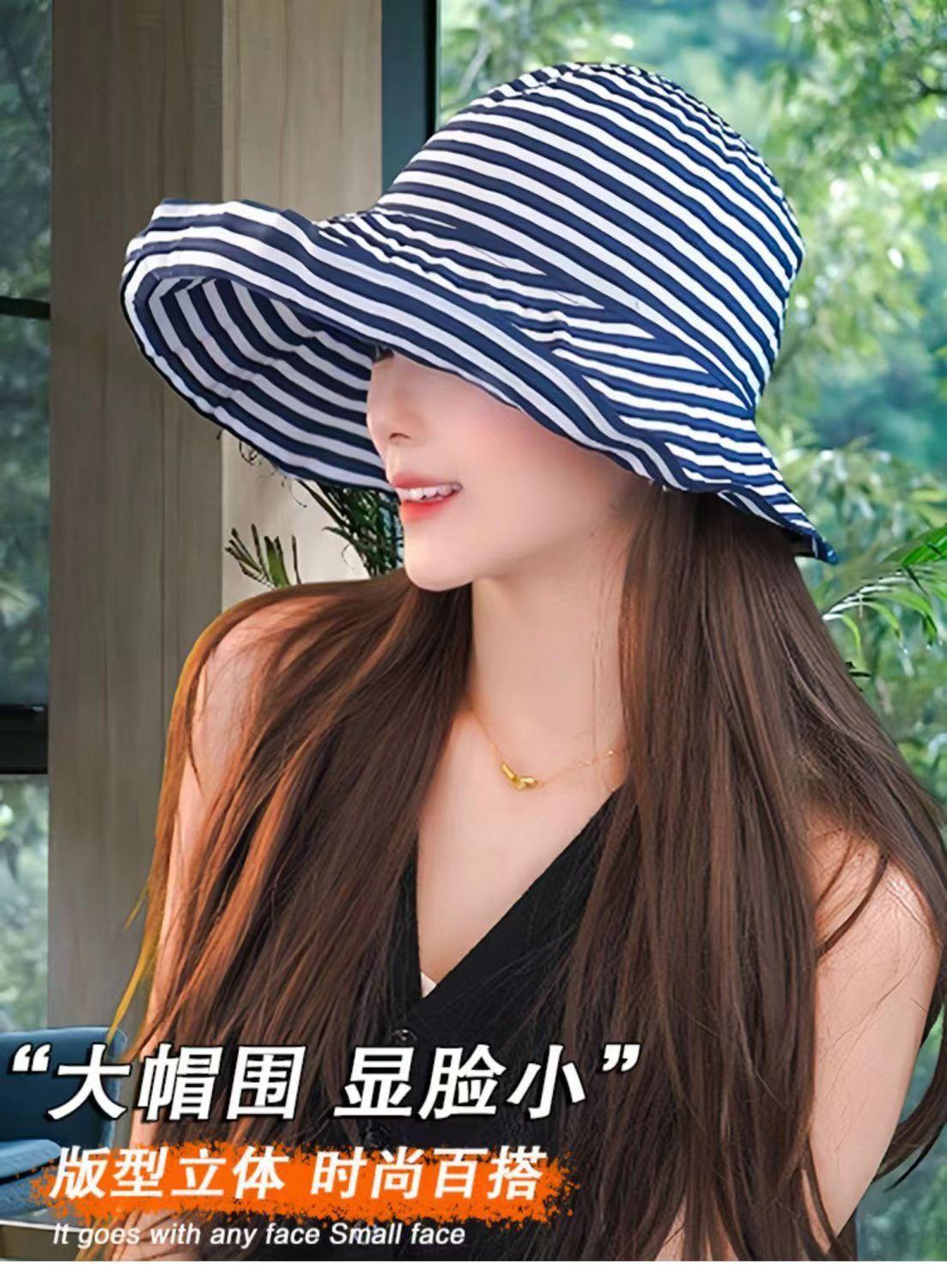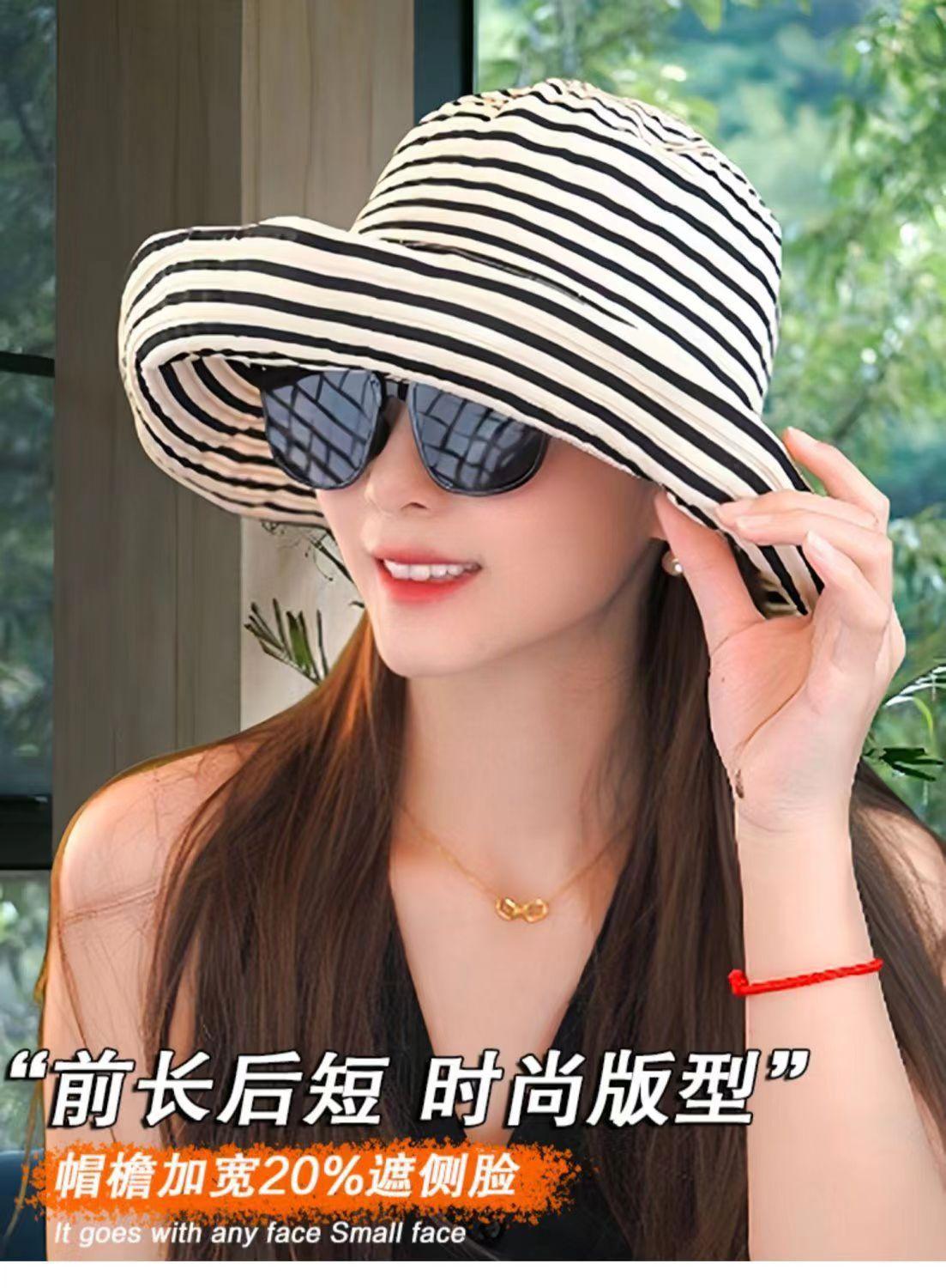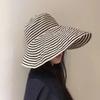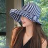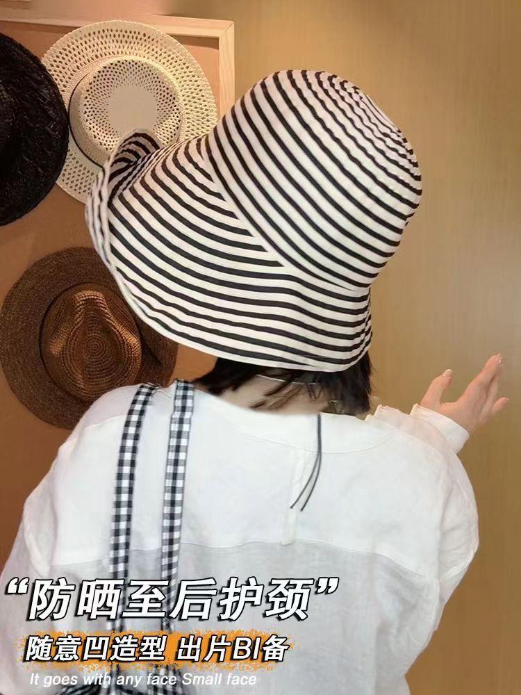 Sombrero de pescador a rayas de primavera y verano para mujer, estilo japonés, plegable, nuevo, largo, protector solar, sombrero de lavabo de moda, sombrero de sol de cabeza grande.