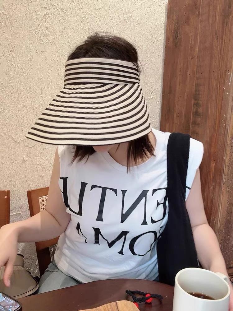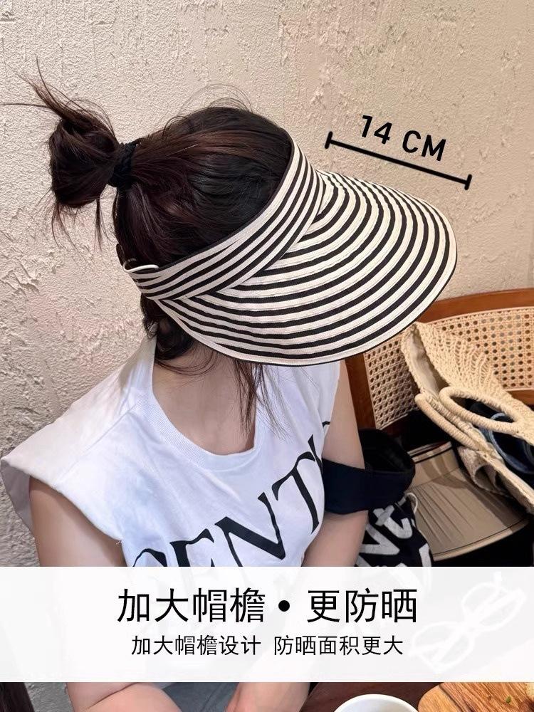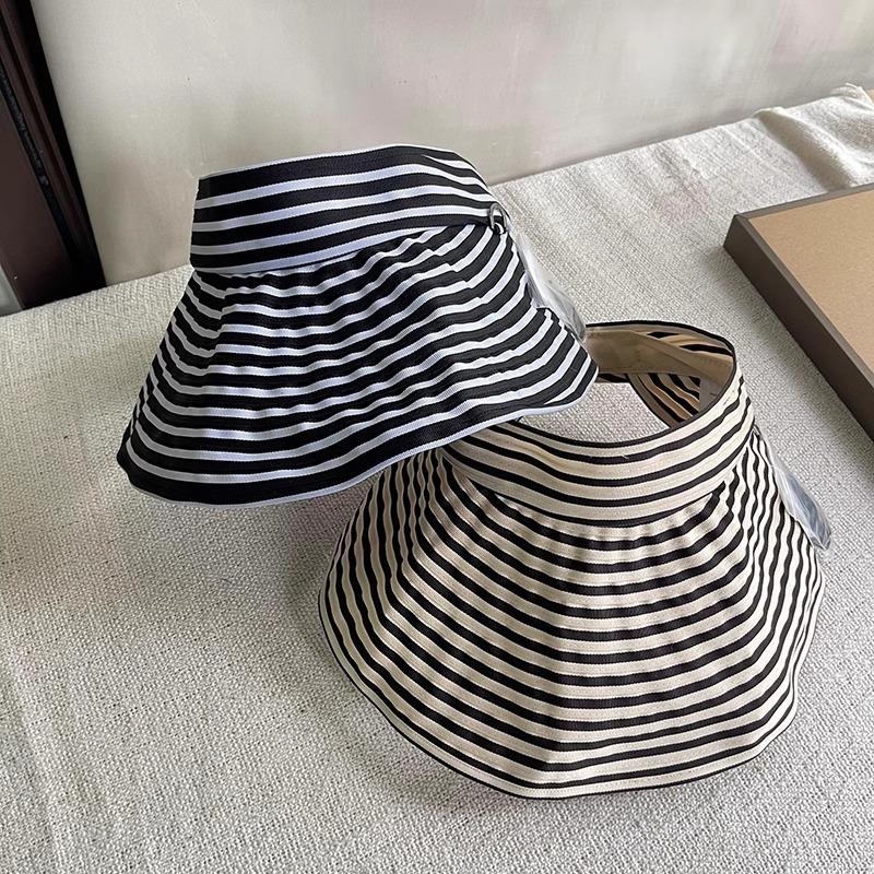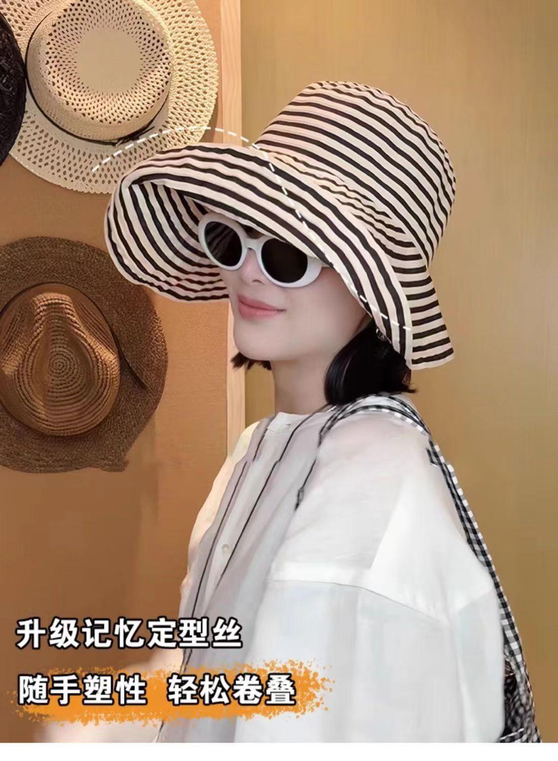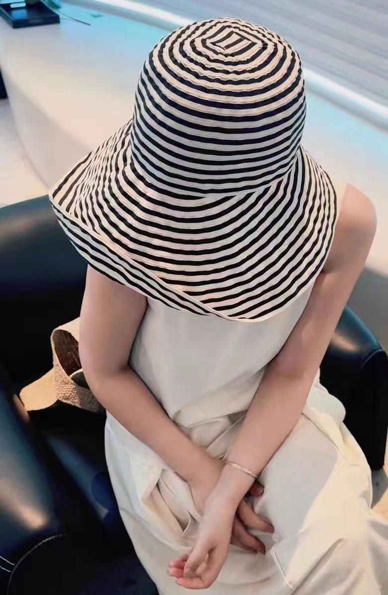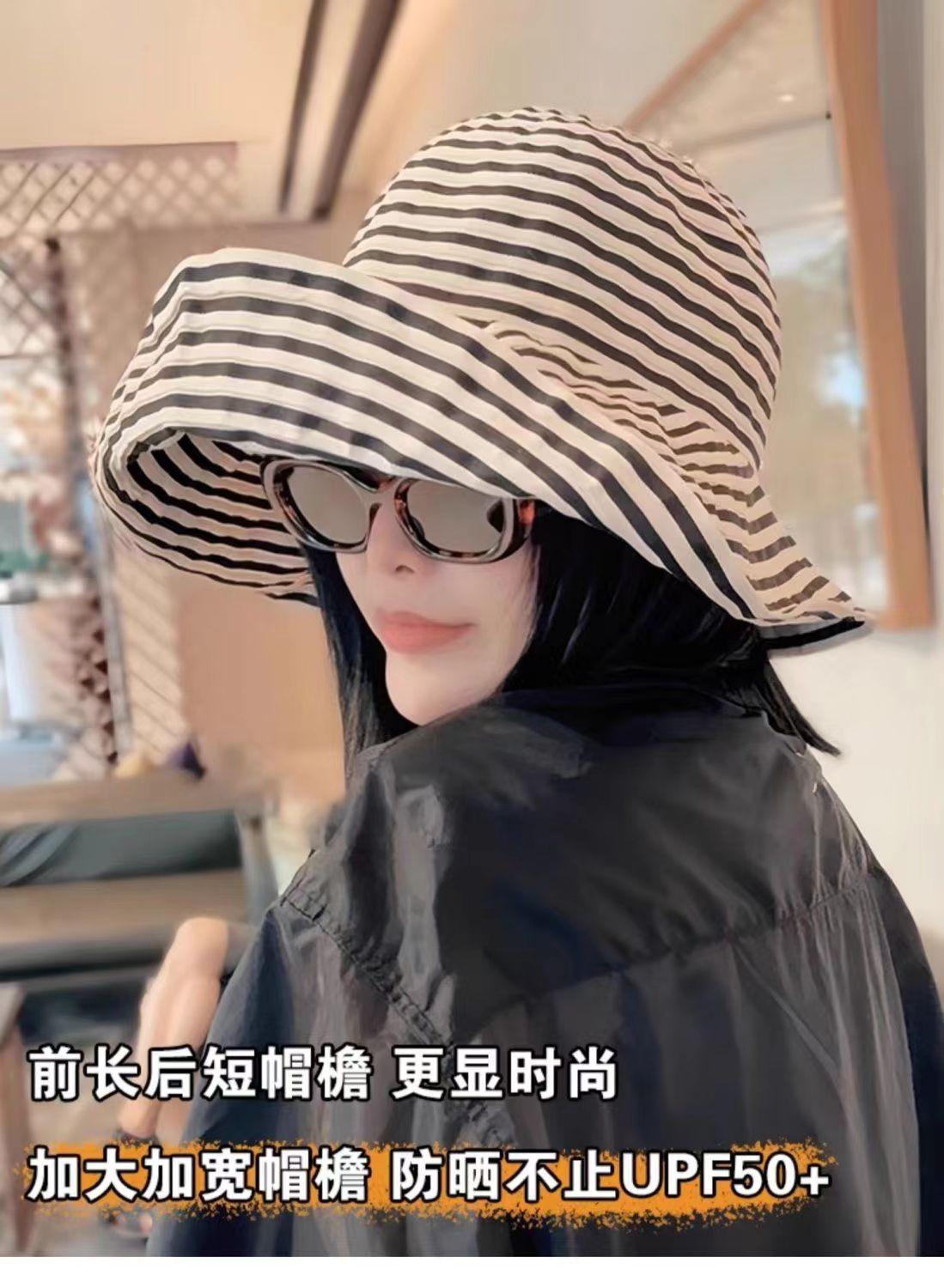 Sombrero de pescador a rayas de primavera y verano para mujer, estilo japonés, plegable, nuevo, largo, protector solar, sombrero de lavabo de moda, sombrero de sol de cabeza grande.