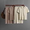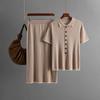 Suéter de punto, cárdigan, falda, traje de dos piezas, falda de manga corta con solapa para mujer, primavera y verano 2025