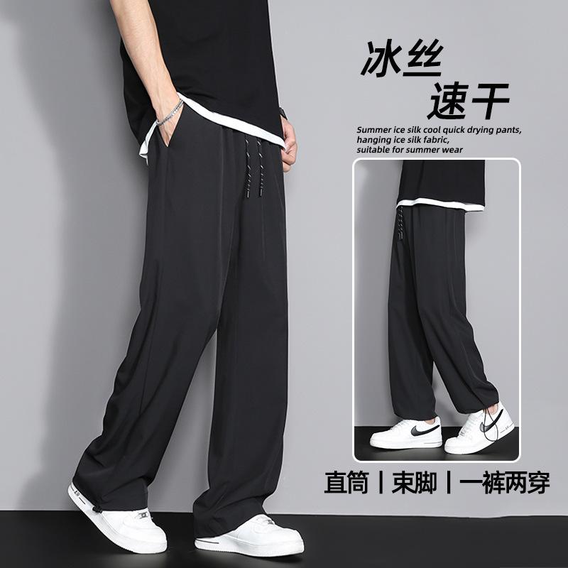 Pantalones de Seda de Hielo de Verano Unisex Verano Frescos Transpirables de Secado Rápido Pantalones Delgados Combinan con Todo Negros Pantalones Deportivos Pantalones Casuales