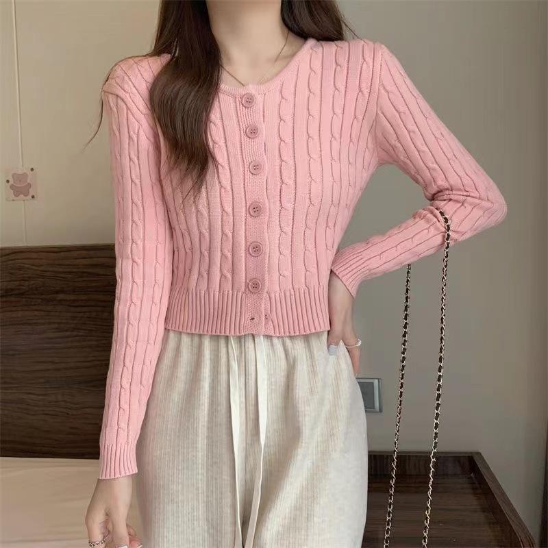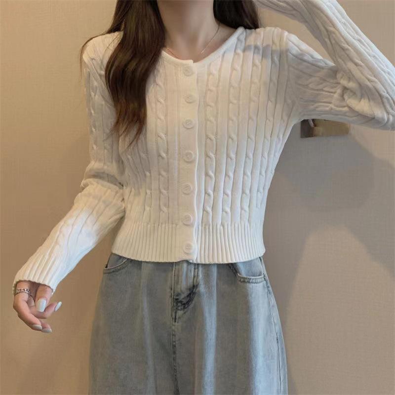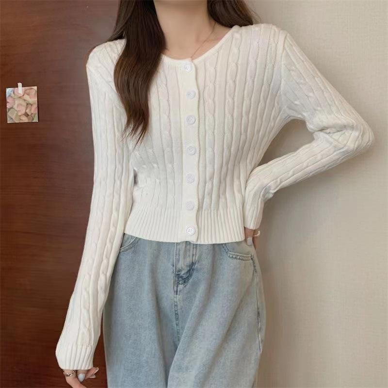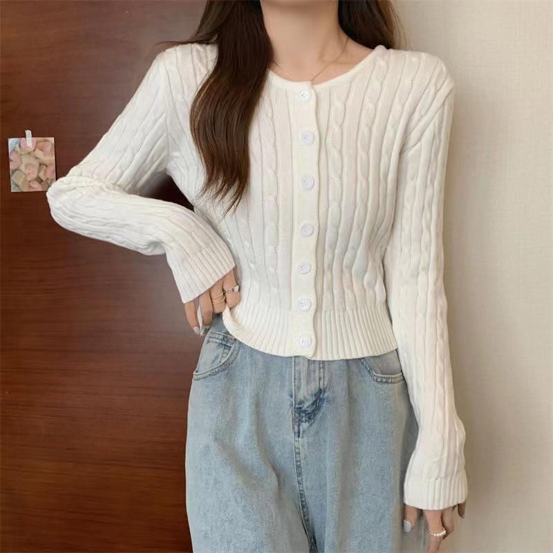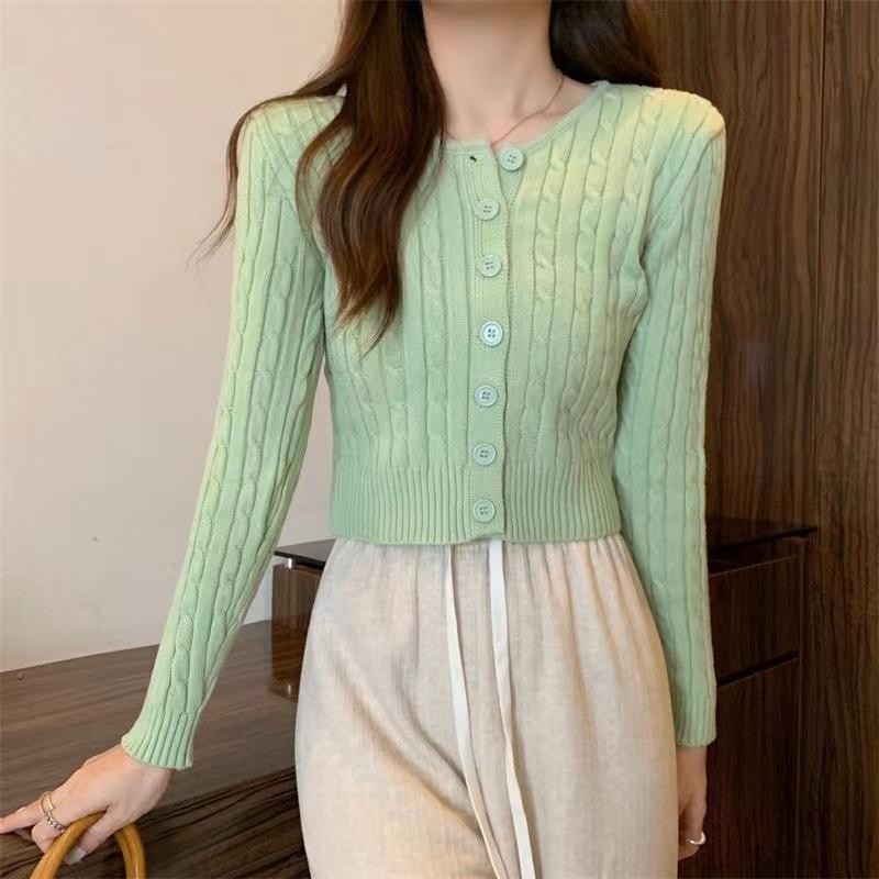 Suéter de punto trenzado vintage, cárdigan francés de un solo pecho, de cintura alta, adelgazante, primavera y otoño de 2025.