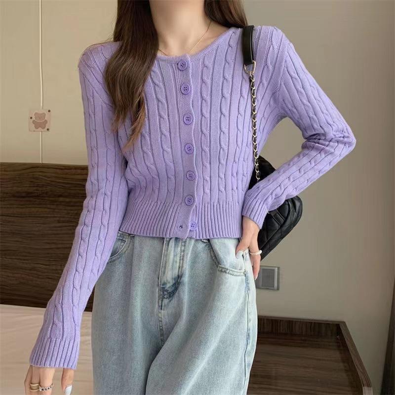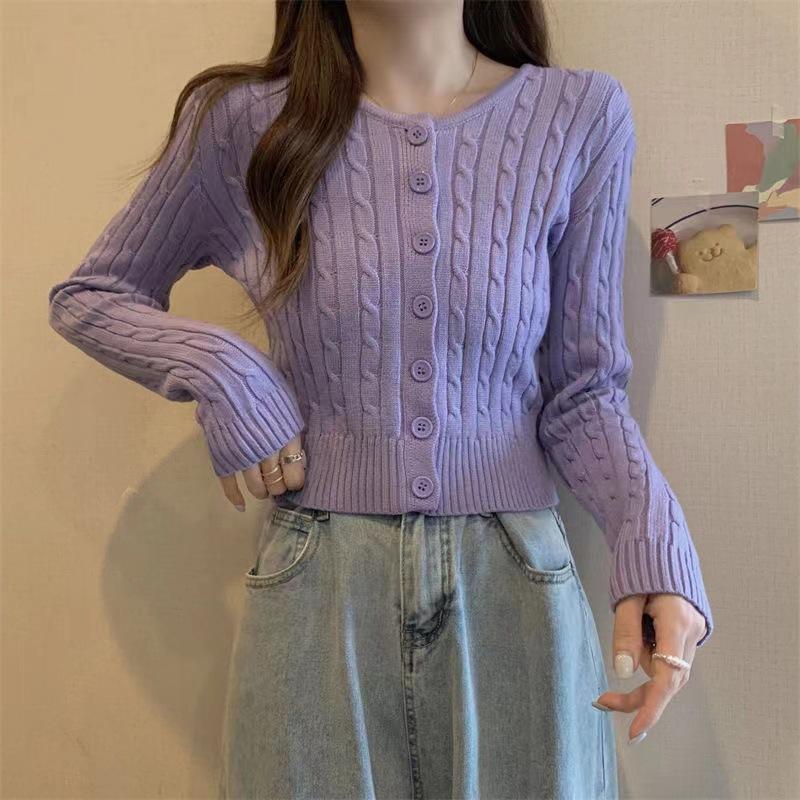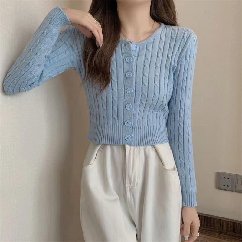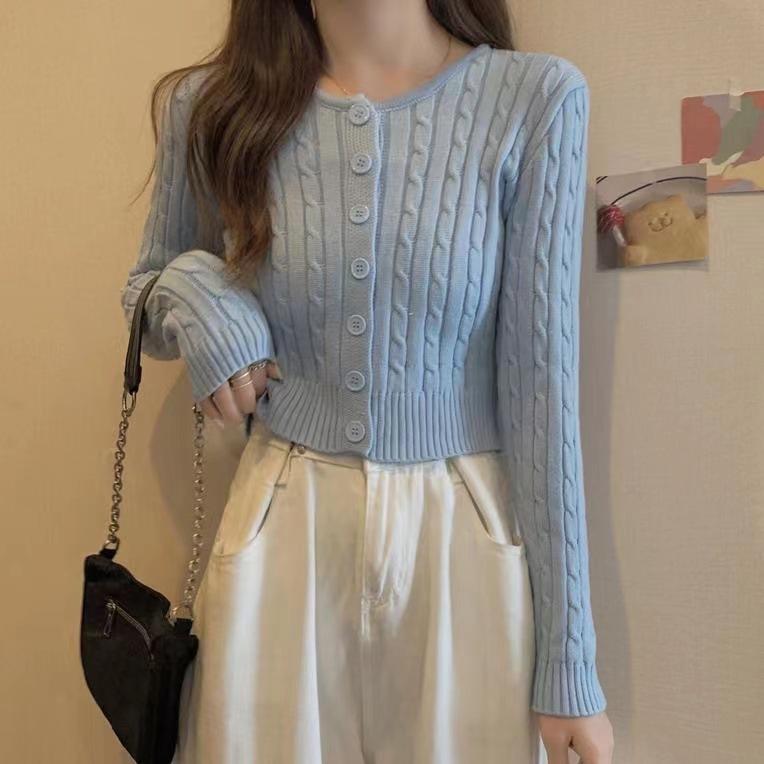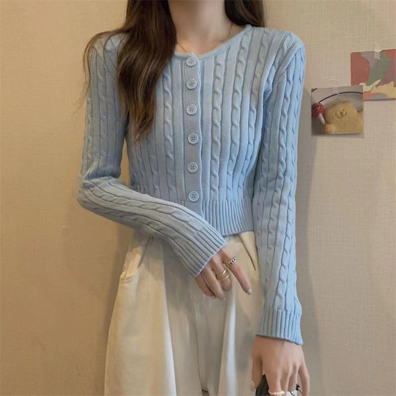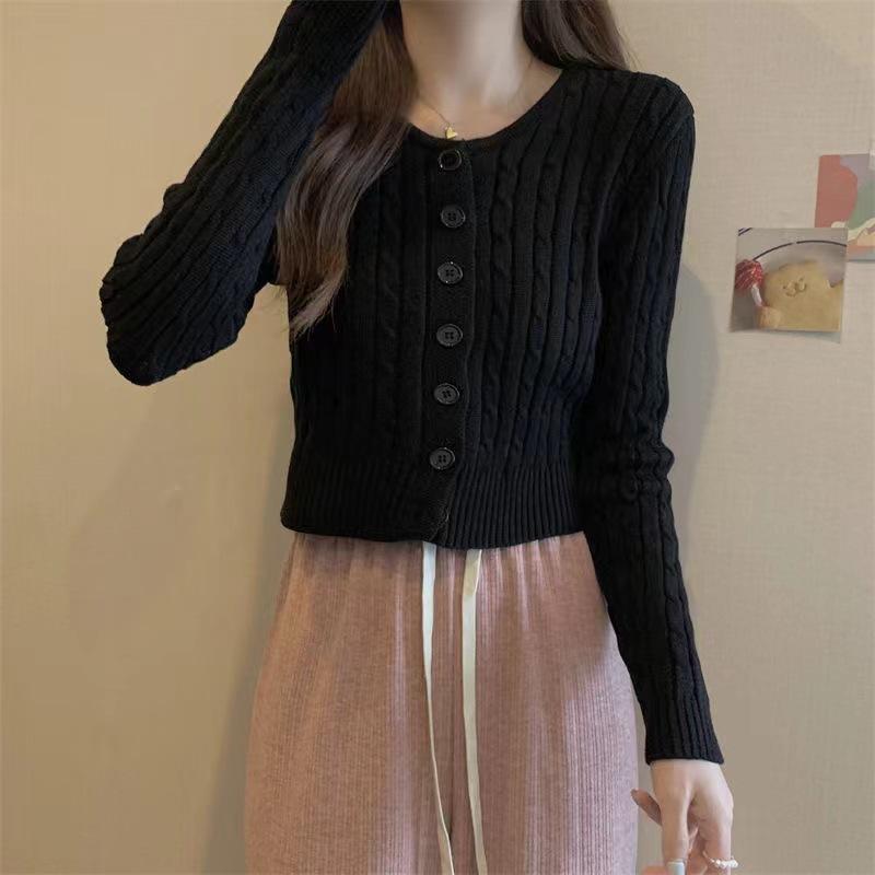 Suéter de punto trenzado vintage, cárdigan francés de un solo pecho, de cintura alta, adelgazante, primavera y otoño de 2025.