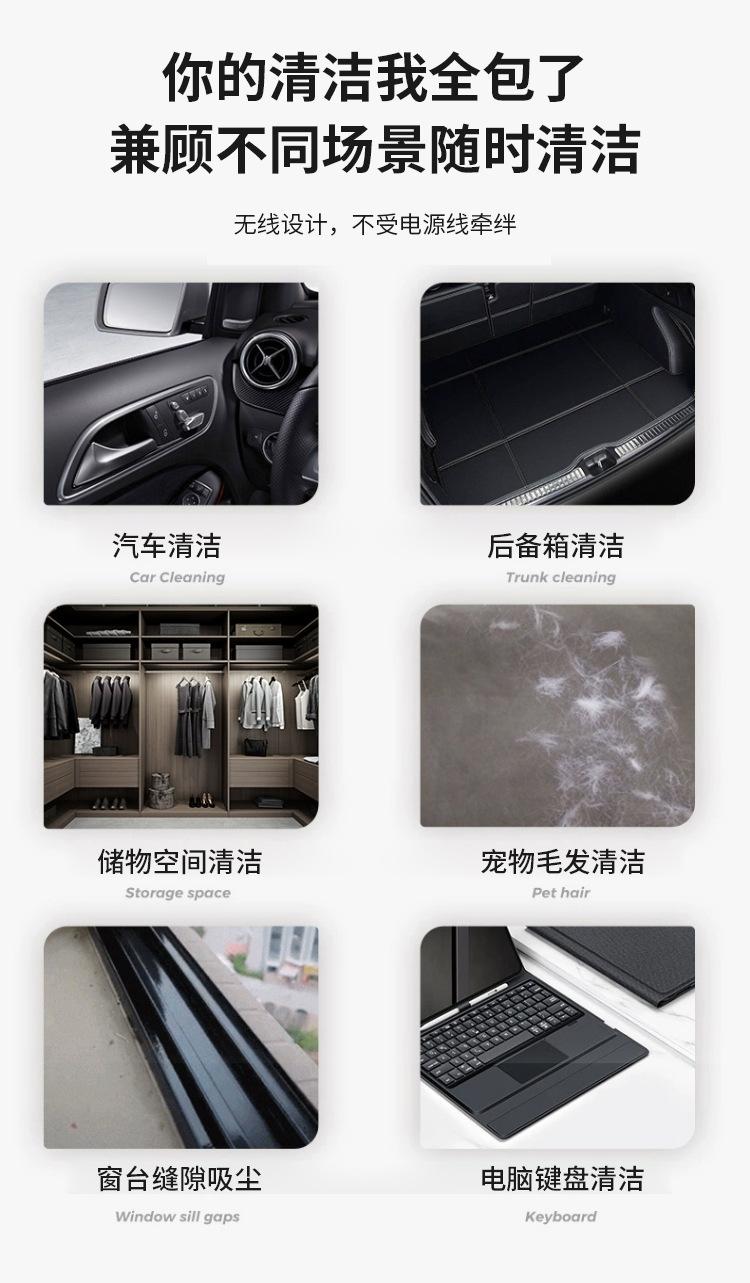 Potente aspiradora de coche de alta potencia, inalámbrica, de mano, portátil, pequeña, para el hogar, de escritorio, colector de polvo
