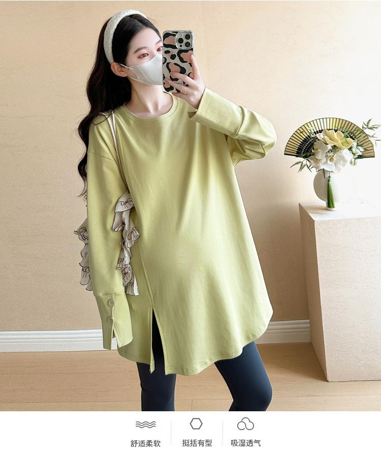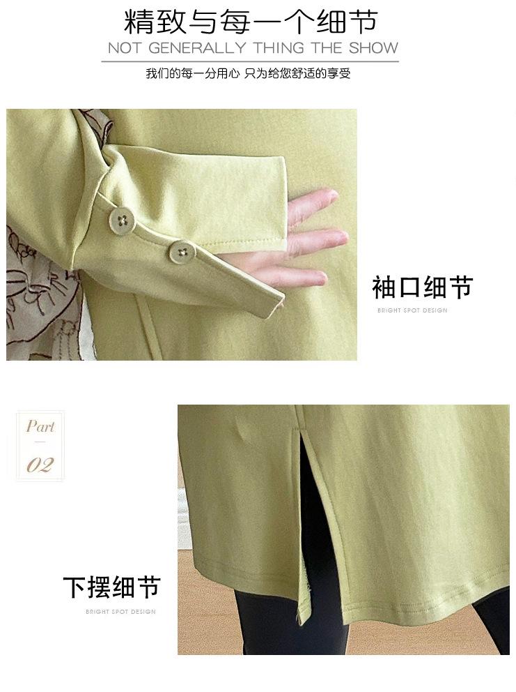 En stock 2025 Primavera Calidad Nuevo Vestido de Maternidad Suelto Moda Moda Mamá Casual Tallas grandes Nuevo Estilo Chino Camiseta para Mujeres Embarazadas