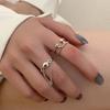 Anillo de Línea de Doble Capa Roscado para Mujer Moda Retro Creativo Corazón Plata S925 Anillo Abierto Anillo para Dedo Índice Trendy
