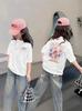 Camiseta de verano de manga corta para niños y niñas, estilo occidental, de moda para niños, estilo coreano, con estampado de dibujos animados de oso, de media manga