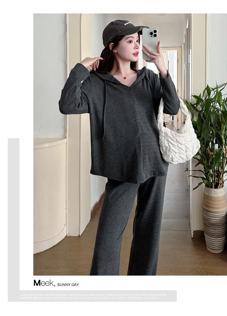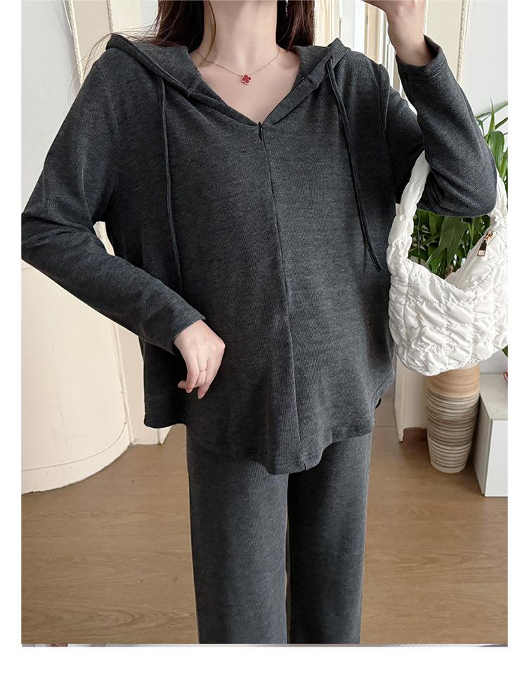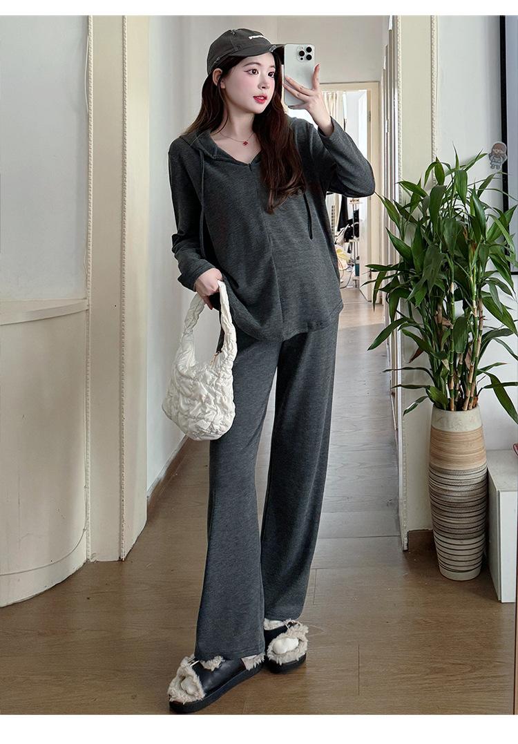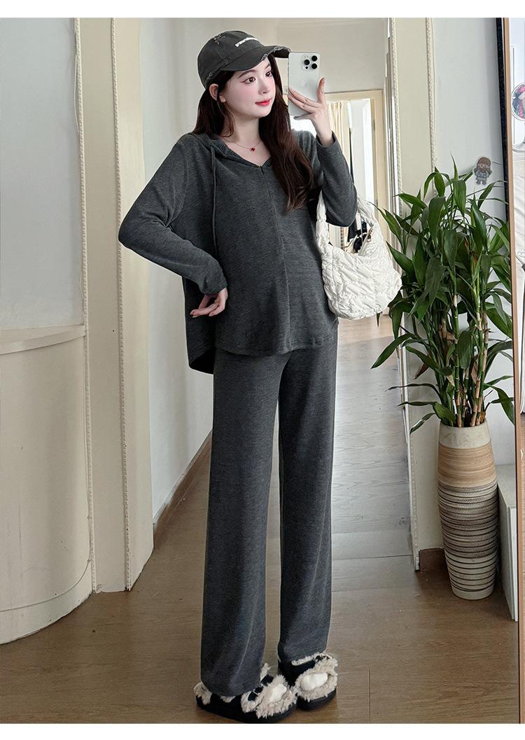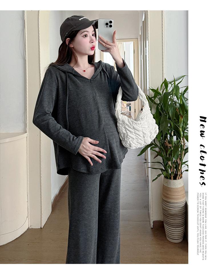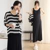En stock, traje de otoño para mujeres embarazadas, suéter de punto coreano, falda de hebra suelta, camisa de base de manga larga, conjunto de dos piezas para mujeres embarazadas