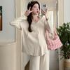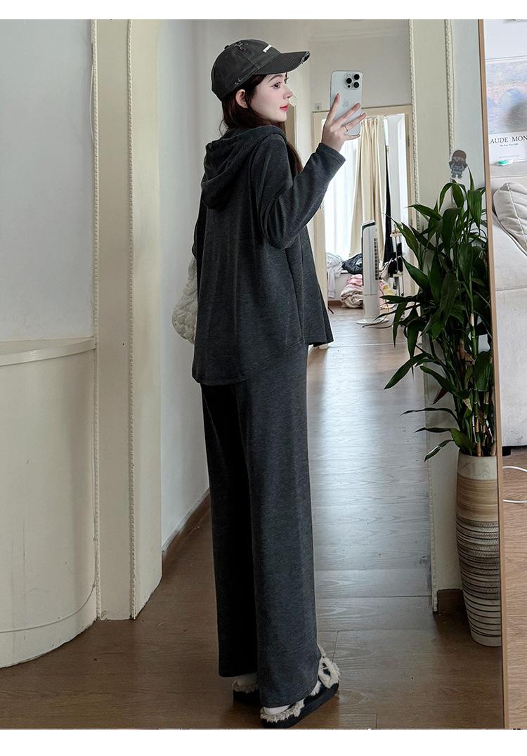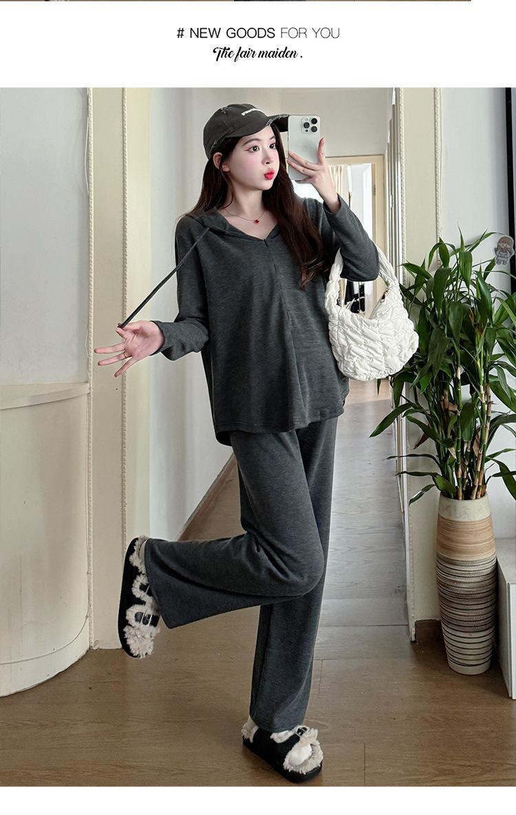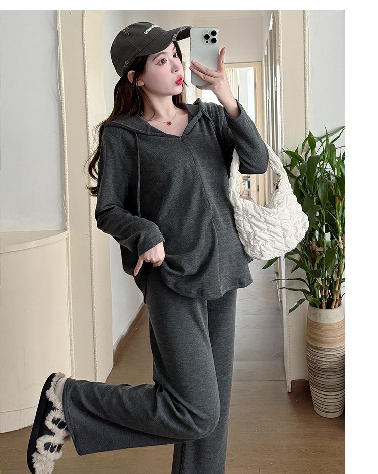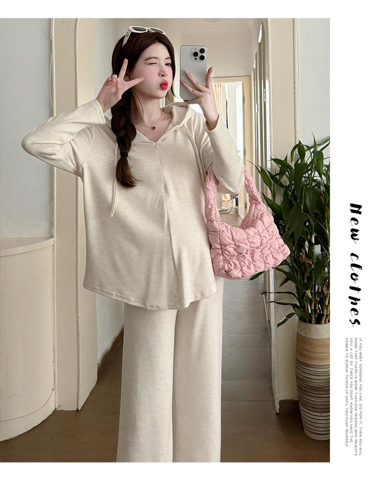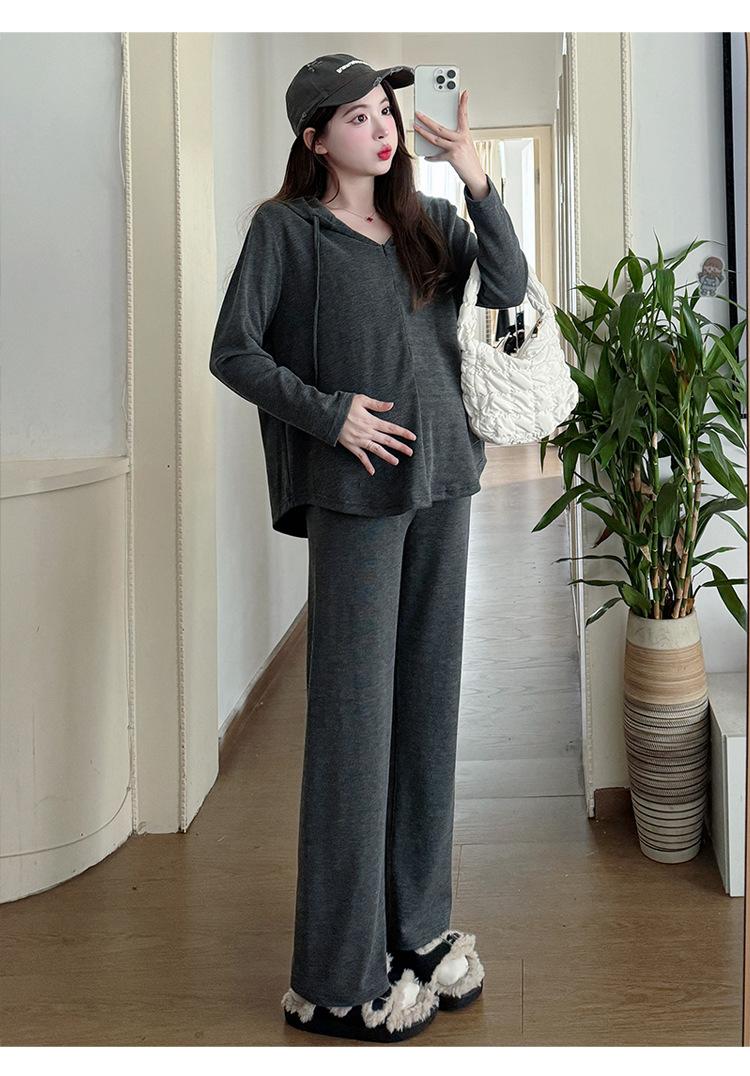 En stock, traje de otoño para mujeres embarazadas, suéter de punto coreano, falda de hebra suelta, camisa de base de manga larga, conjunto de dos piezas para mujeres embarazadas