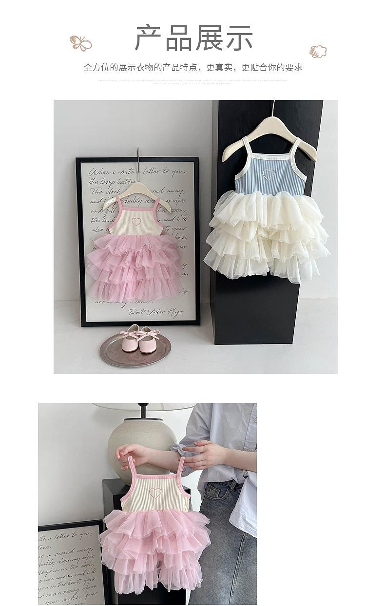 Vestido para Bebé Niña 2025 Verano Nuevo Bebé Sling Falda Abullonada Costuras Falda de Malla Niña Falda de Pastel