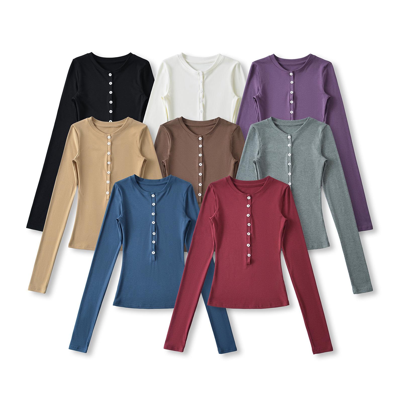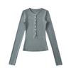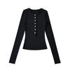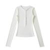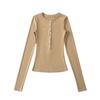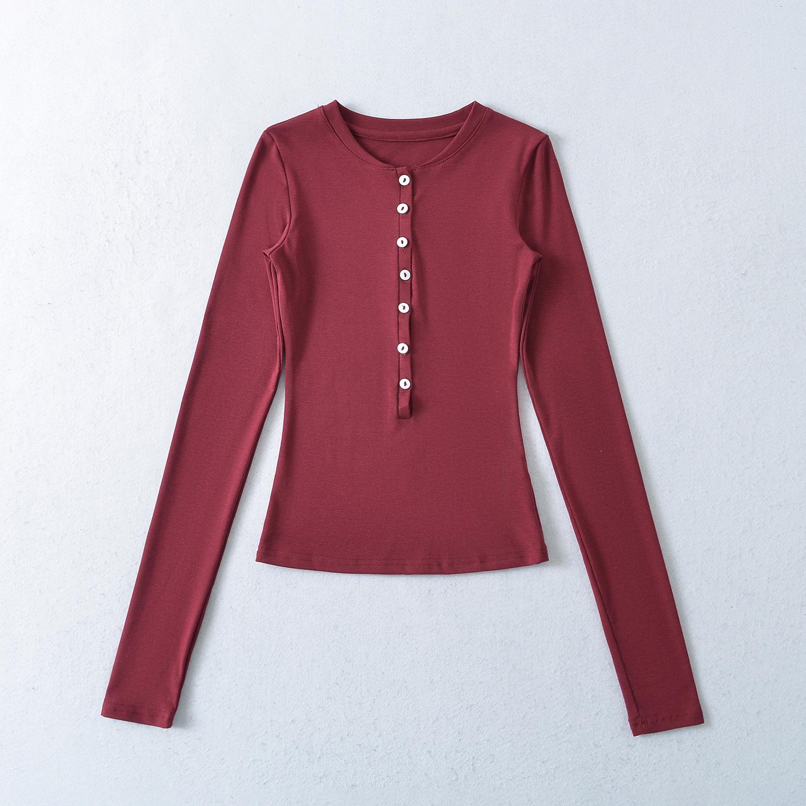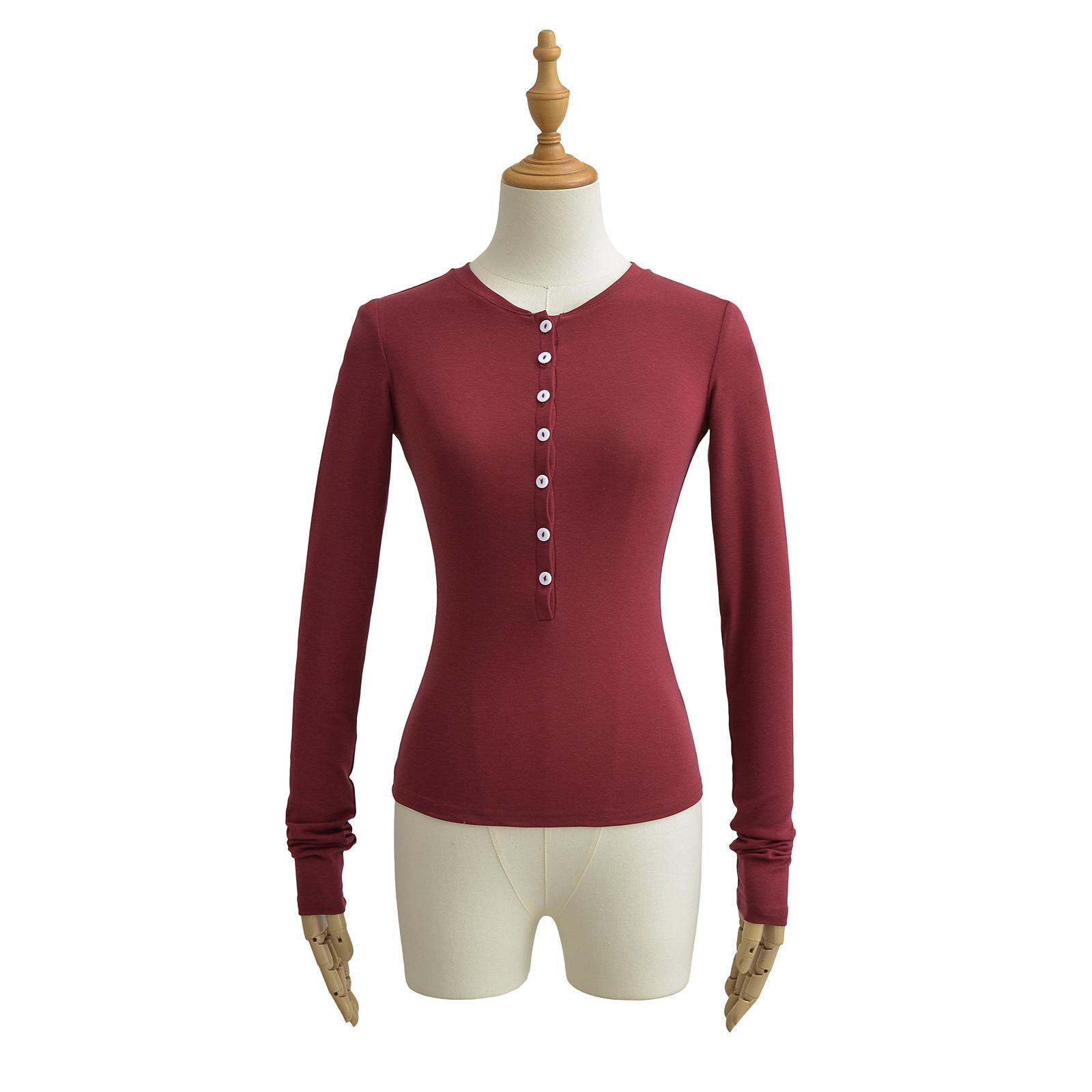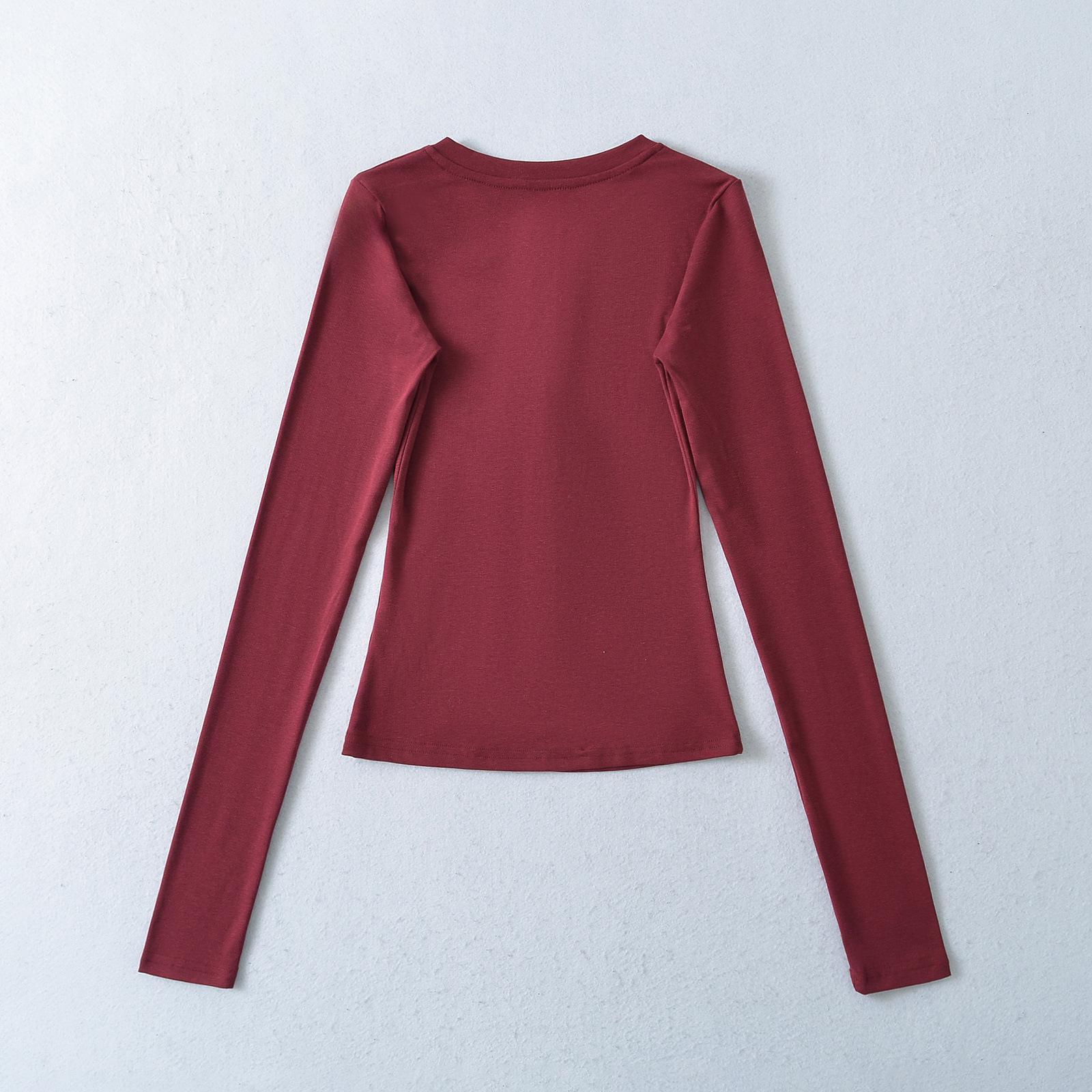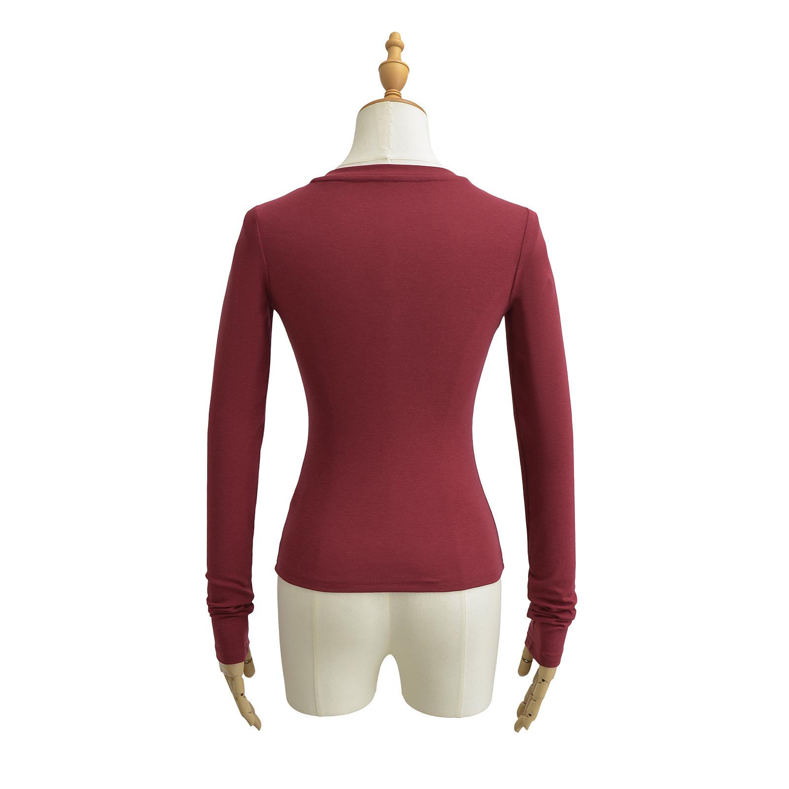 Camiseta básica de manga larga de algodón de corte entallado Spice Girl de otoño e invierno, ajustada, elástica y adelgazante, con hebilla decorativa.