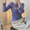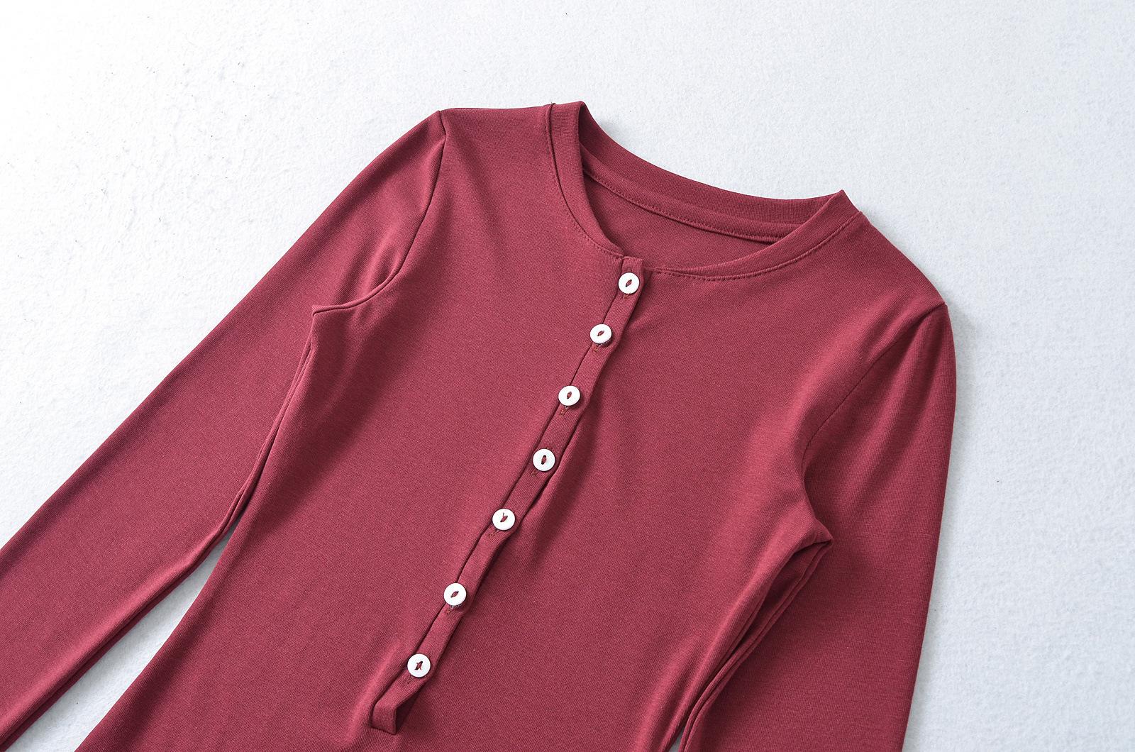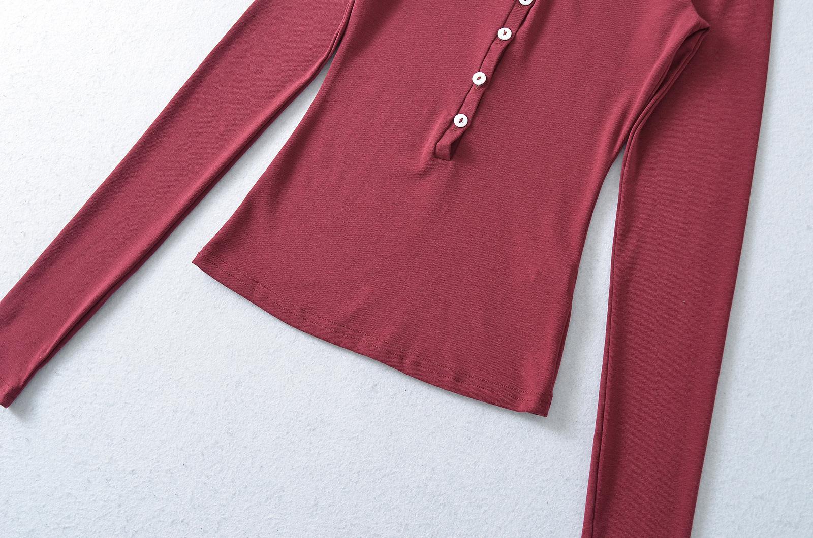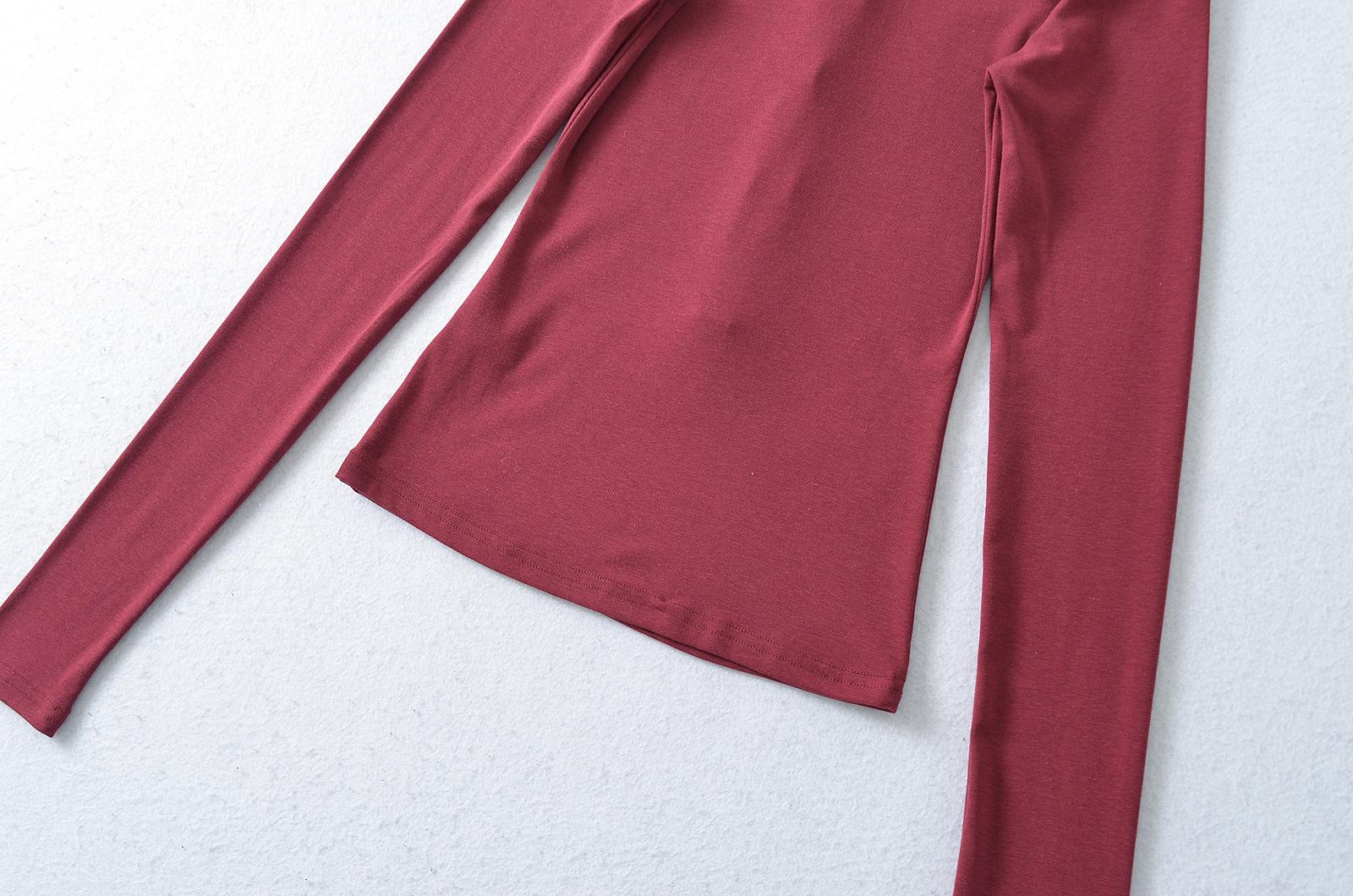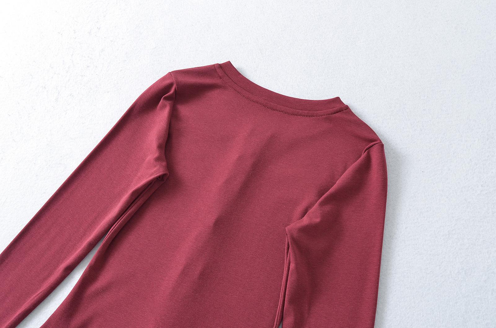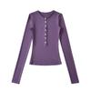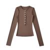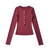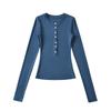 Camiseta básica de manga larga de algodón de corte entallado Spice Girl de otoño e invierno, ajustada, elástica y adelgazante, con hebilla decorativa.