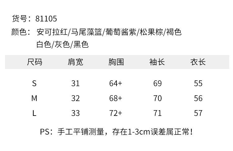 Angora red, Horse algae blue, Grape paste purple, Pine cone brown, Brown, White, Black, Gray