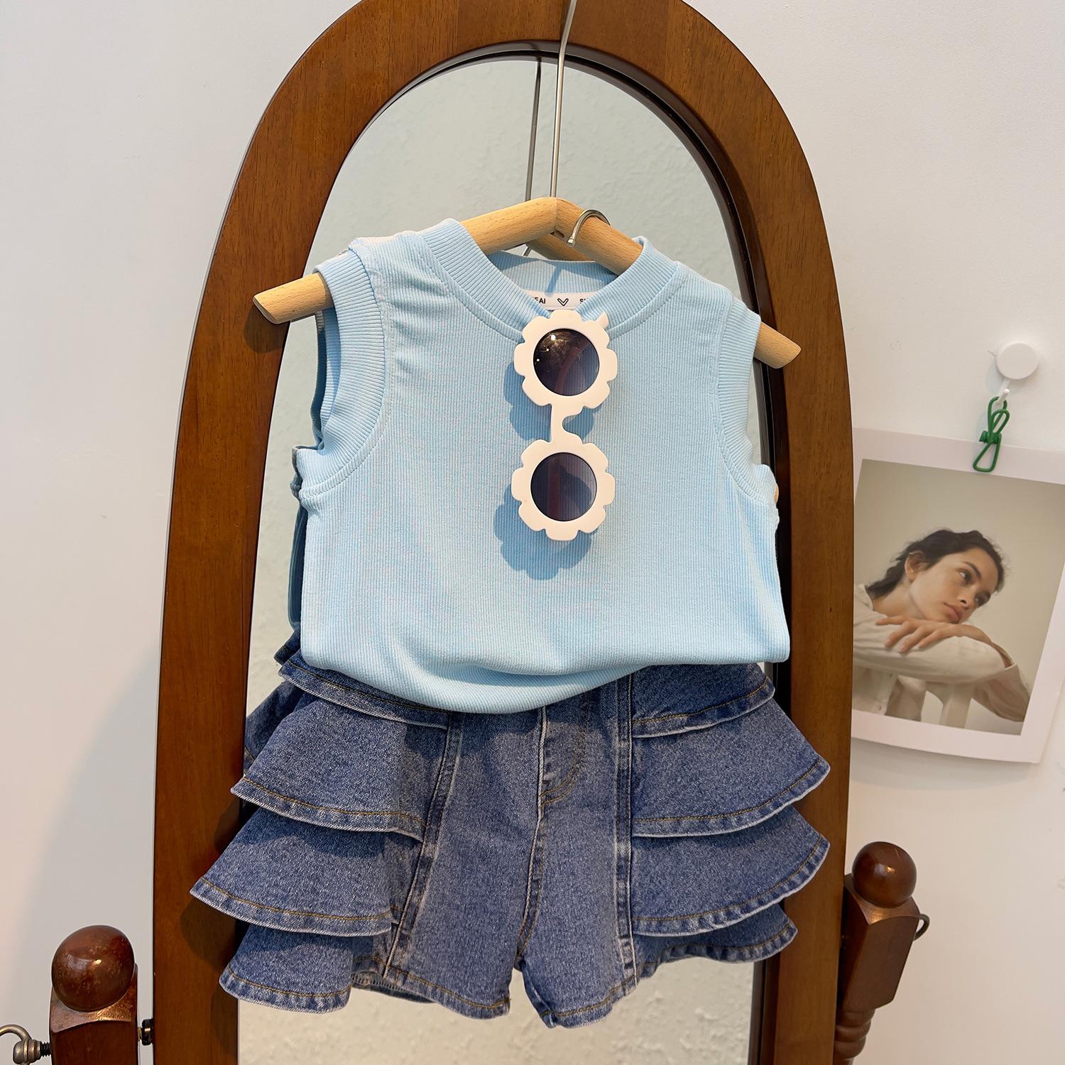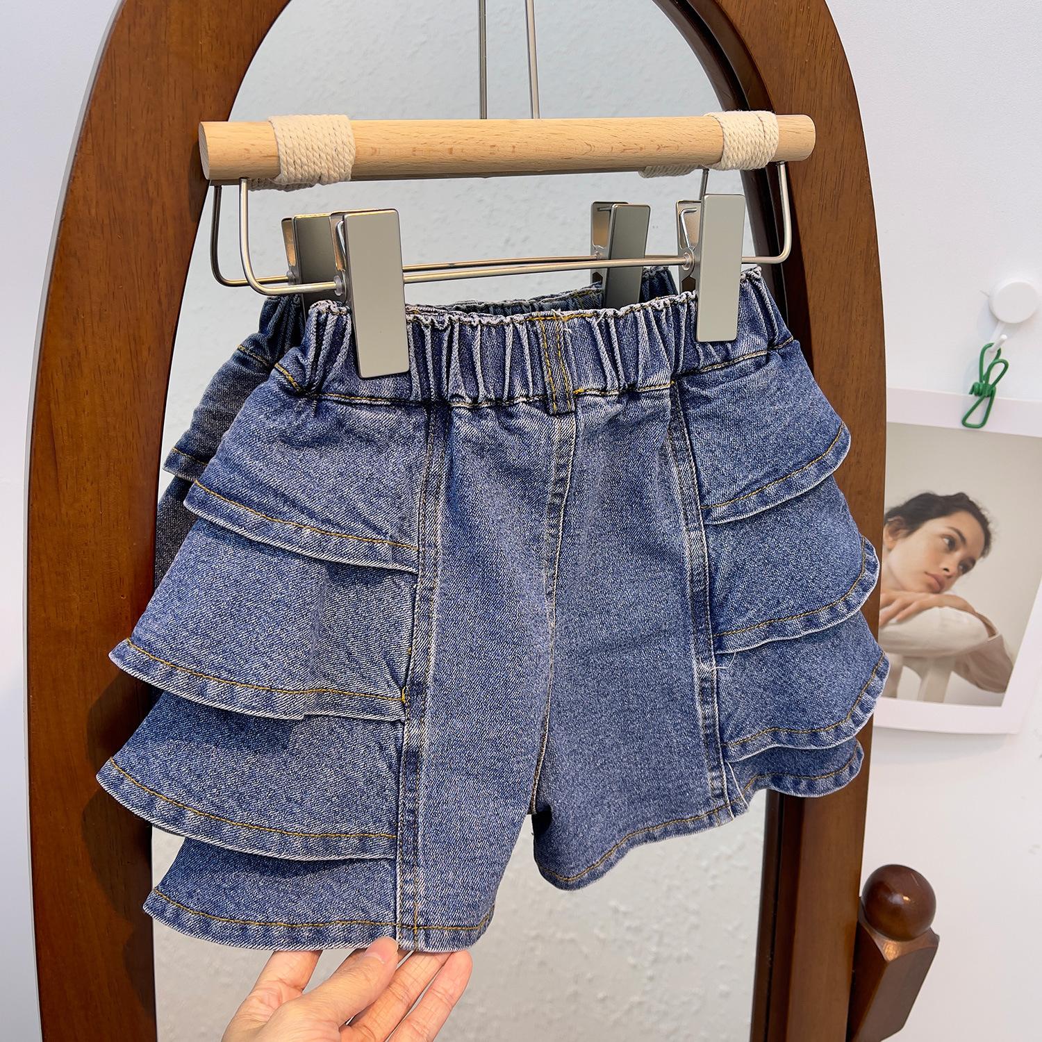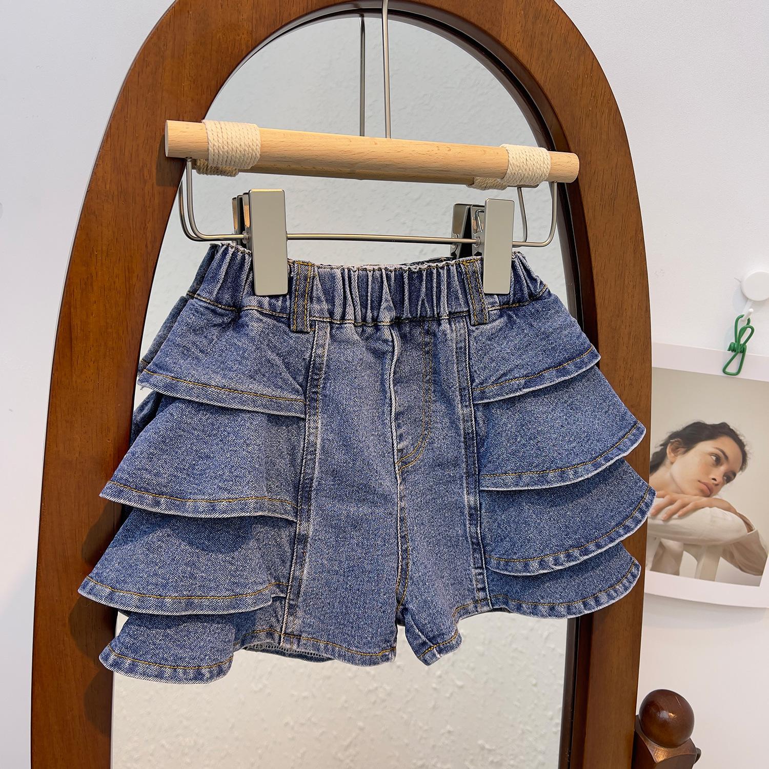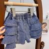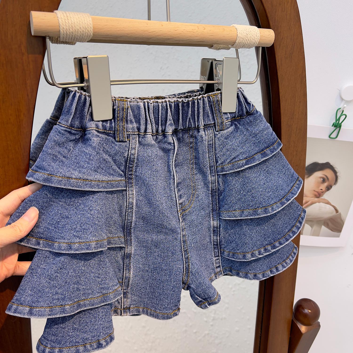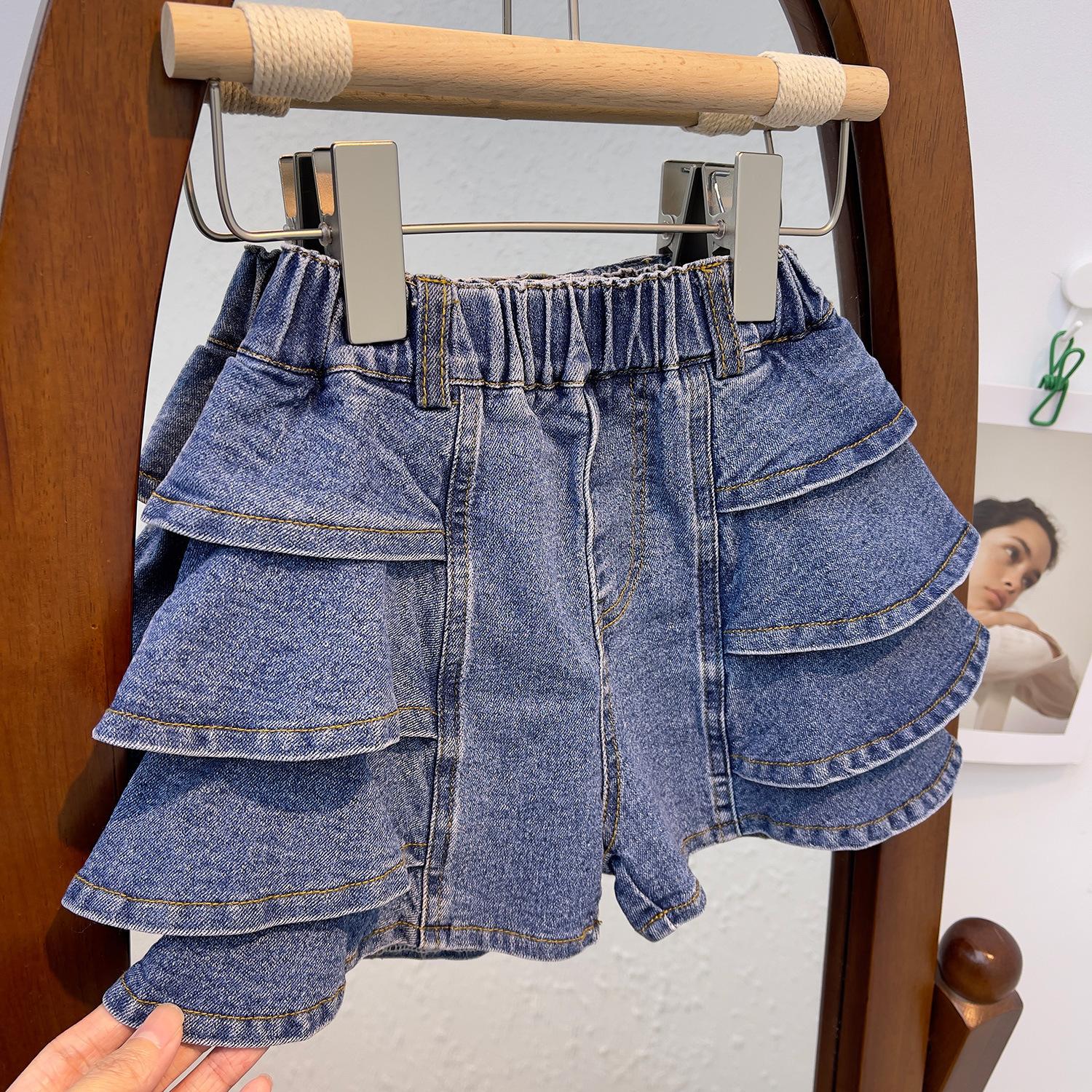 2024 Verano Nueva Moda Combinable Culottes de Mezclilla Shorts de Pastel de Mezclilla para Niñas Modernos 23185