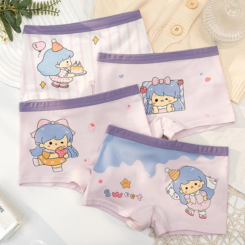 Ropa interior para niñas, calzoncillos tipo bóxer de algodón puro, antibacterianos, con bonitos dibujos animados, para bebés, niñas medianas y grandes