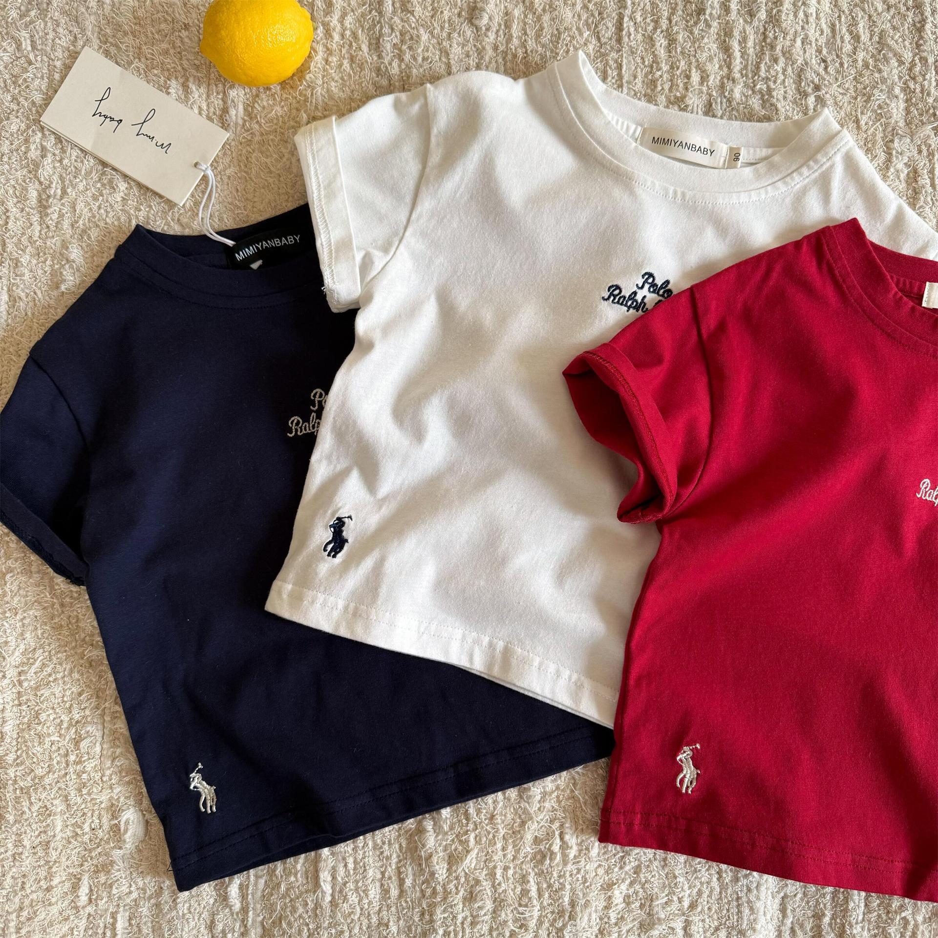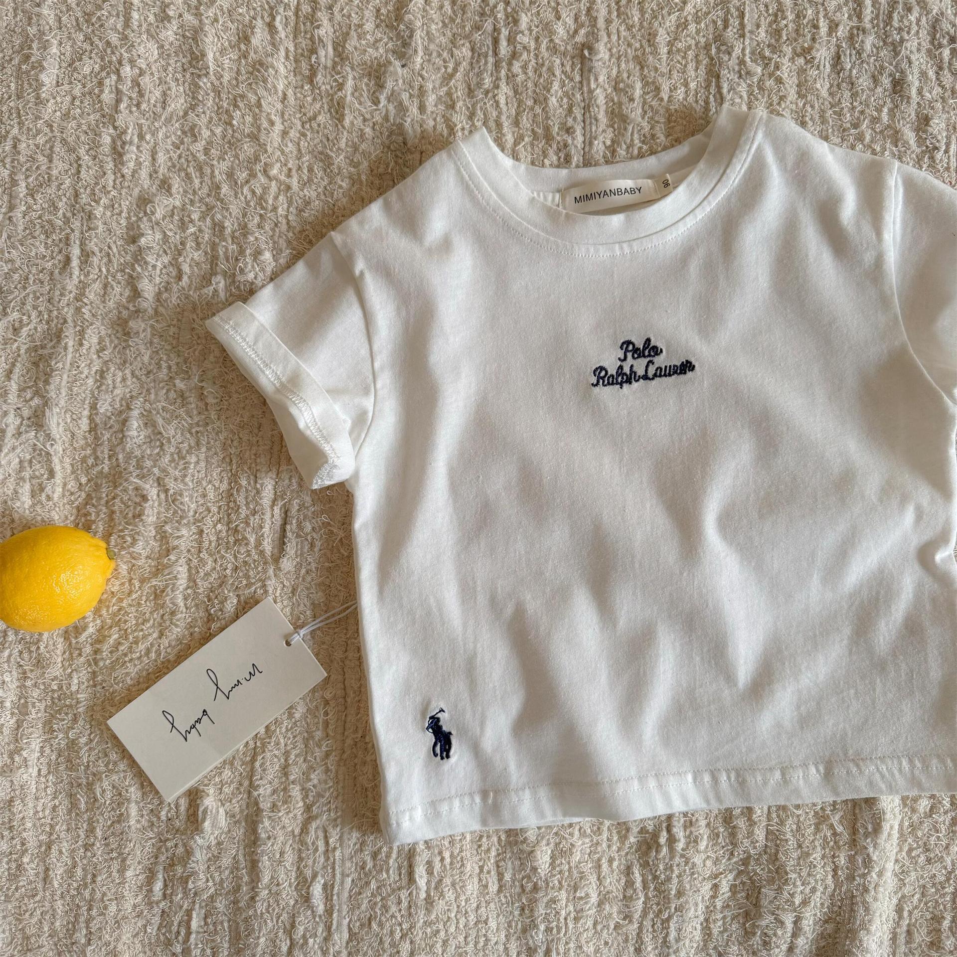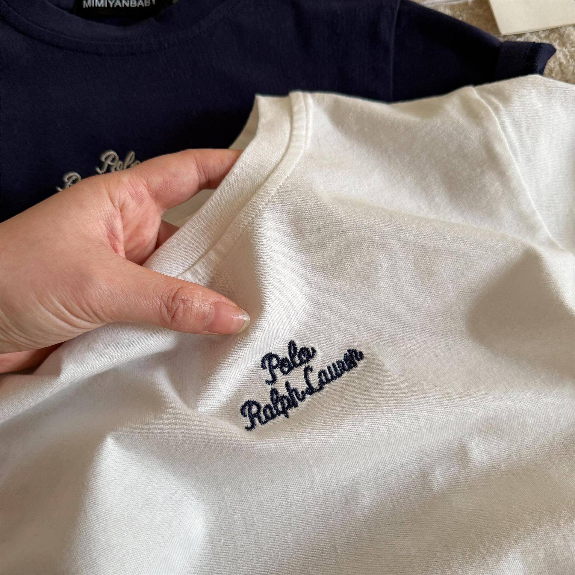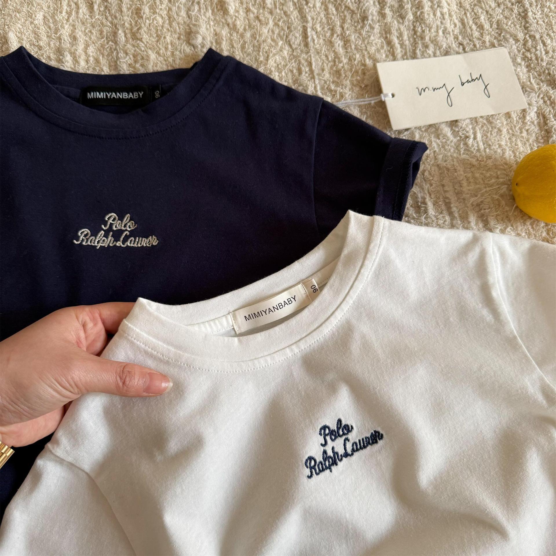 Camiseta de manga corta de verano para niños y niñas estilo japonés de marca de moda con letra bordada, camiseta básica para bebé, camiseta infantil de estilo occidental T