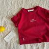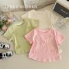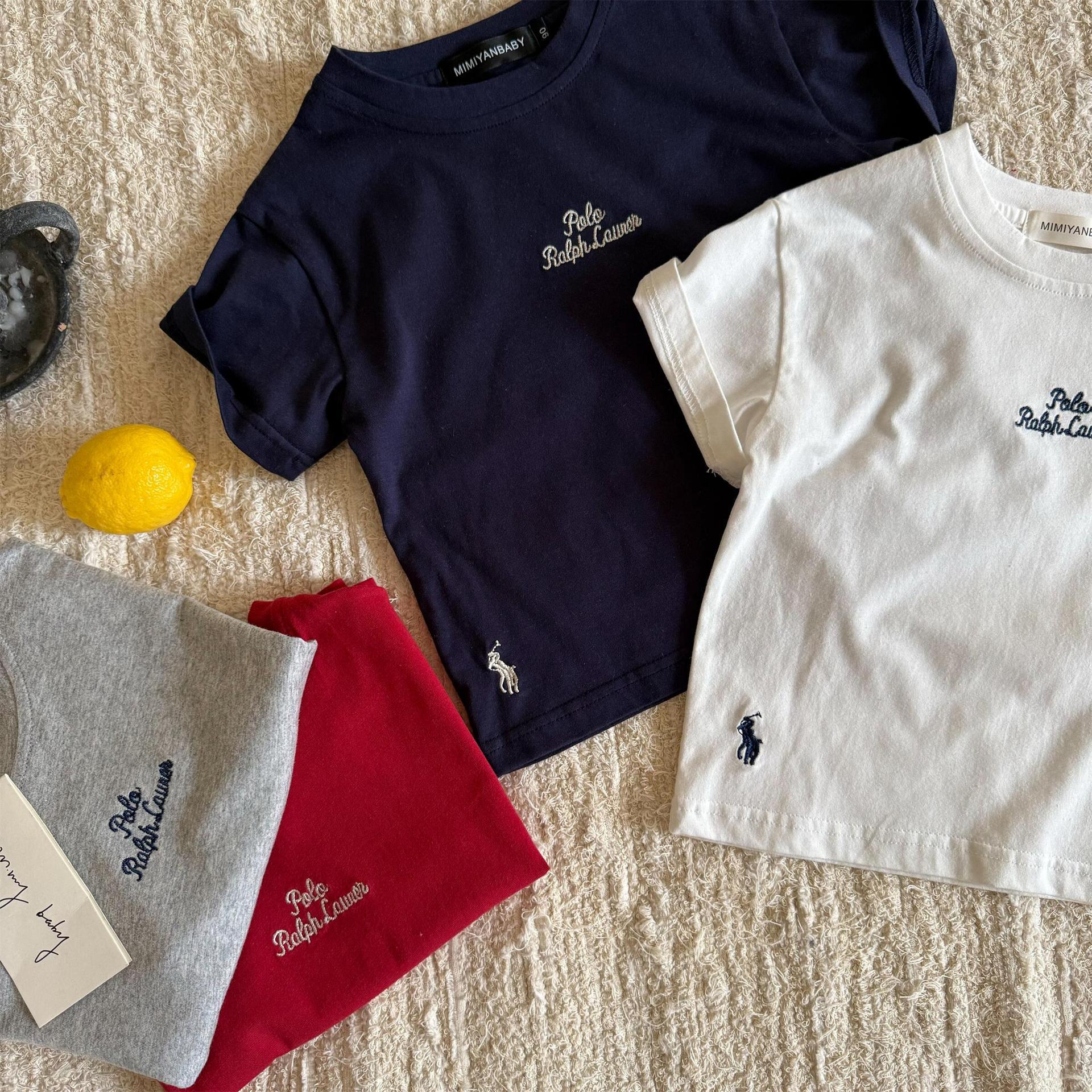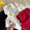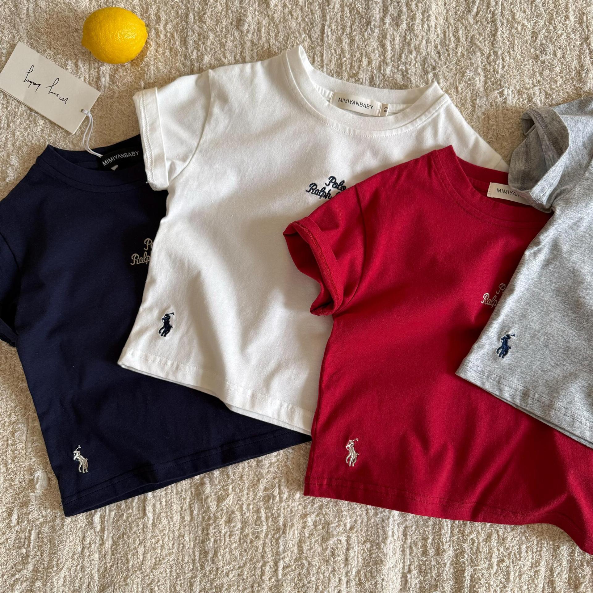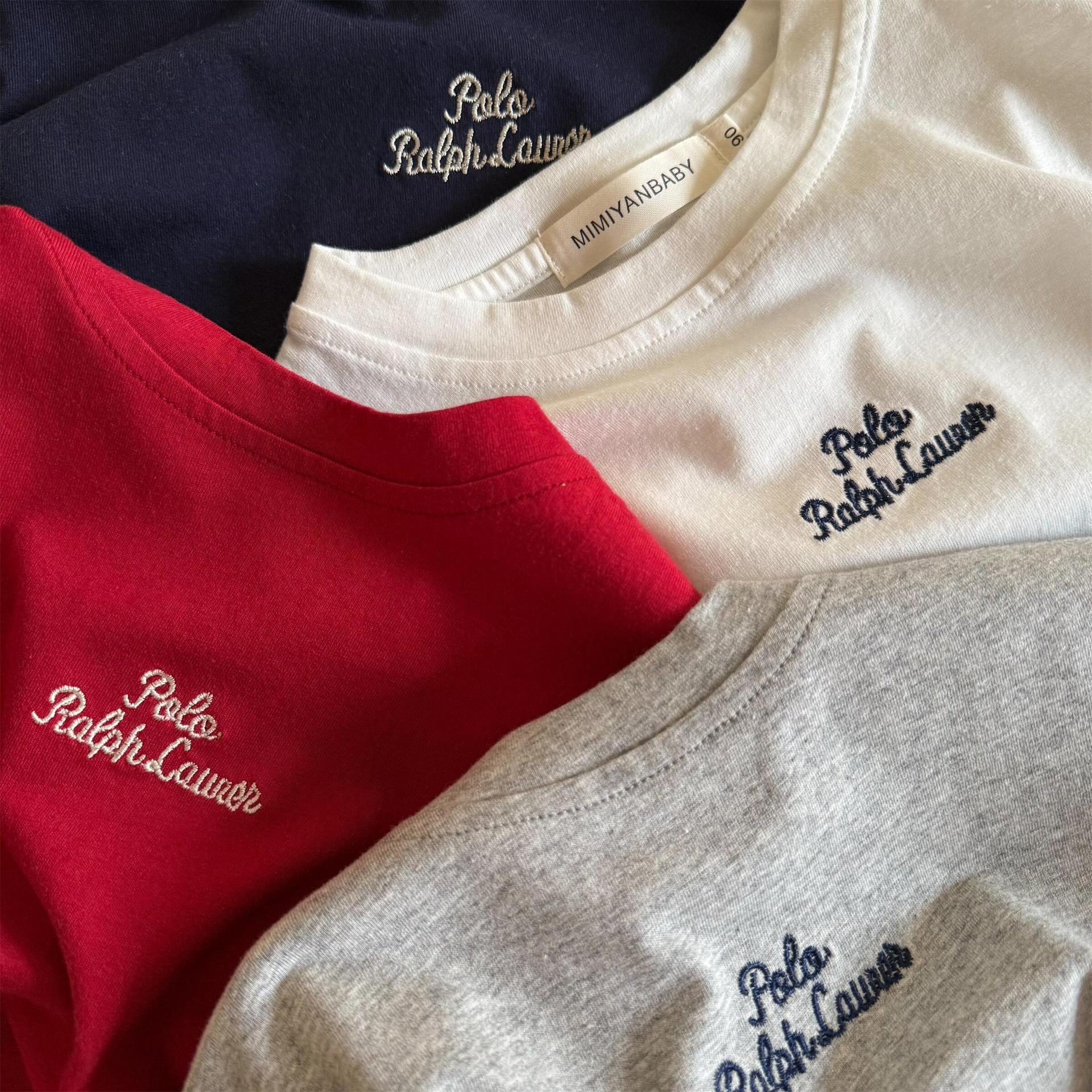 Camiseta de manga corta de verano para niños y niñas estilo japonés de marca de moda con letra bordada, camiseta básica para bebé, camiseta infantil de estilo occidental T