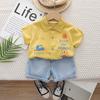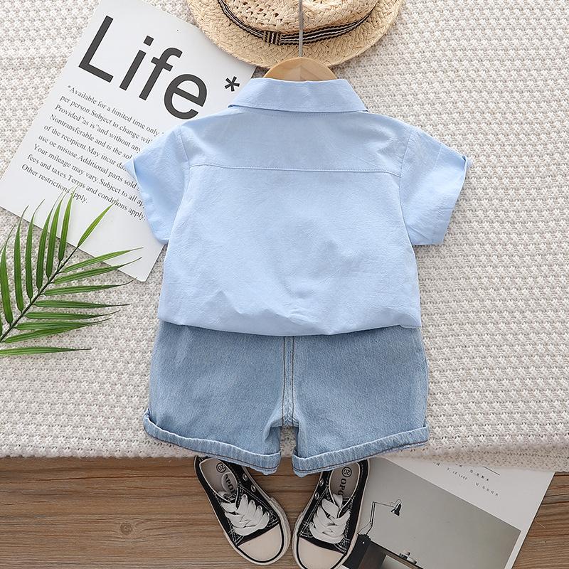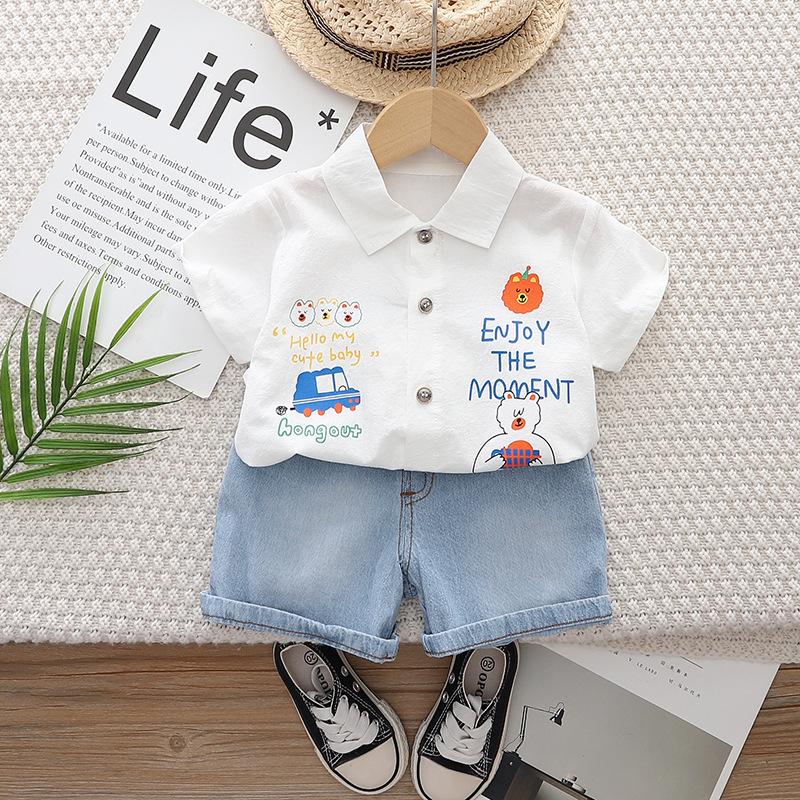 Traje de manga corta con camisa de dibujos animados para niños 2025 Verano Nuevo Pantalón corto vaquero casual para niños Conjunto de dos piezas para el cabello