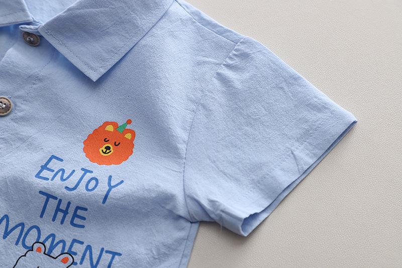 Short-sleeved bear head letter shirt suit blue, Short sleeve bear head letter shirt suit white, Short-sleeved ...