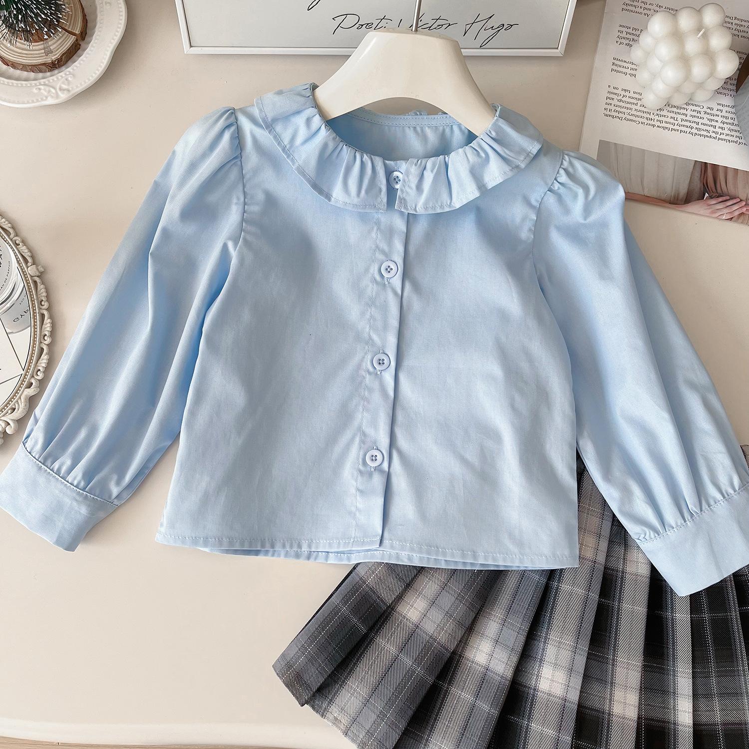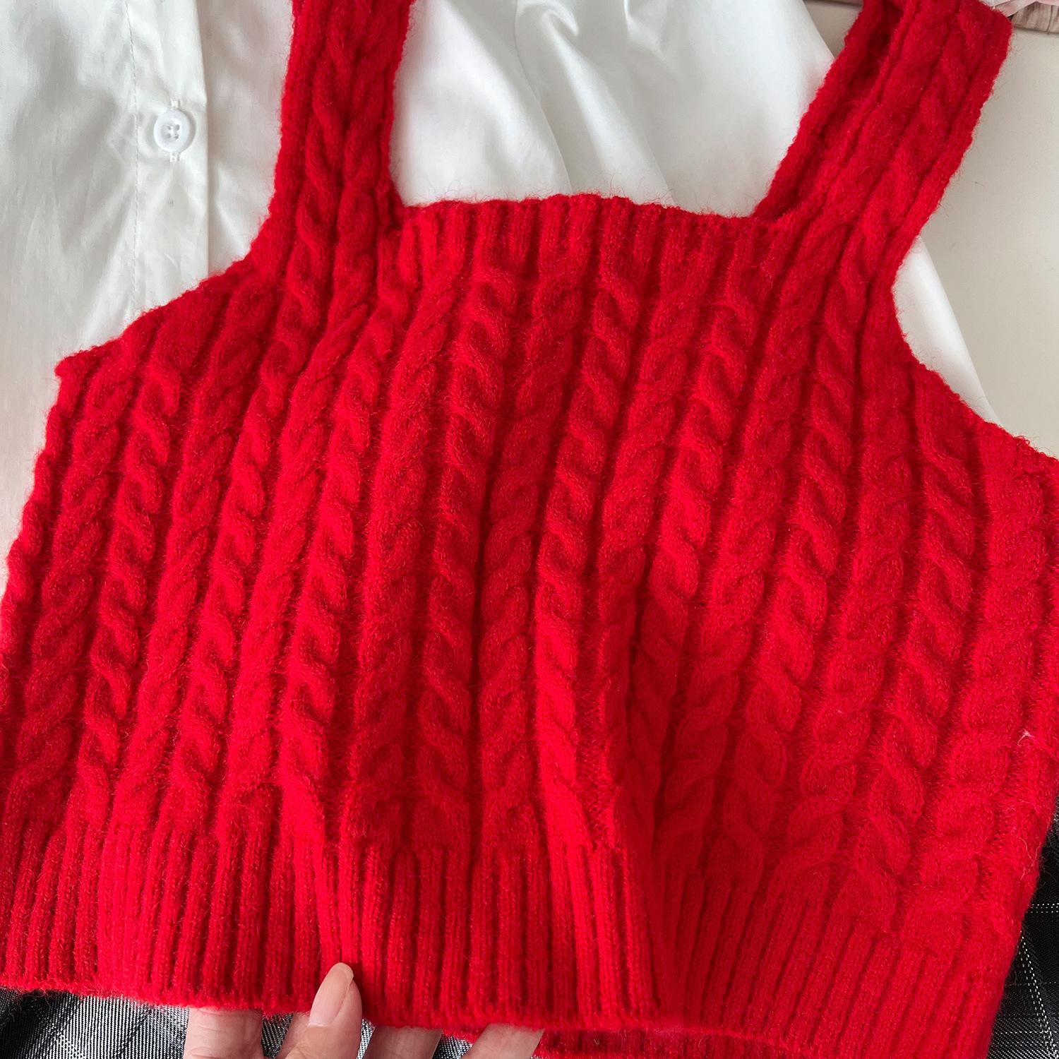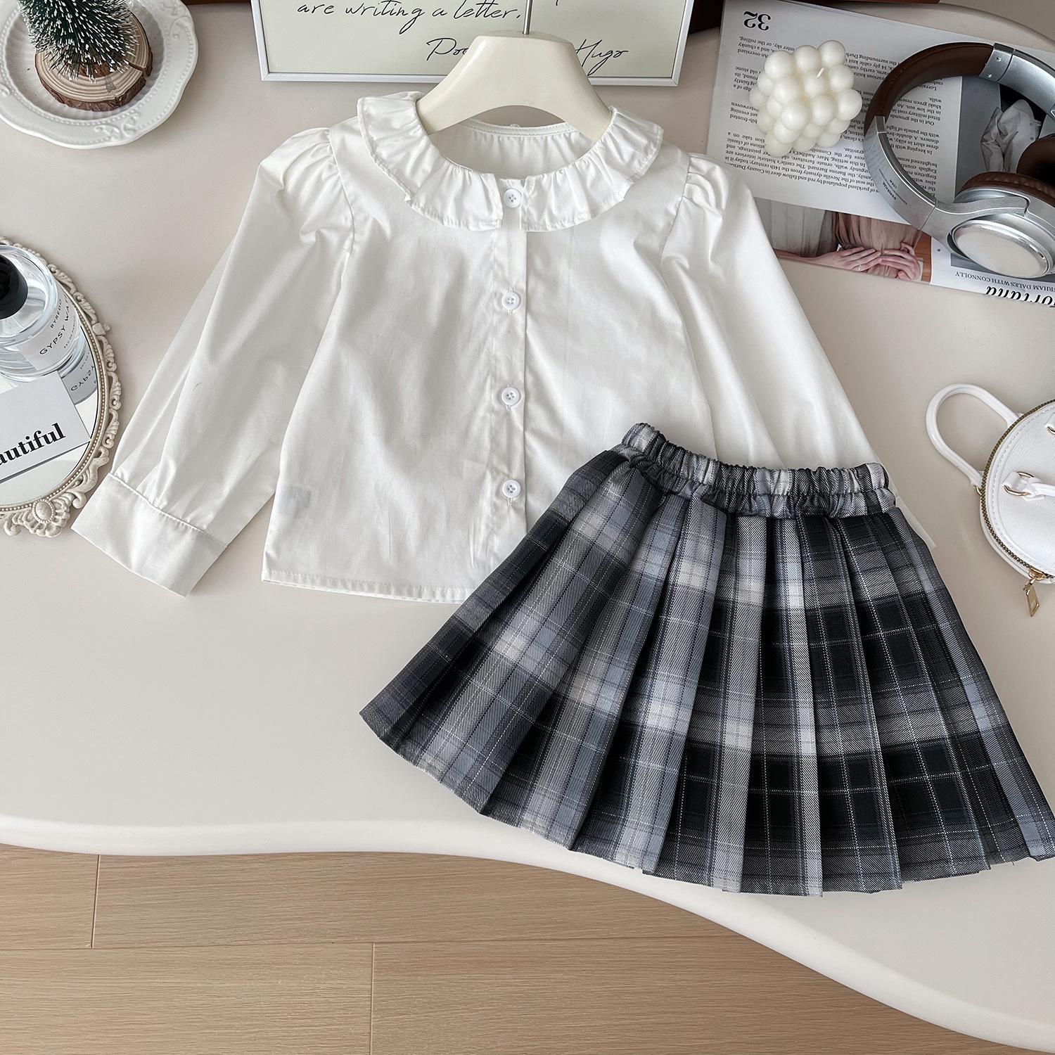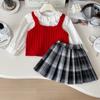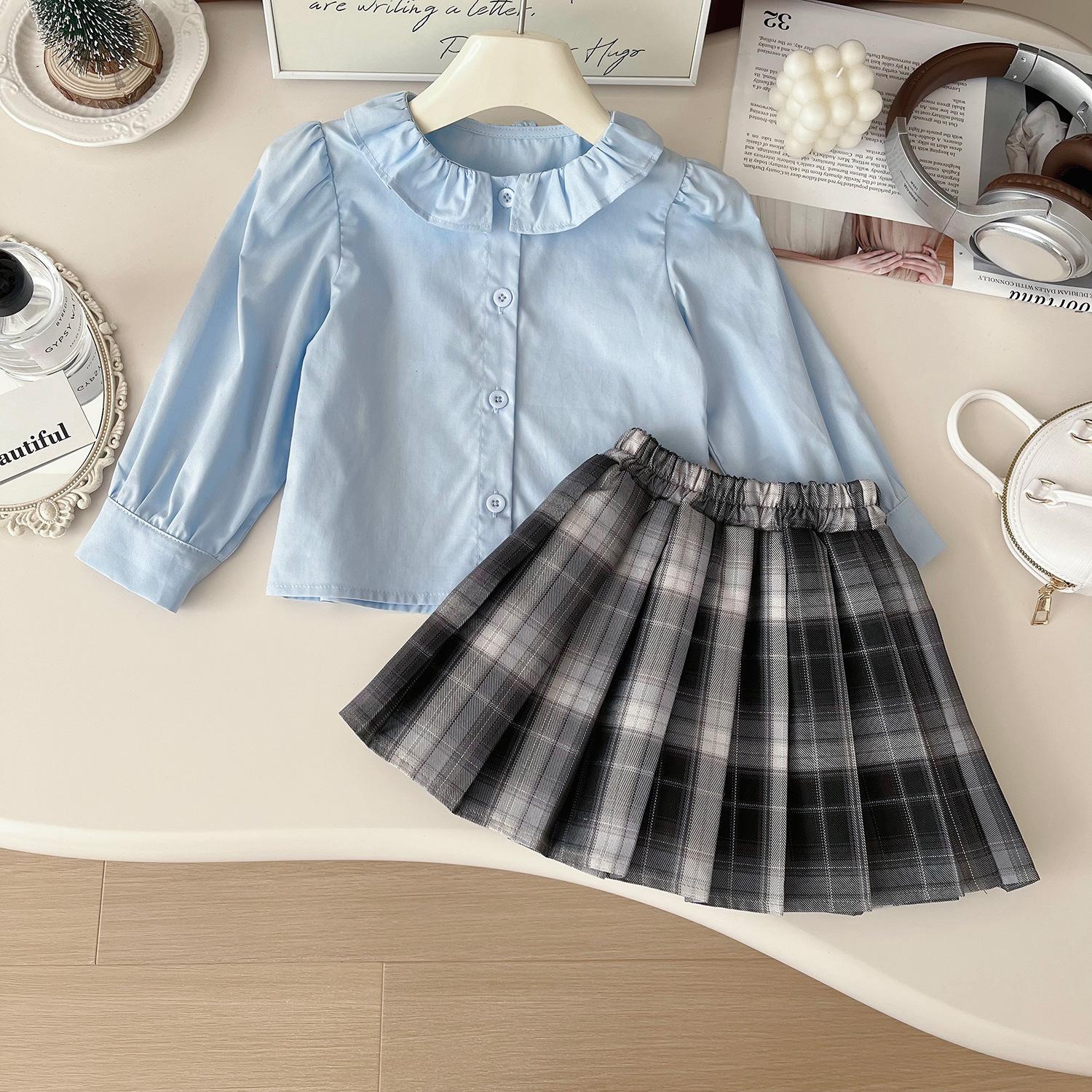 Chaleco de punto de tres piezas para niña, camiseta de muñeca con cuello redondo, falda plisada, otoño 67506