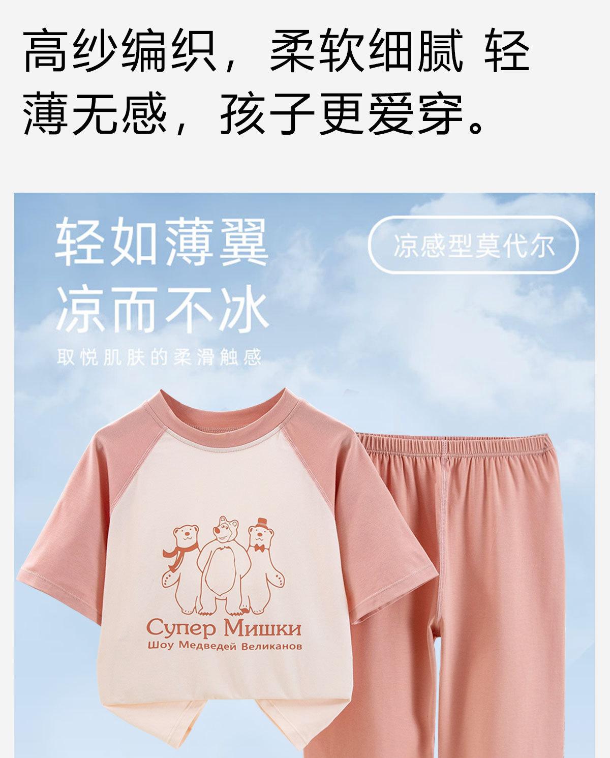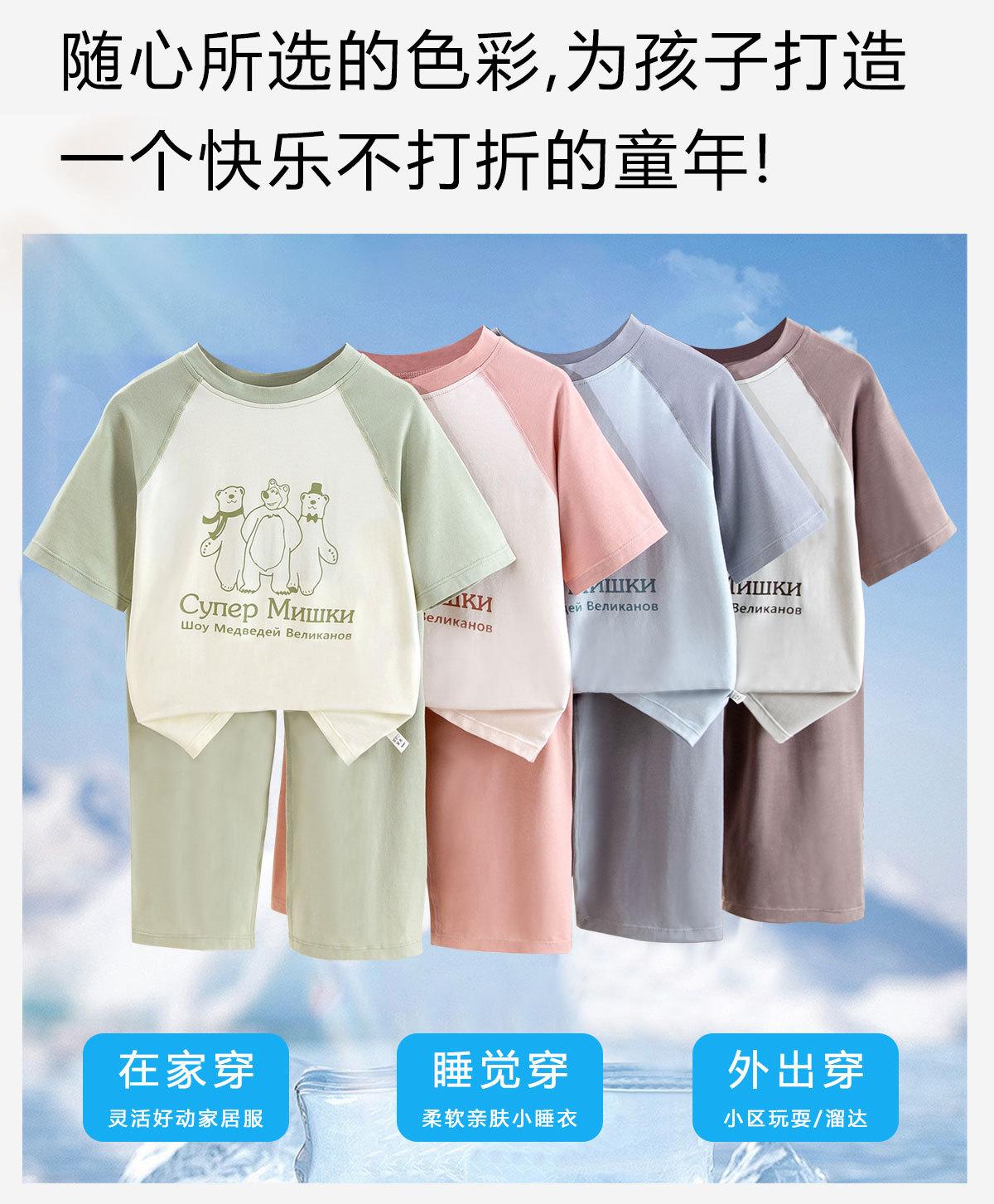 Pantalones de verano finos de modal de manga corta para niños, ropa de casa, pijamas para niños y niñas, traje de clase A