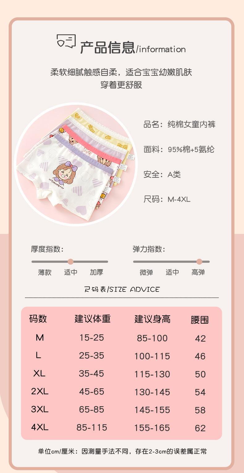 [Venta al por mayor personalizada] ropa interior para niños bóxers para niñas algodón algodón clase a calzoncillos bóxer de entrepierna antibacteriana para niñas