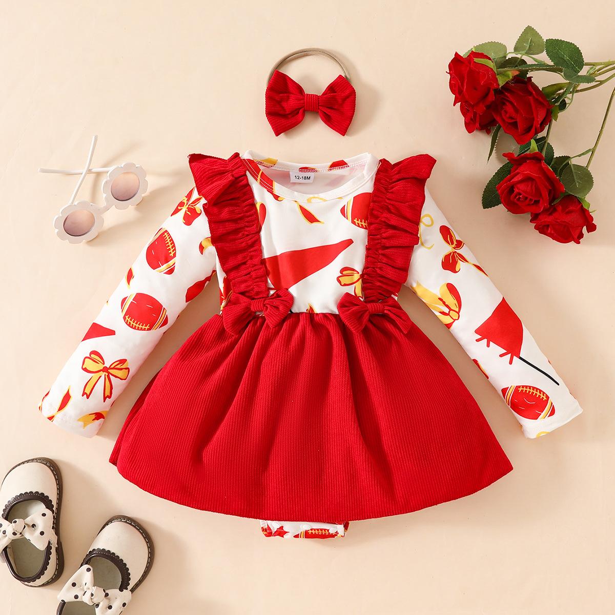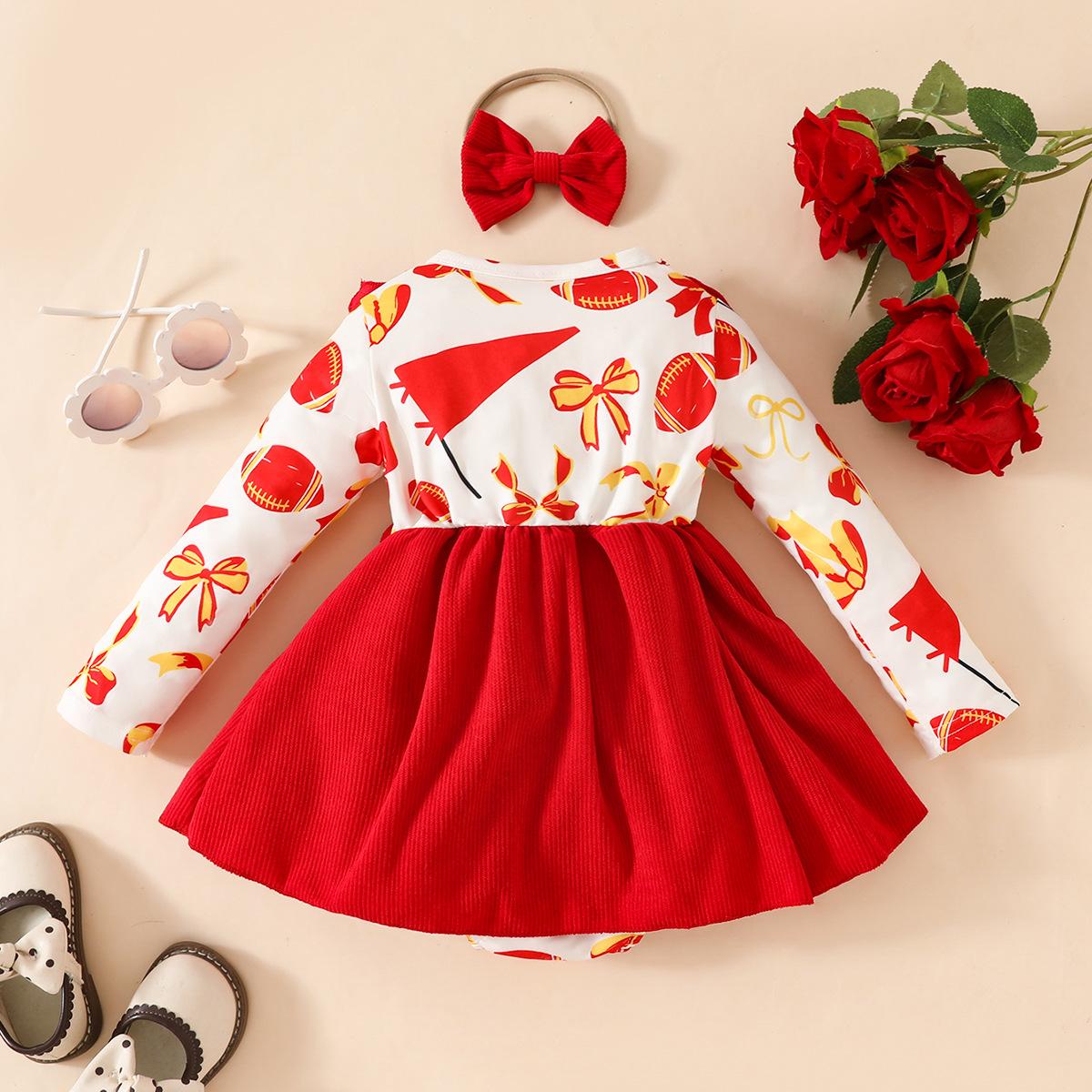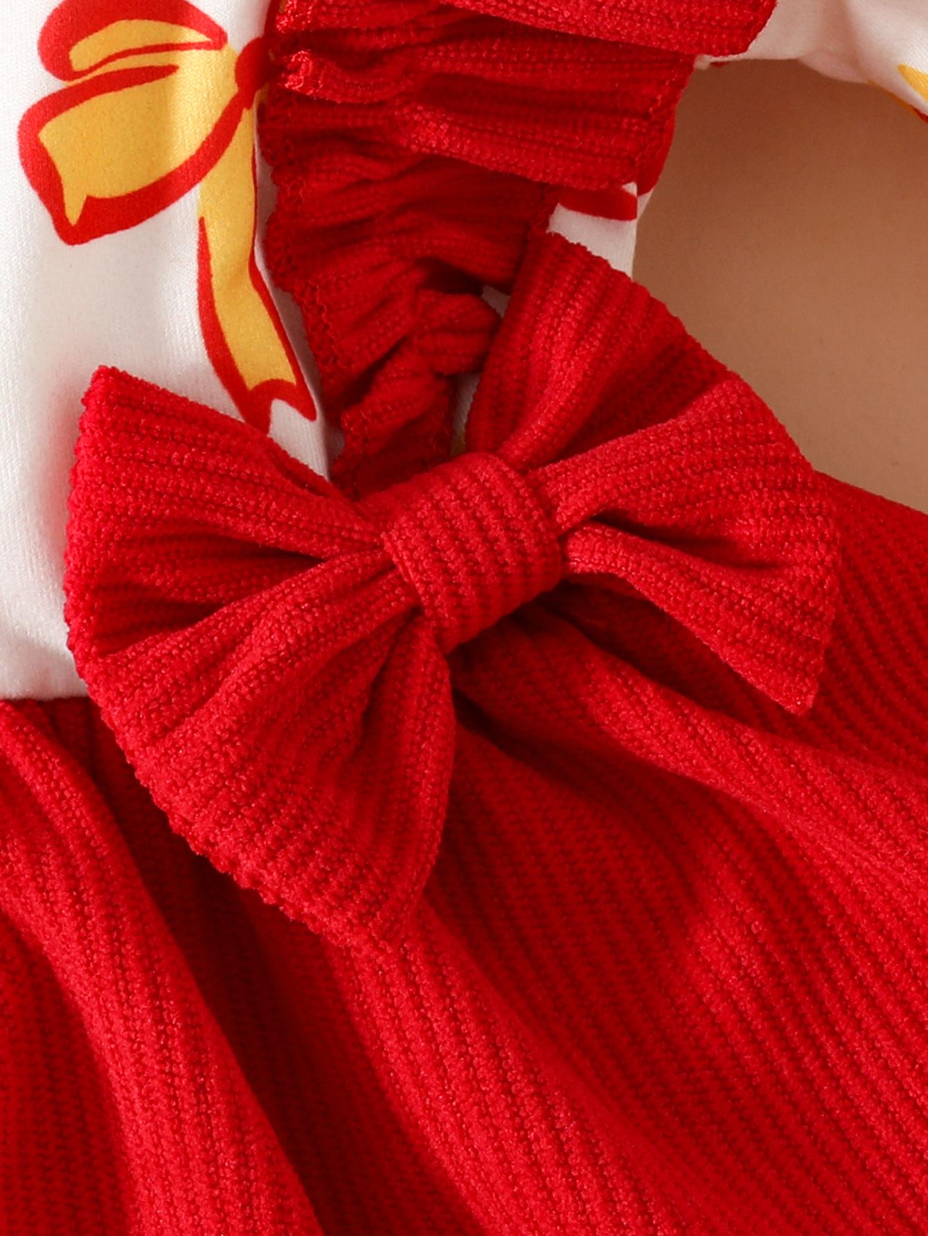 Vestido bonito de manga larga con lazo para niña, primavera y verano, con estampado festivo a la moda, para bebé