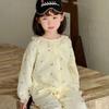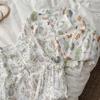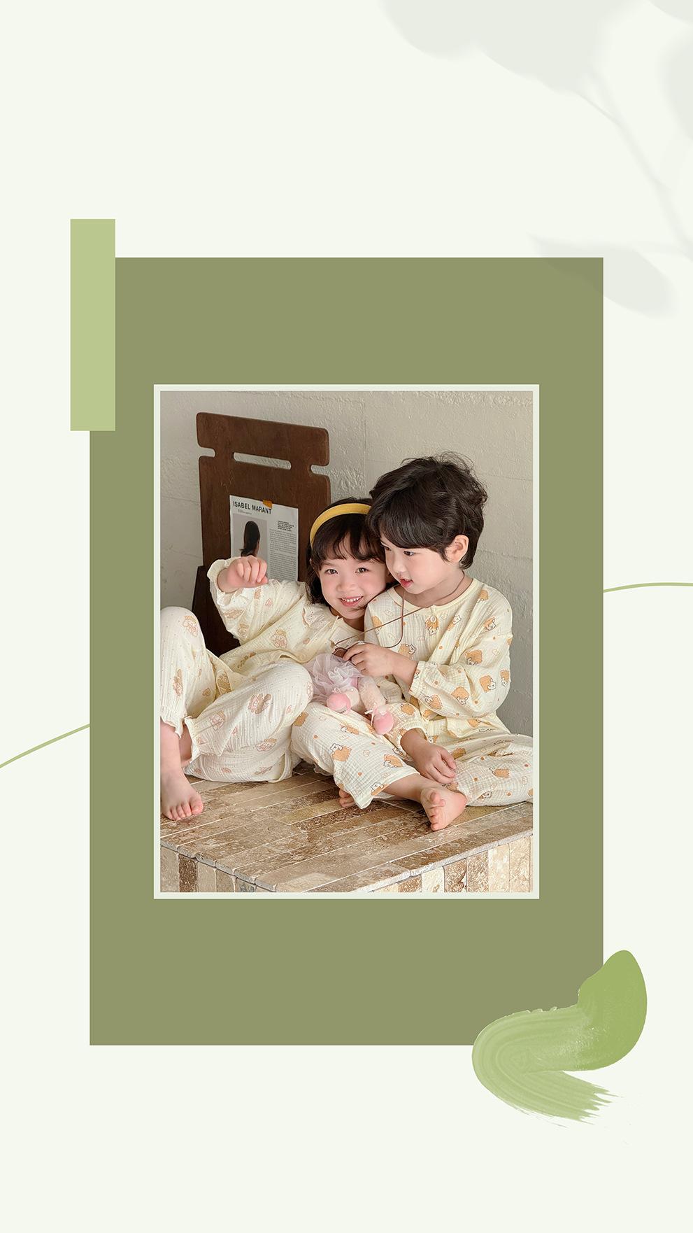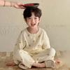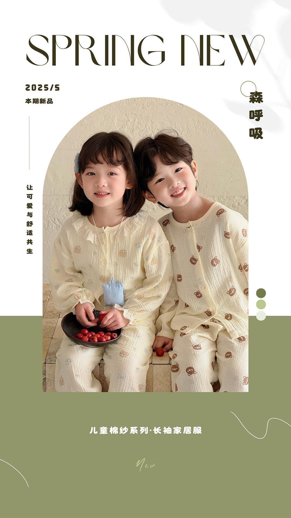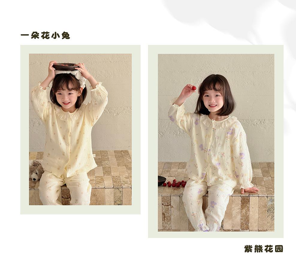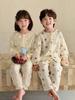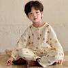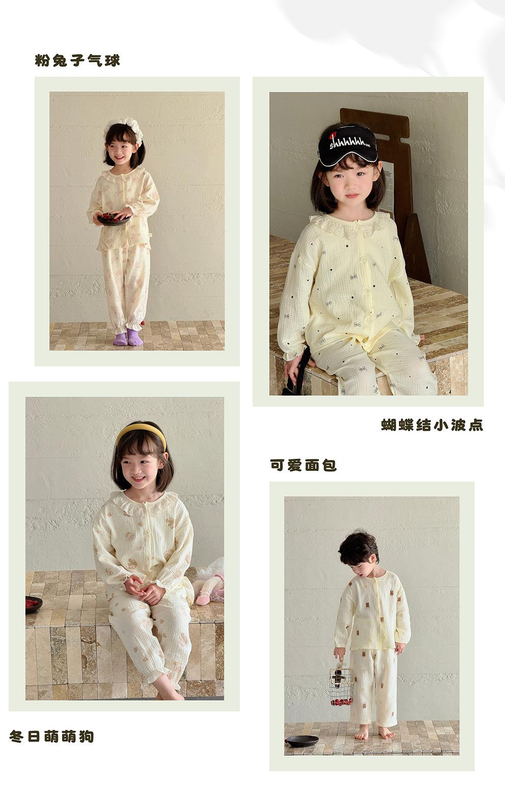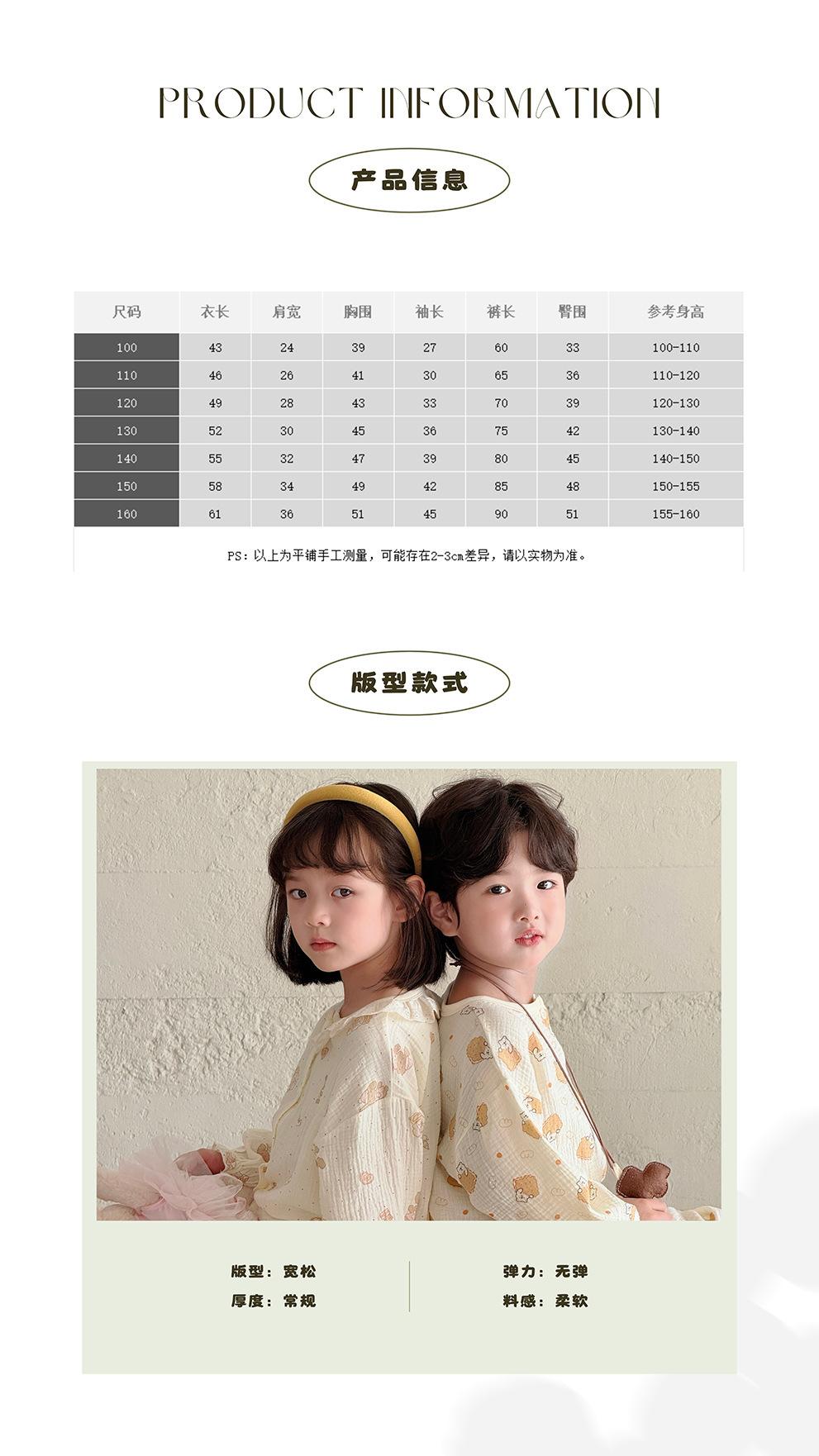 Pijamas de primavera y verano para niños, ropa de casa de gasa doble con dibujos animados de clase A, pijamas de hilo de algodón para niños y niñas.