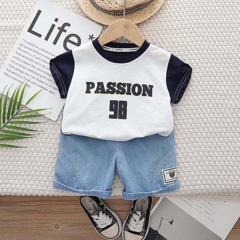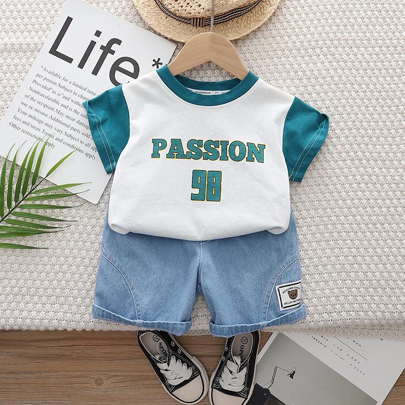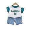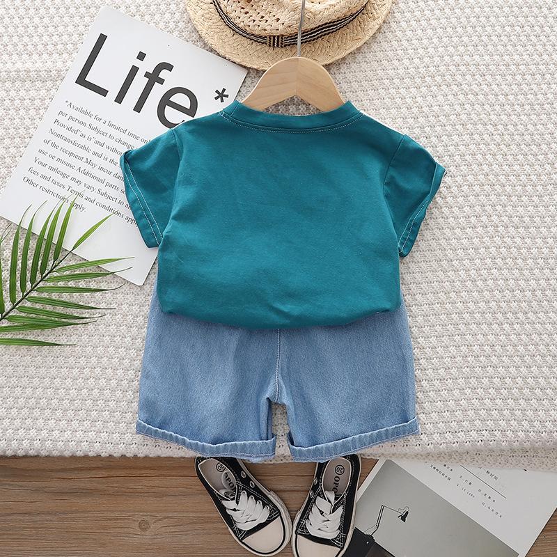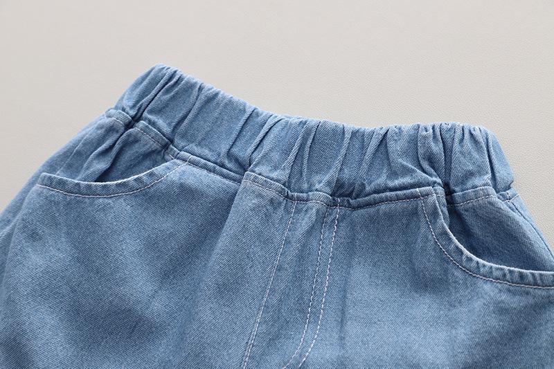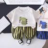 Traje de verano fino de manga corta para niños 2025, nuevo estilo, conjunto de dos piezas de manga corta de verano con dibujos animados para bebés y niños a la moda.