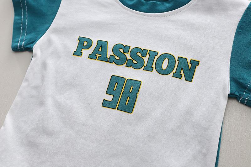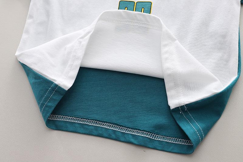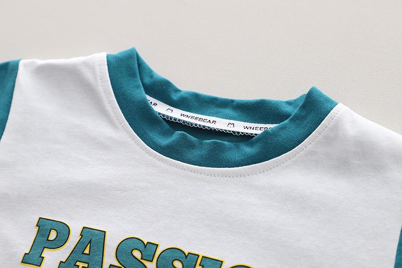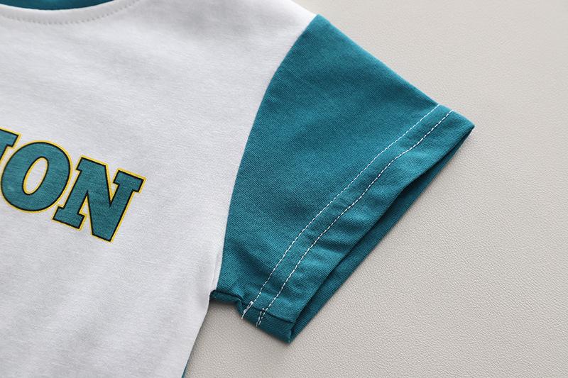 Short-sleeved english word color matching two-piece set blue, Short-sleeved english word color matching two-piece set black