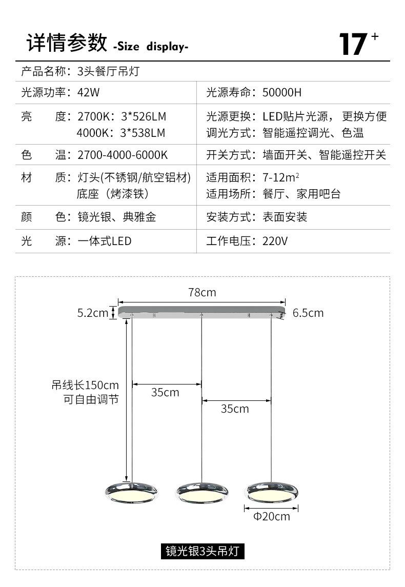 Elegant gold three head diameter 20cm intelligent stepless dimming