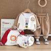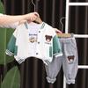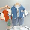 Traje de primavera para niños 2025, nuevo traje de béisbol de dibujos animados para niños, conjunto de tres piezas, ropa de primavera y otoño para bebés, de moda.