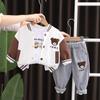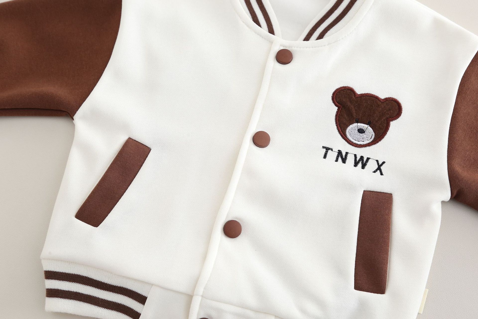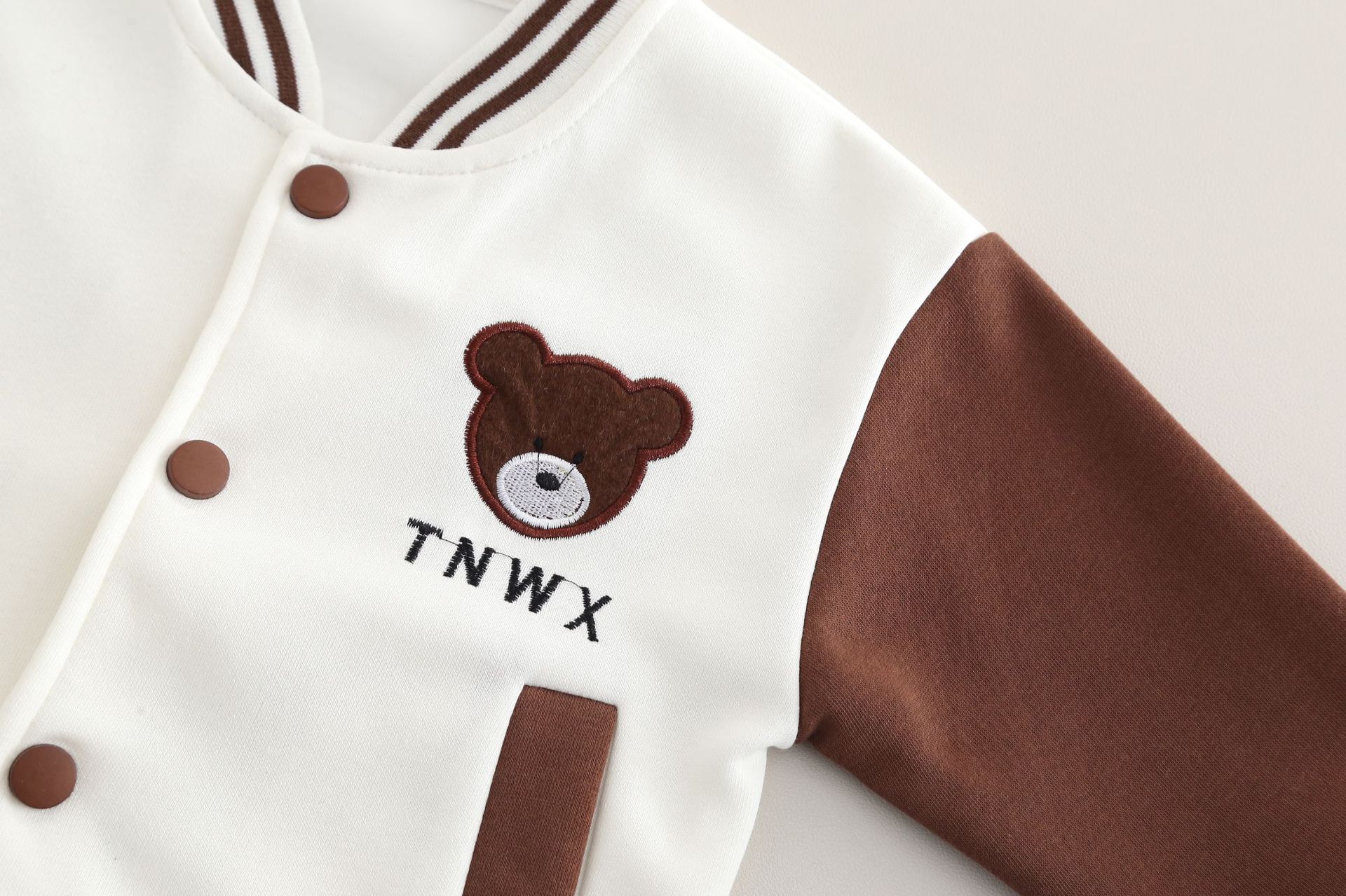 Brown 25c coffee bear head baseball uniform three-piece set, Green 25c coffee bear head baseball uniform three-piece set