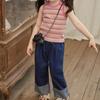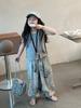 Camisola de estilo coreano para niñas, ropa infantil, camiseta exterior, chaleco de moda, top básico elegante de verano 2025 para niñas.