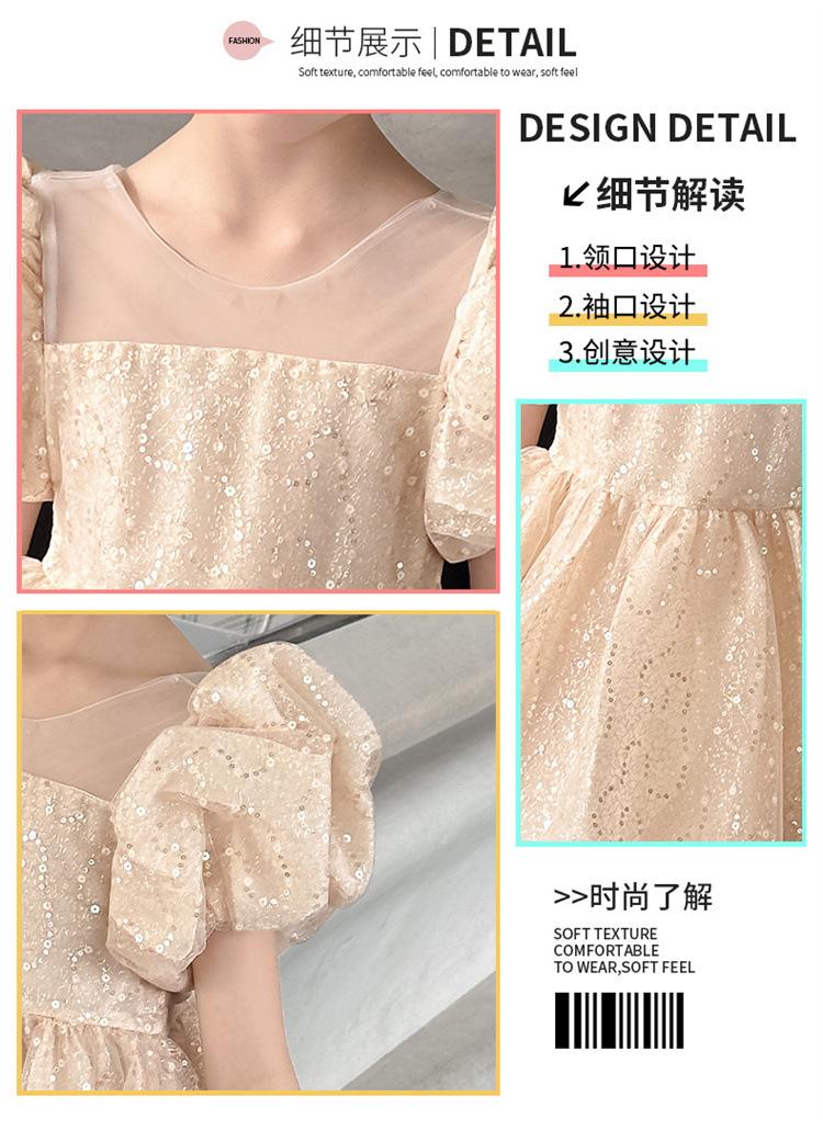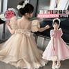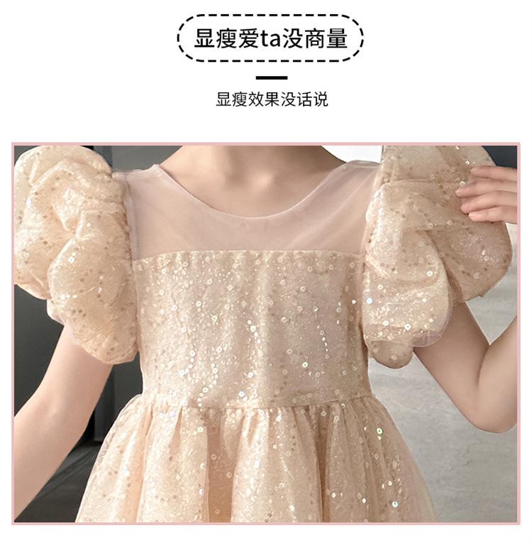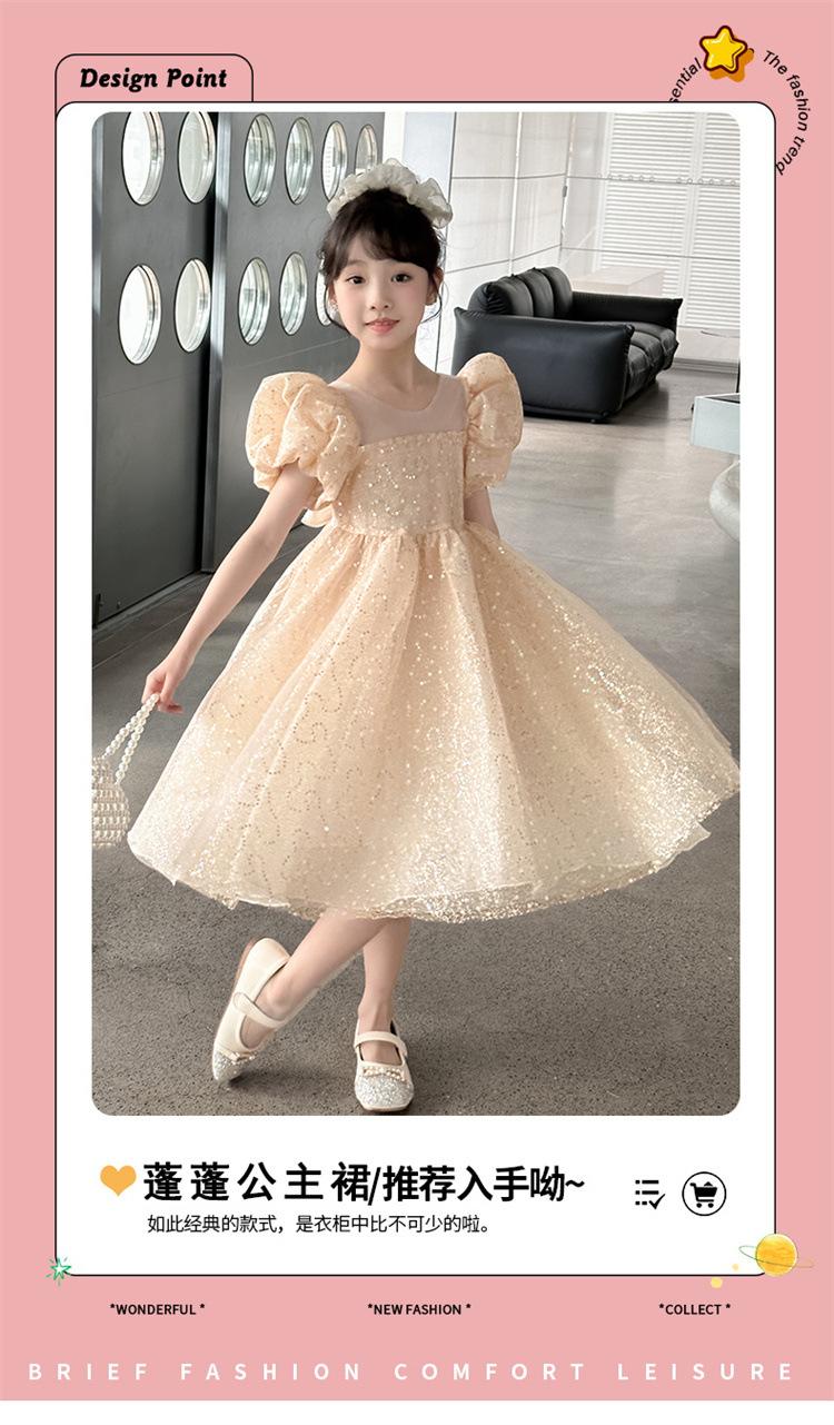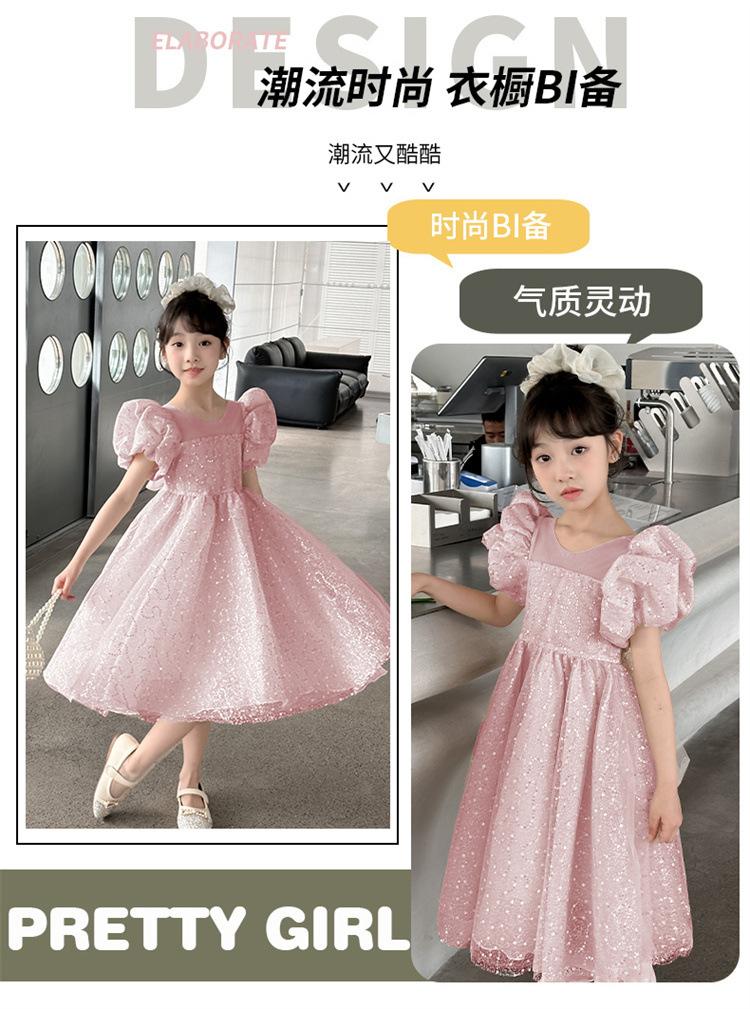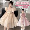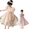 Vestido de Princesa para Niñas, Vestido de Malla de Manga Abullonada para Niños de Moda, Vestido de Verano 2024 Nuevo Vestido Esponjoso para Niña