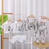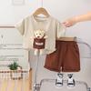 Ropa de verano para niños, traje de manga corta, novedad de 2025, ropa informal de verano a la moda con dibujos animados para bebés.