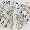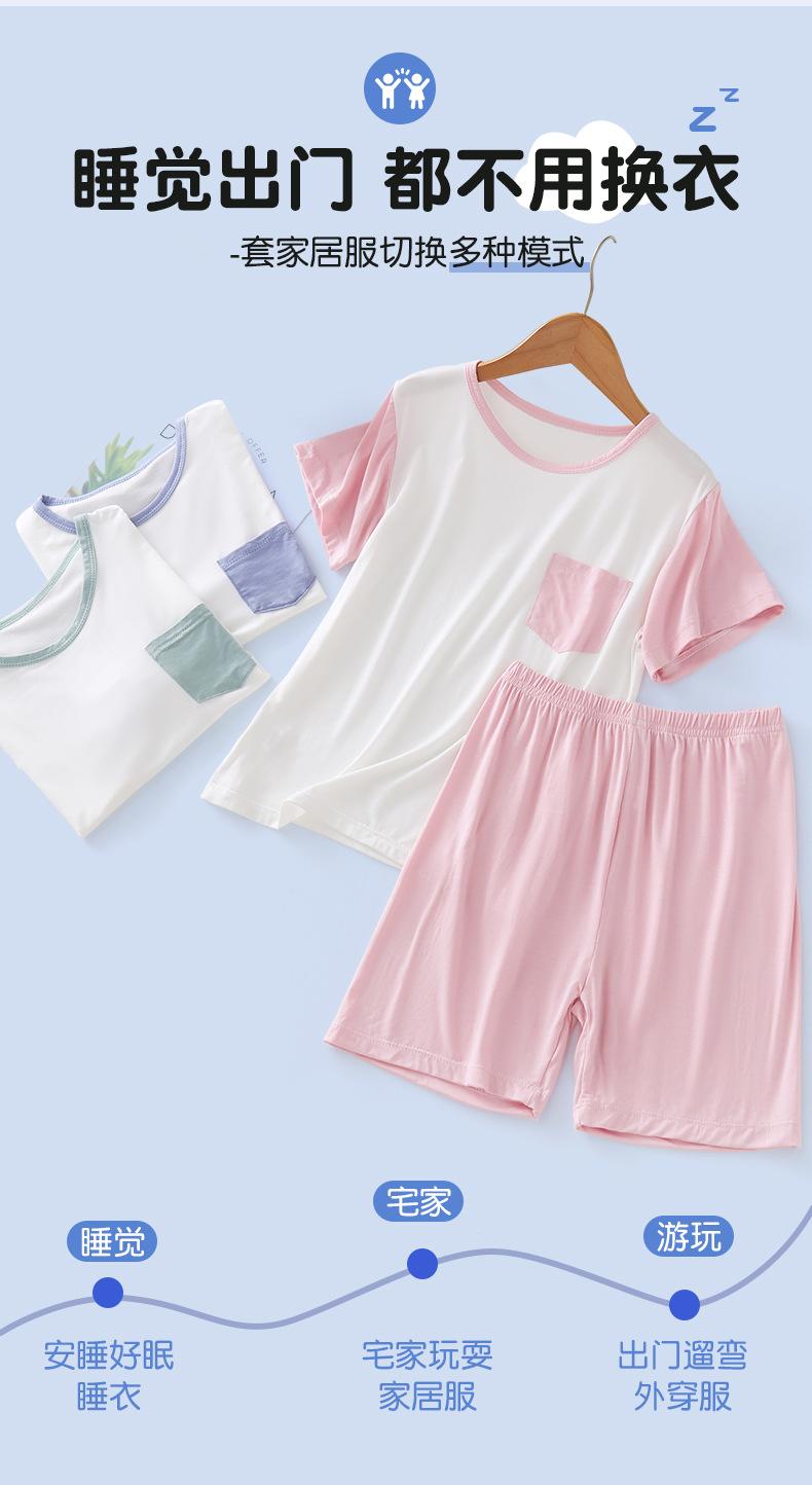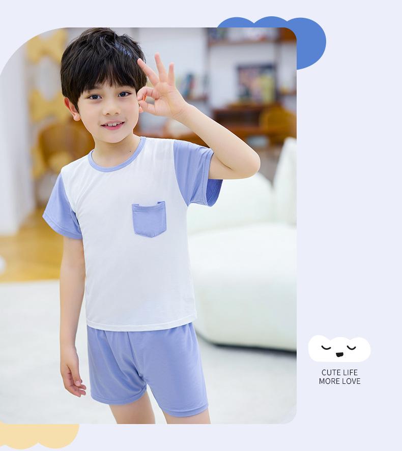 Conjunto de Ropa para el Hogar para Niños Pijama Modal para Niños y Niñas Manga Larga y Corta Estilo Delgado Bebé Aire Acondicionado Antibacteriano Dibujos Animados