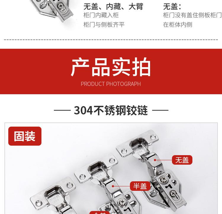 Bisagra de acero inoxidable 304 con amortiguador hidráulico para puerta, bisagra de puerta de armario con tubo de avión, bisagra de curva media