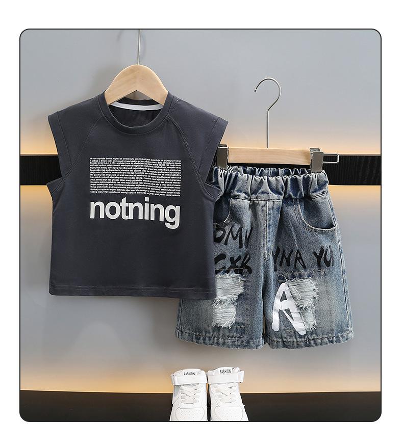 Ropa para niños Ropa de verano para niños traje 2025 Nuevo estilo Niños Bebé Chaleco sin mangas Guapo Ropa de verano para niños