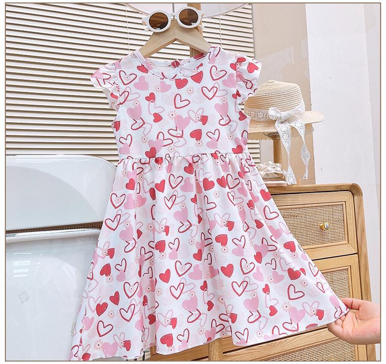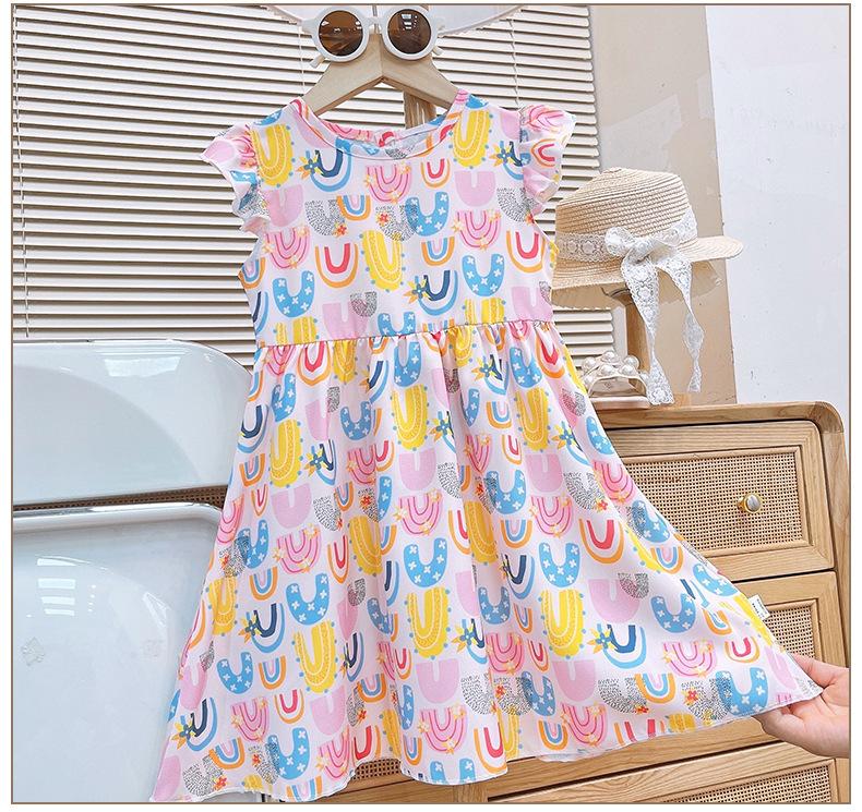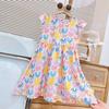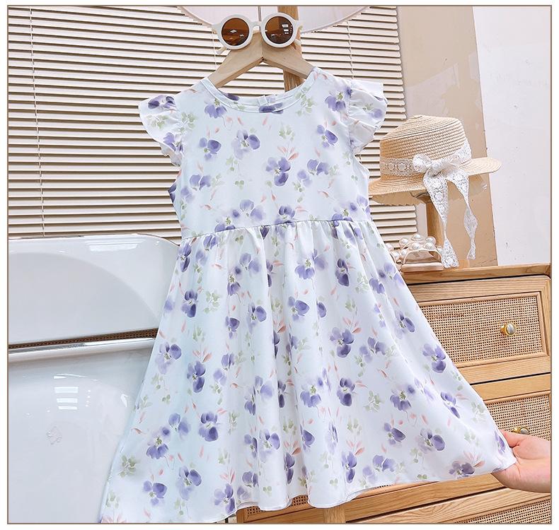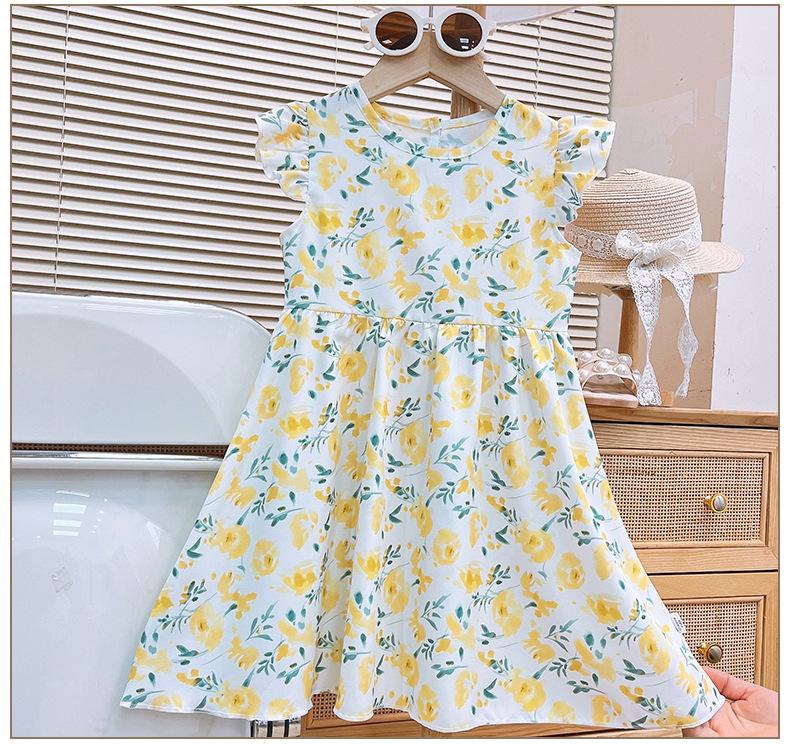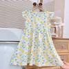 Vestido de verano para niñas, nuevo vestido de princesa con mangas voladoras para bebés, falda floral, falda para niños, ropa para niños al por mayor