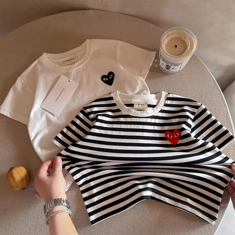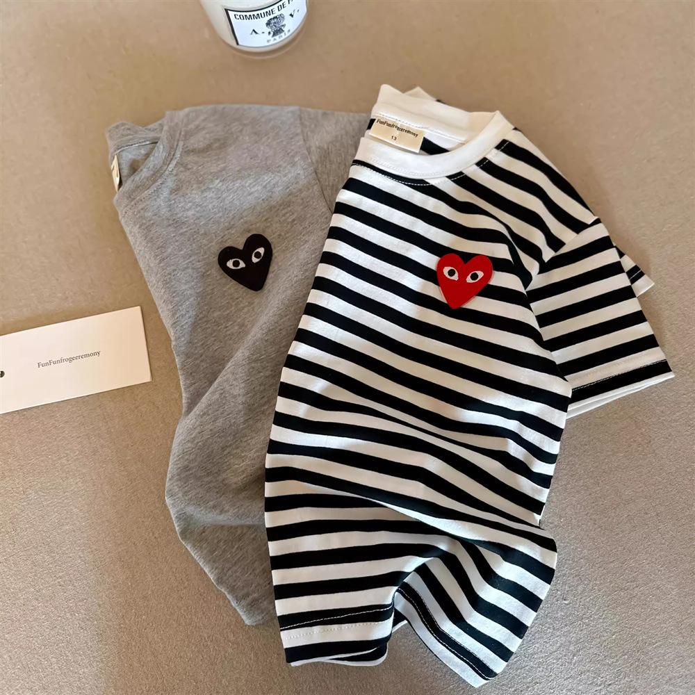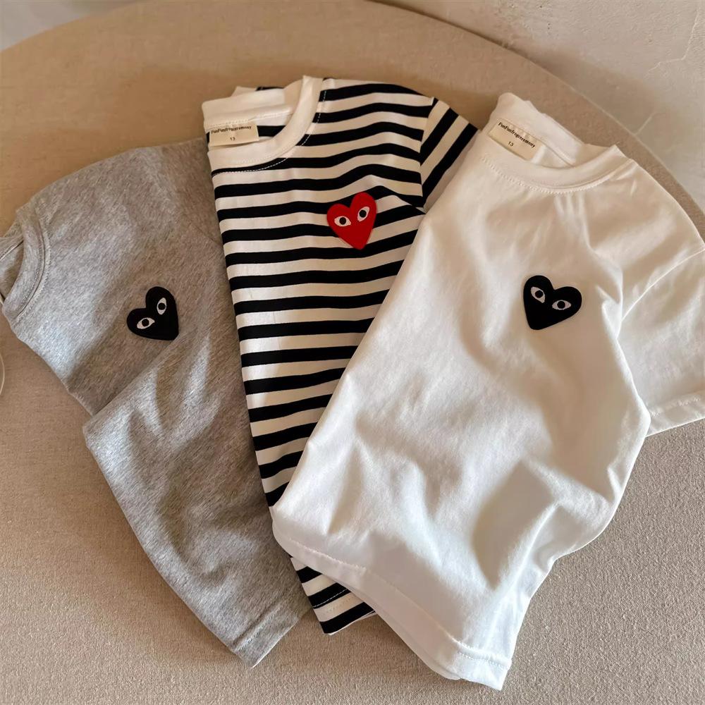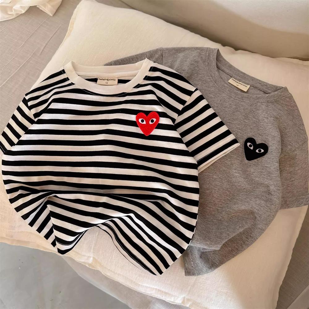 Clase para Niños una Camiseta 2025 Verano Niños y Niñas Estilo Japonés Marca Trbottomy Amor Bottoming Bebé Rayas Tops para Niños al por Mayor