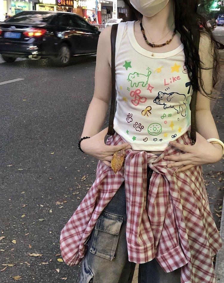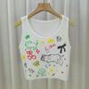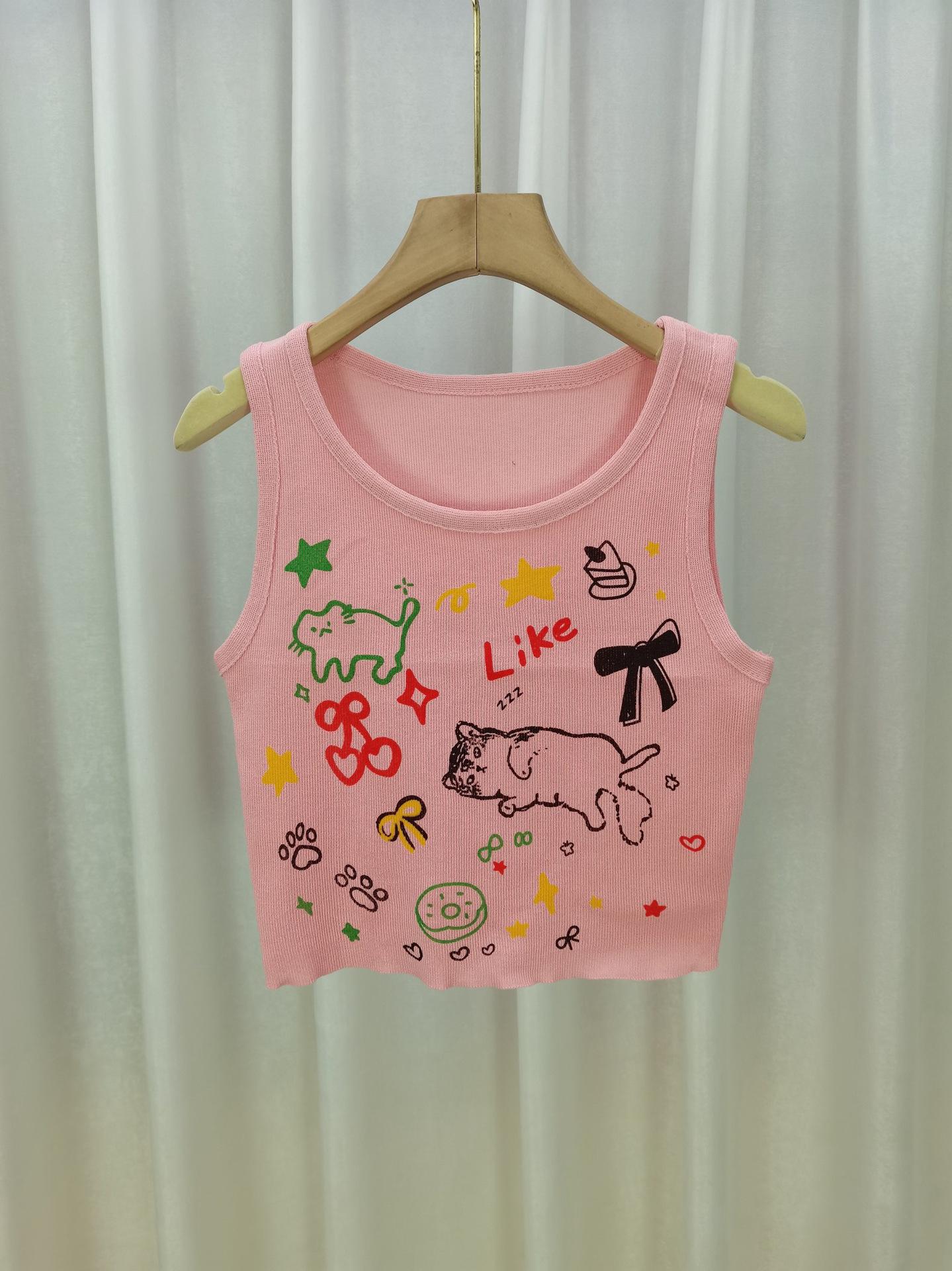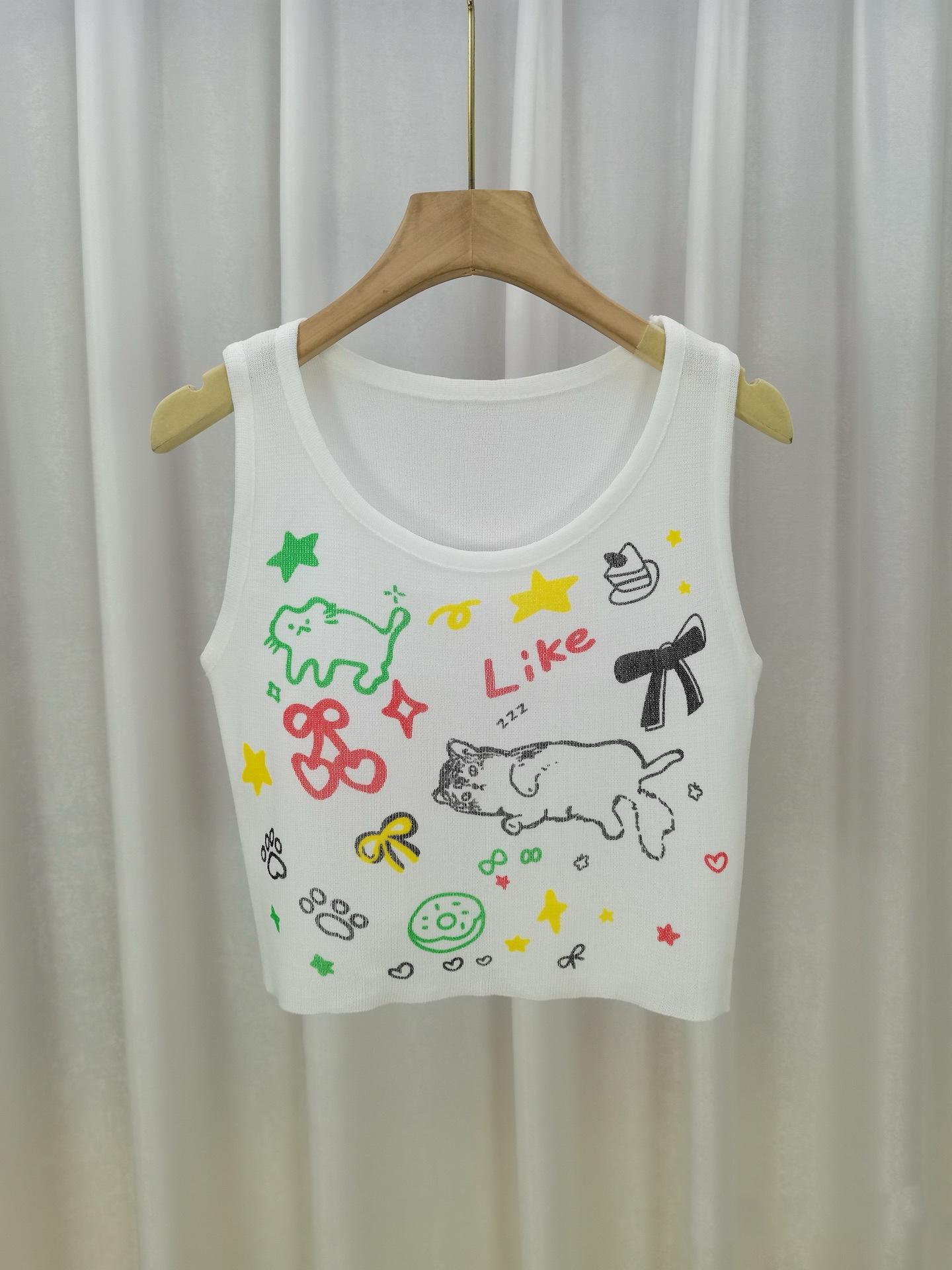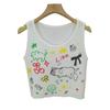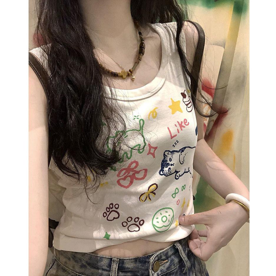 Camisola de verano nueva con dibujos animados, prenda exterior corta sin mangas, informal, ajustada, dulce, con grafiti, versátil