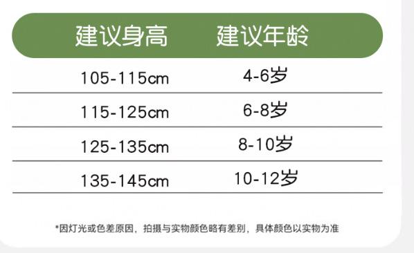4-6 years old [recommended height 105-115cm], 6-8 years old [recommended height 115-125cm], 8-10 years old [re...