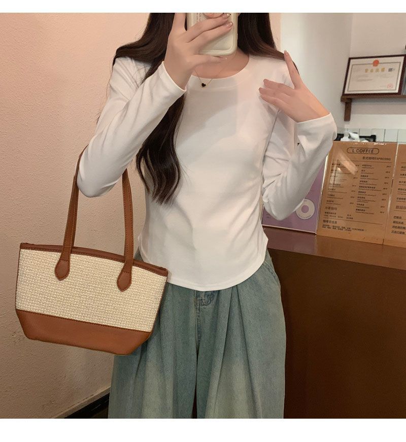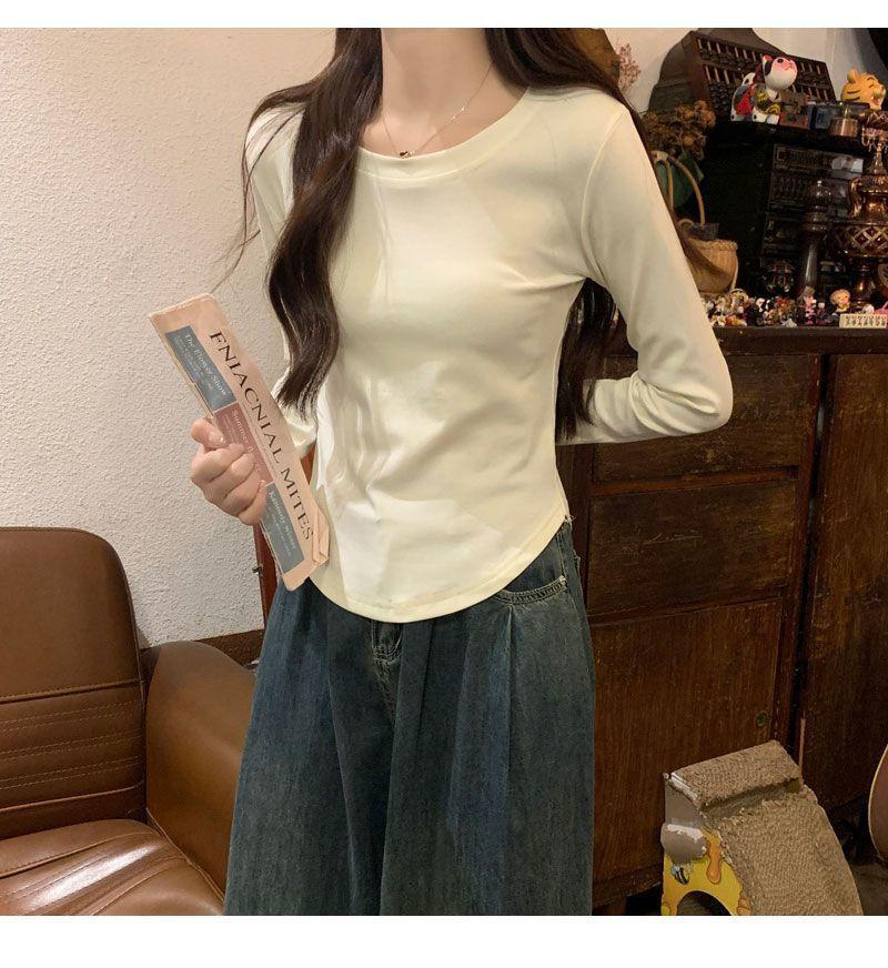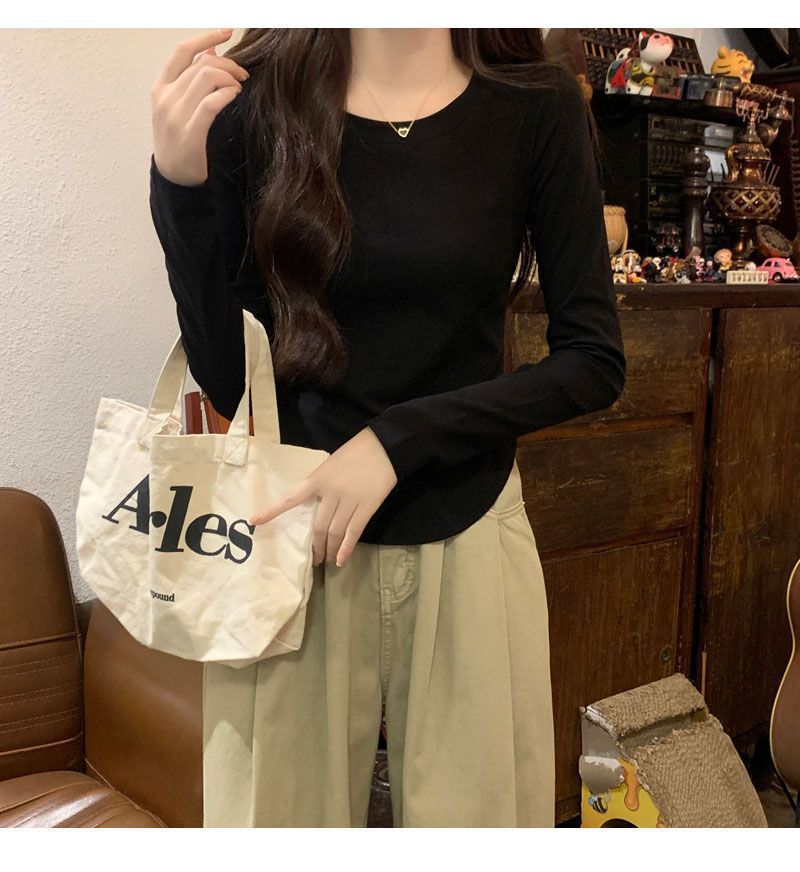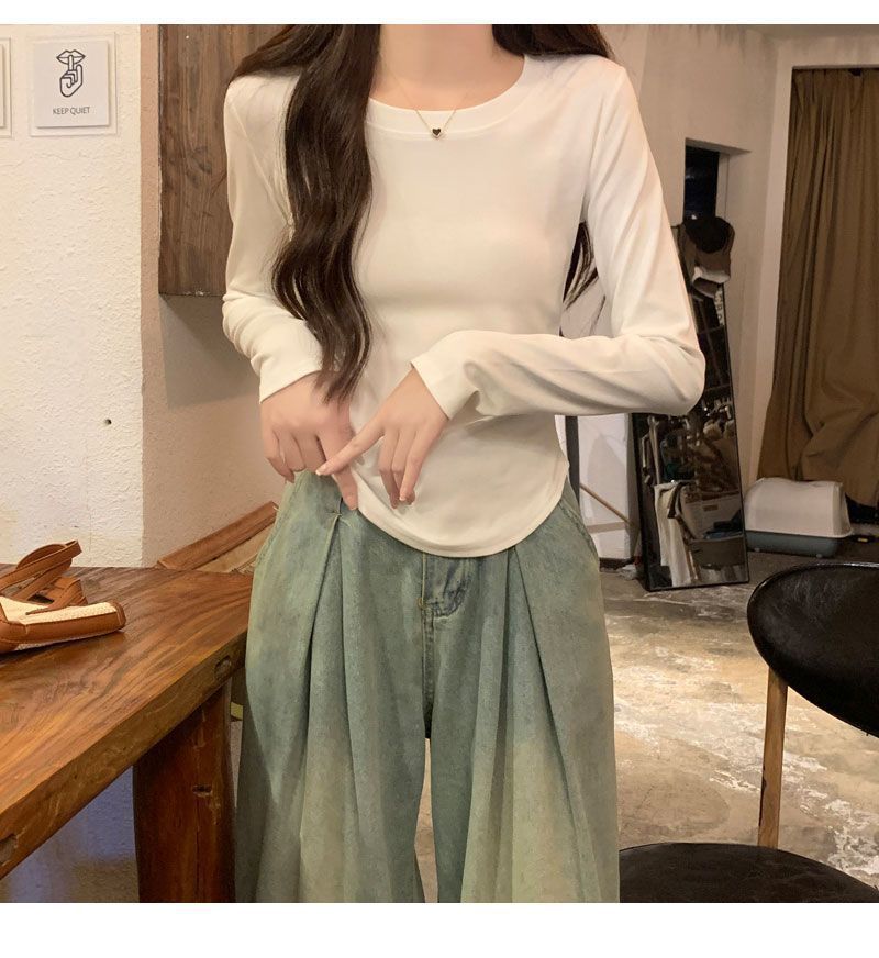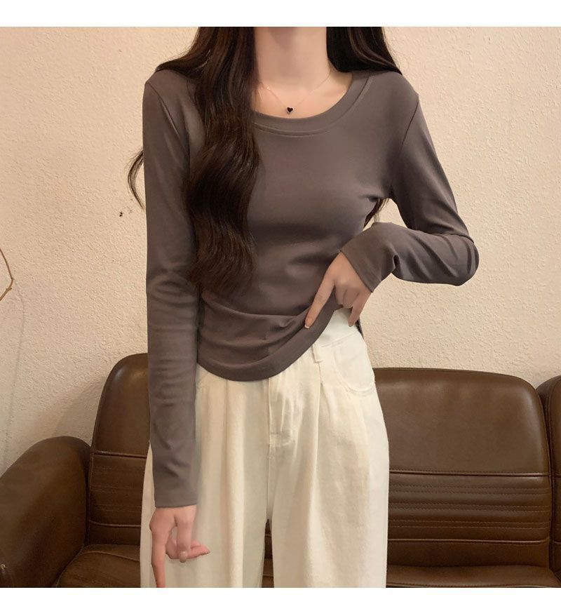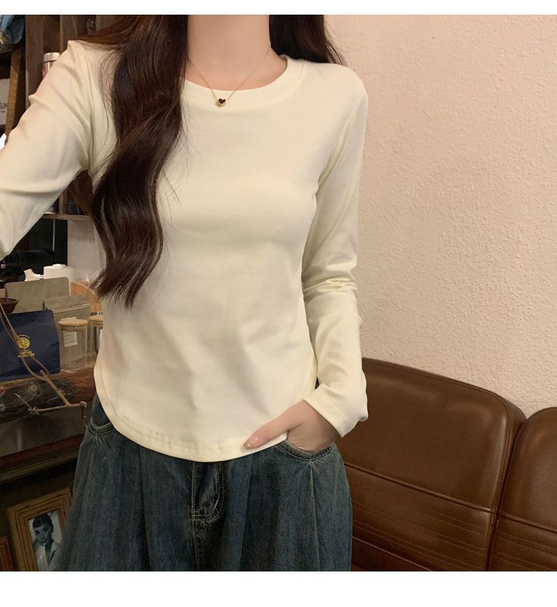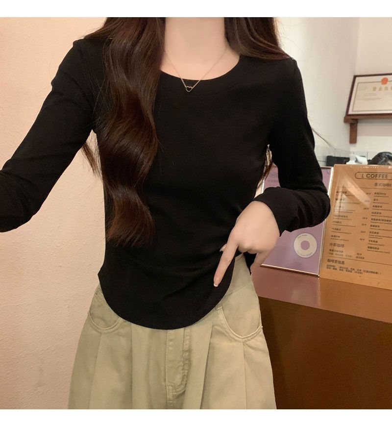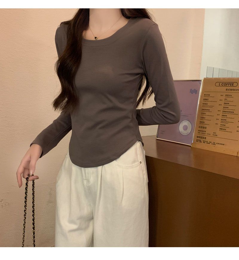 Camiseta básica de cuello redondo 2025, corte ajustado corto, camisa de manga larga para mujer, otoño e invierno, color puro, top curvo