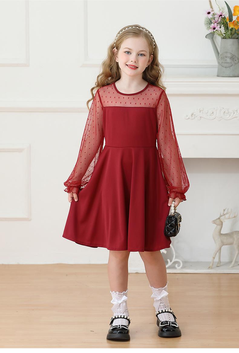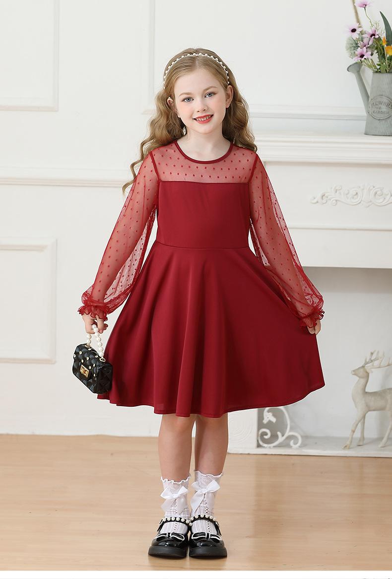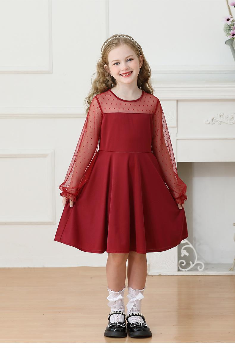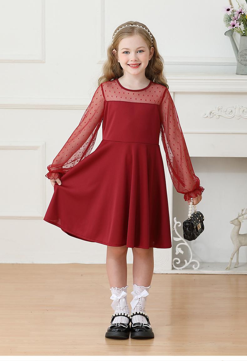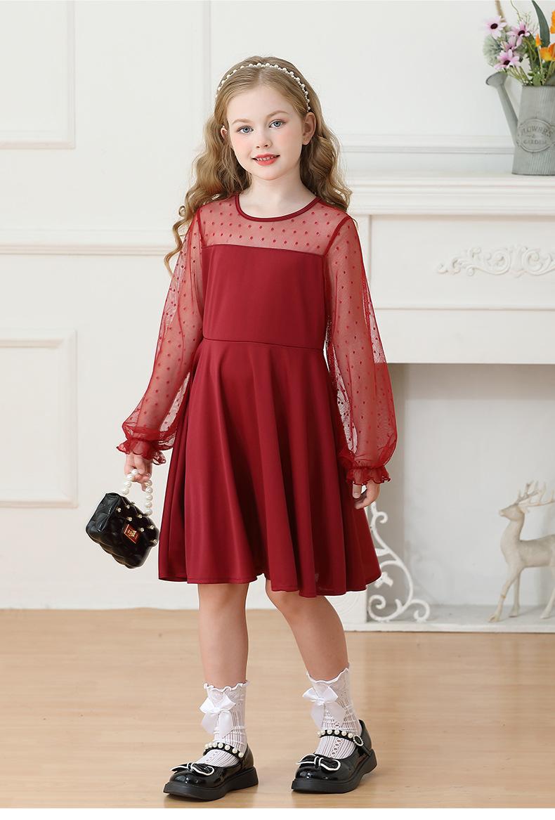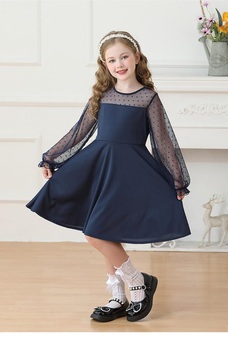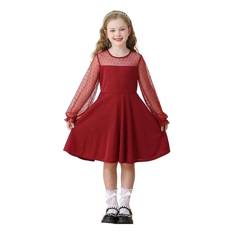 Vestido de princesa de encaje de malla para niñas de Amazon, vestido de fiesta de manga larga, vestido de graduación, vestido infantil, disfraz de actuación