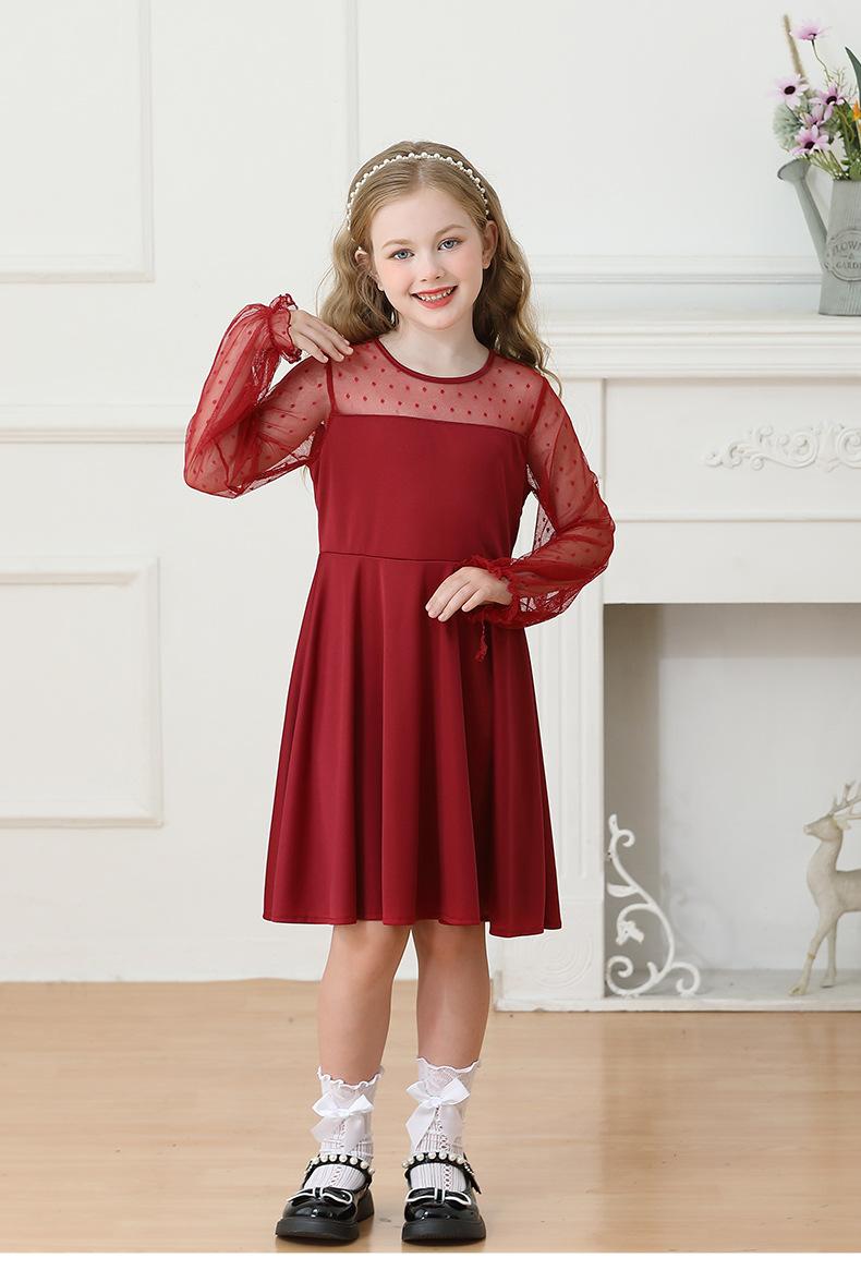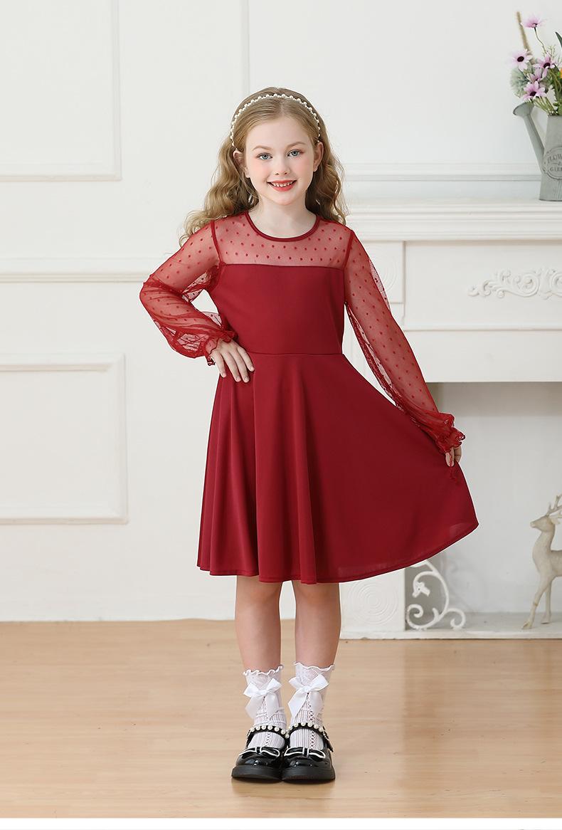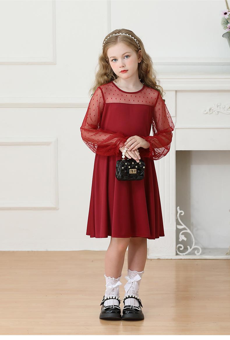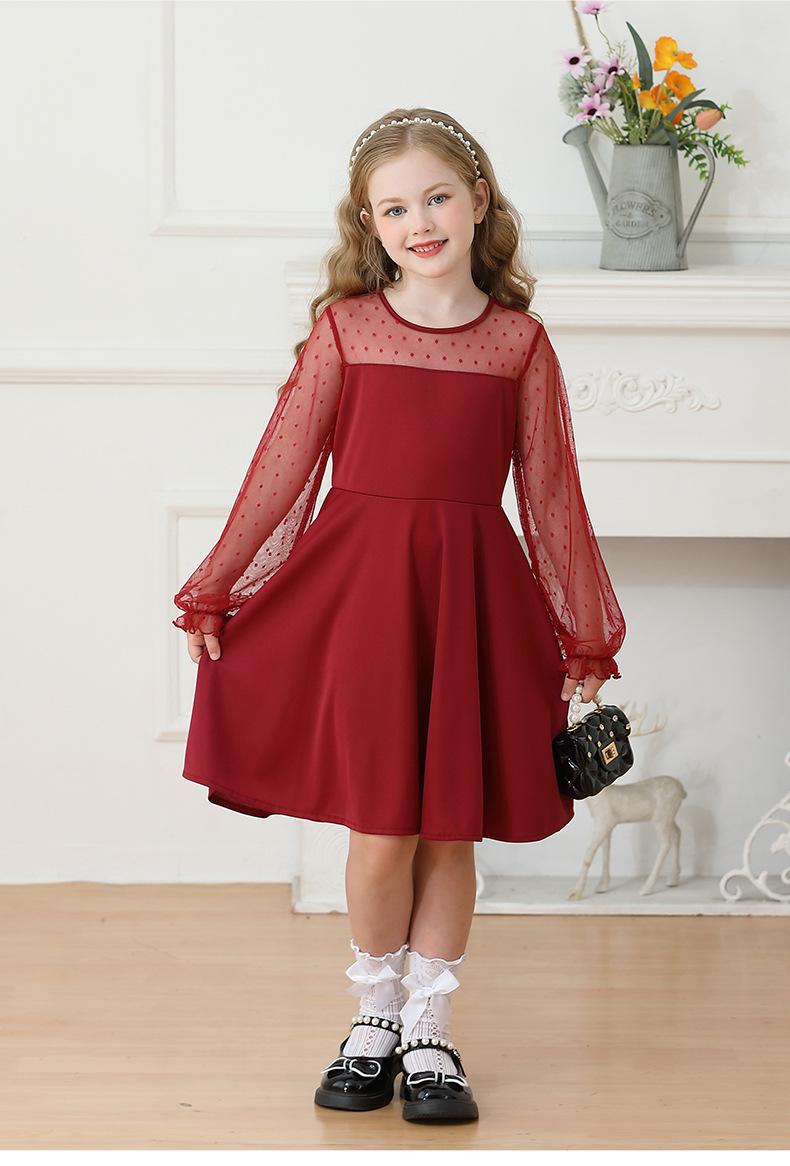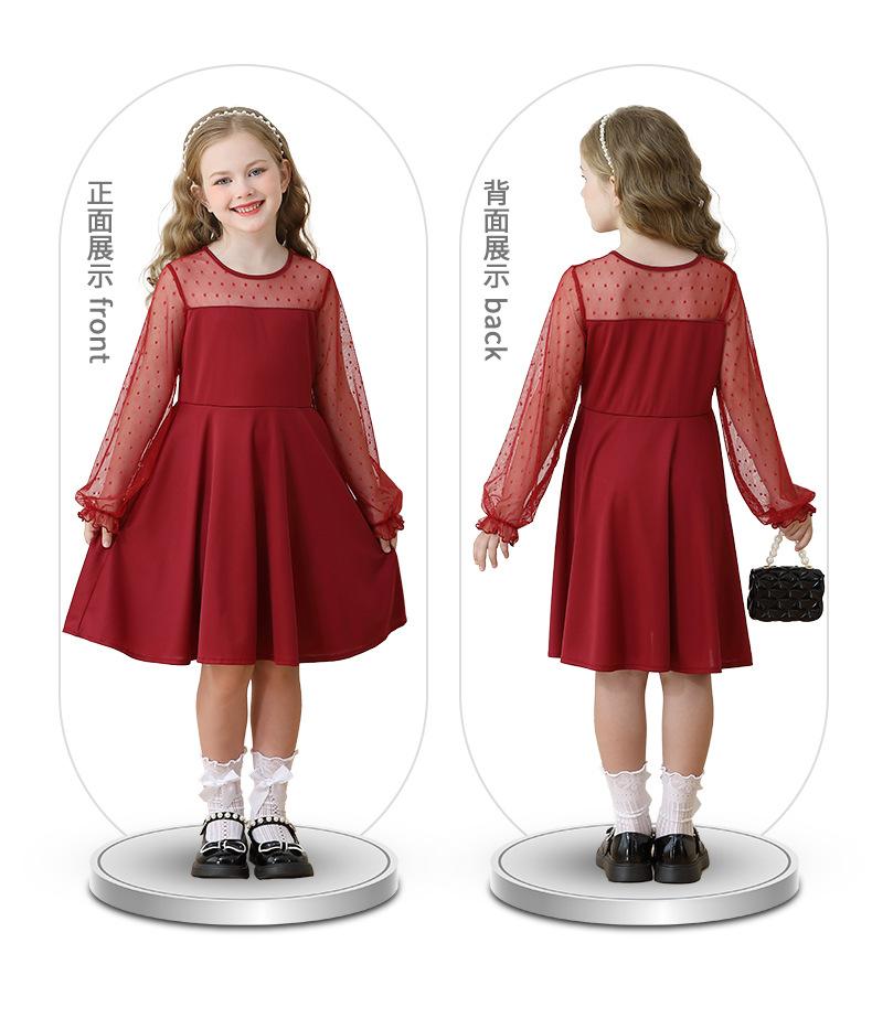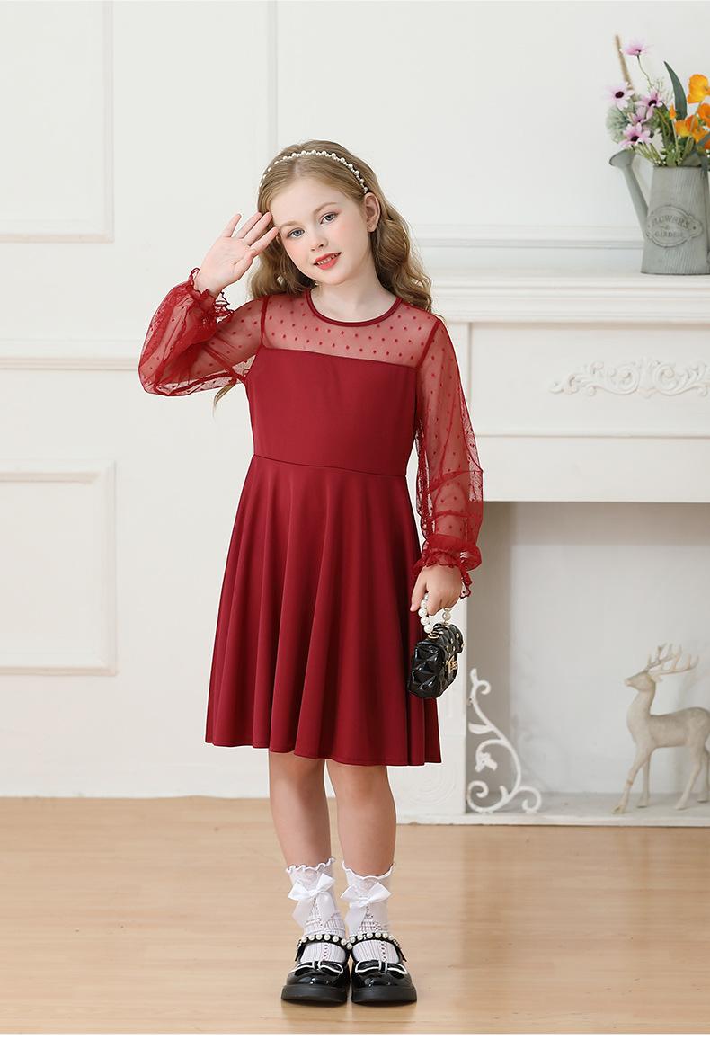 Vestido de princesa de encaje de malla para niñas de Amazon, vestido de fiesta de manga larga, vestido de graduación, vestido infantil, disfraz de actuación
