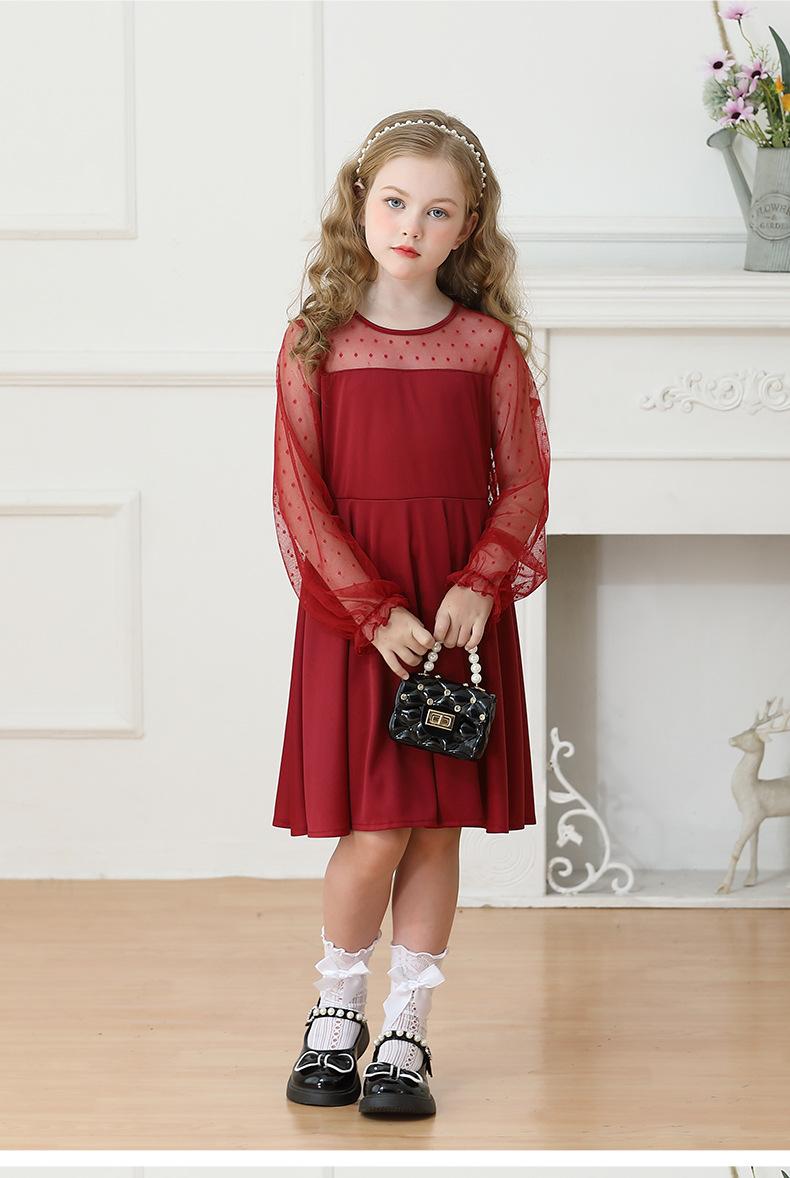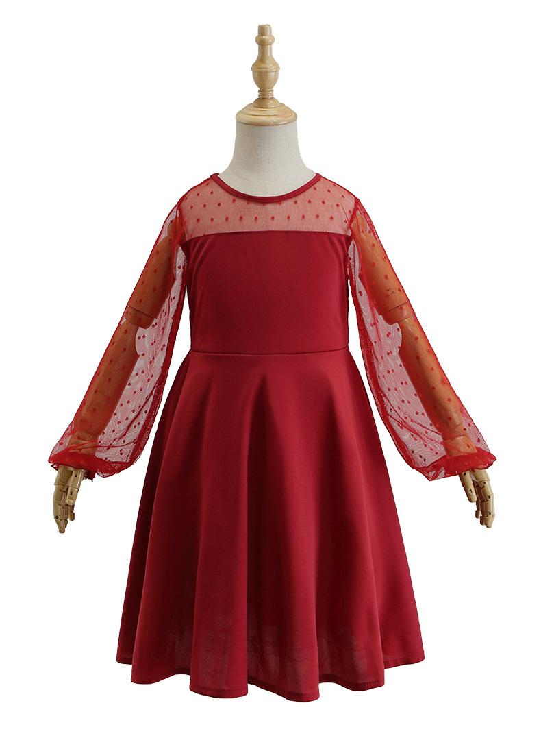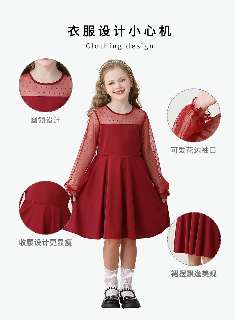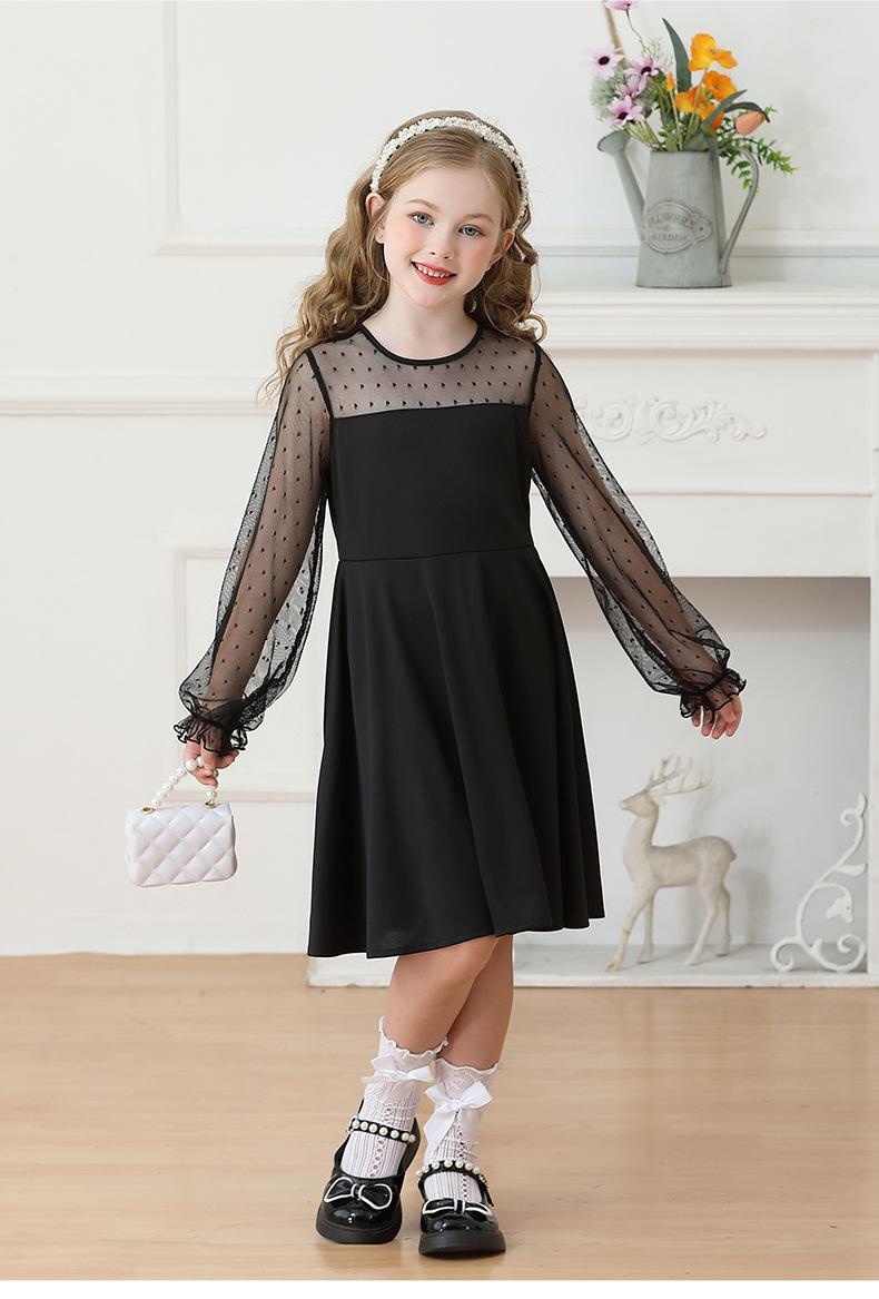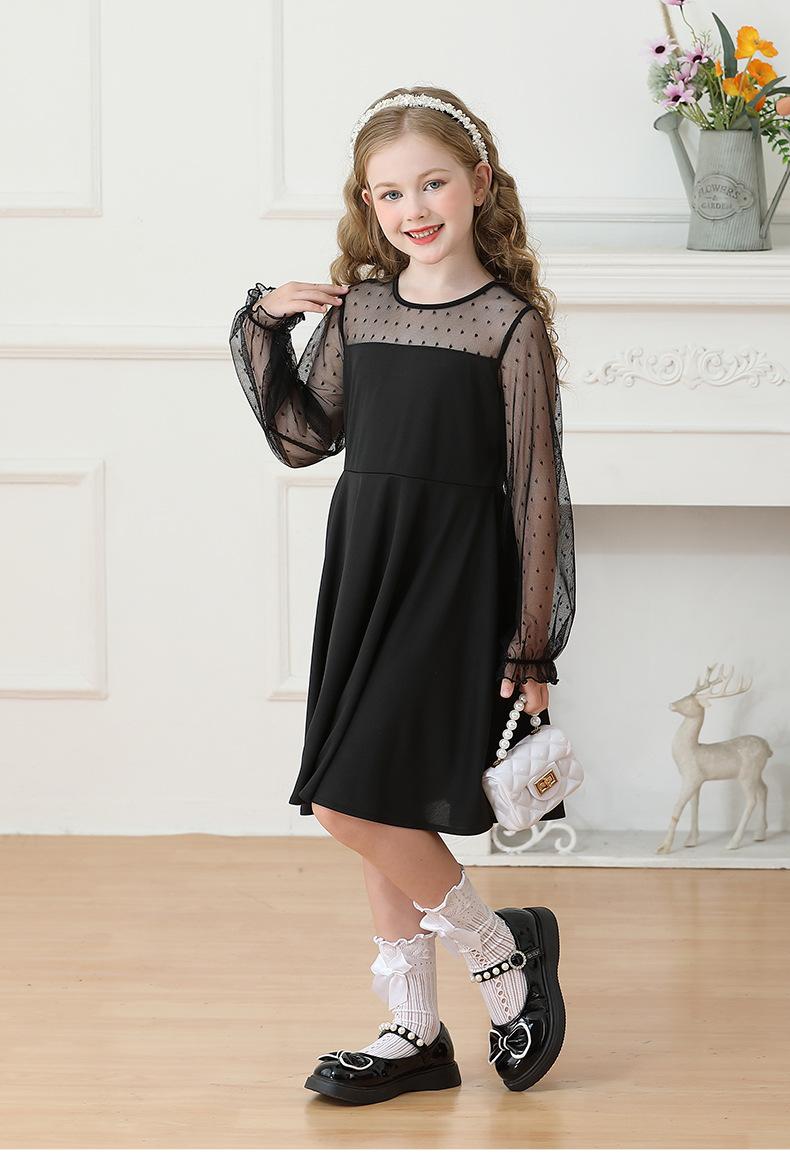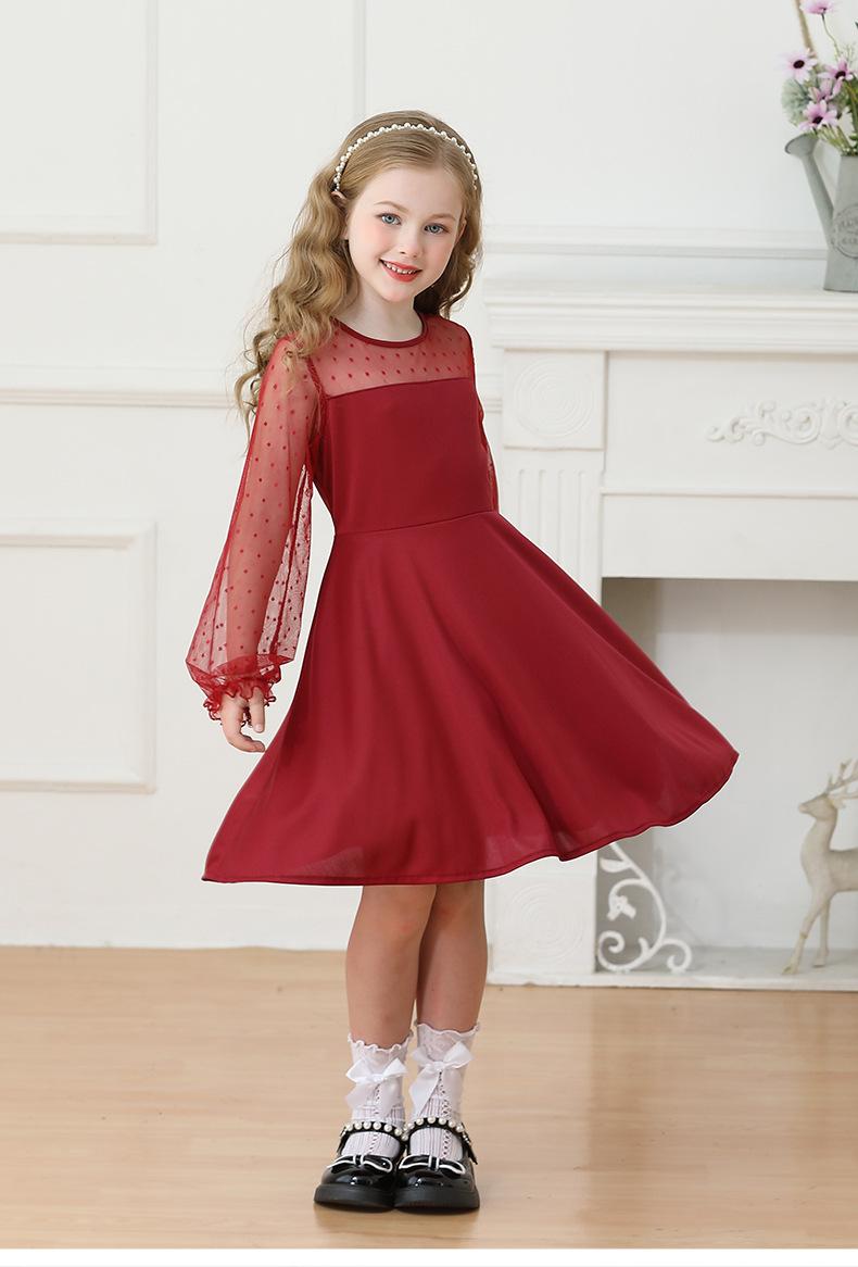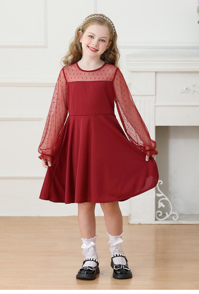 Vestido de princesa de encaje de malla para niñas de Amazon, vestido de fiesta de manga larga, vestido de graduación, vestido infantil, disfraz de actuación
