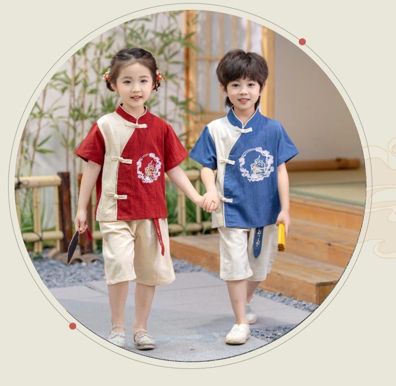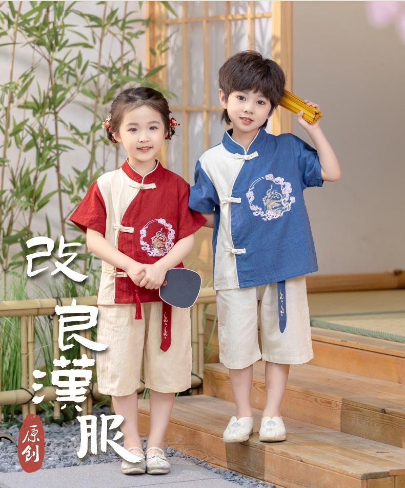 Disfraces de Actuación para Niños para el Día del Niño, Trajes Hanfu de Estilo Chino Nuevo para Niños y Niñas, Trajes Tang Chinos Tradicionales Disfraces para Recitación de Poesía para Verano