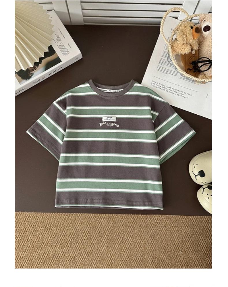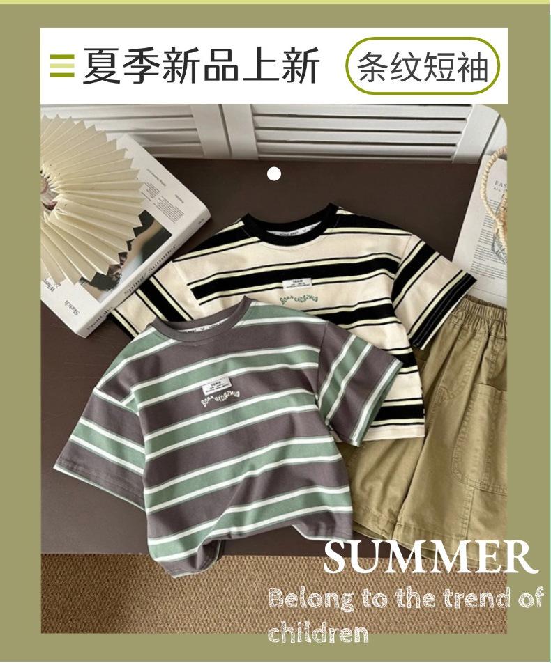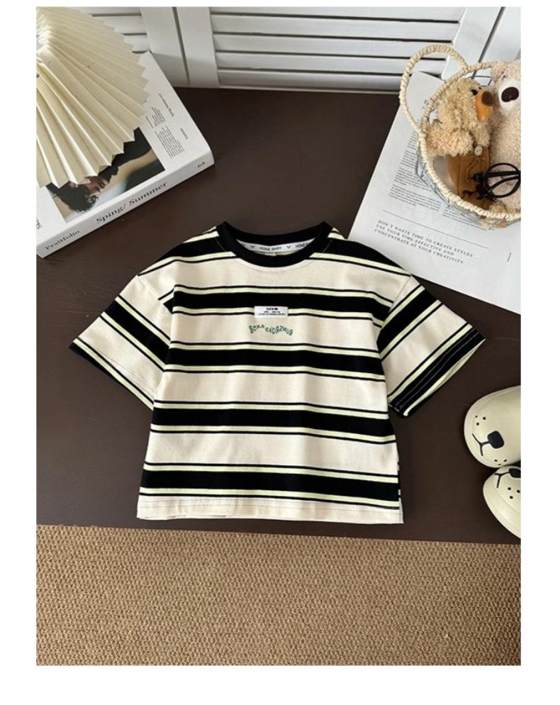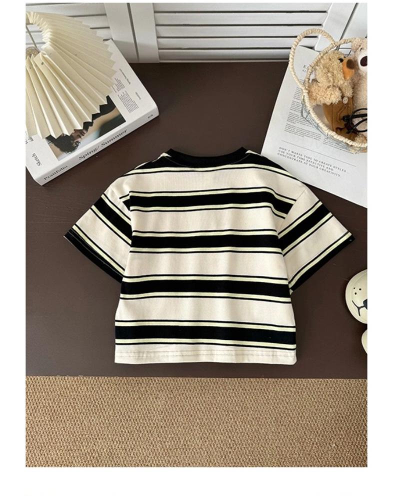 Camiseta de Manga Corta para Niño Top Rayado para Bebé 2025 Verano Nuevo Ropa Moda Camiseta Básica de Algodón de Media Manga para Niños