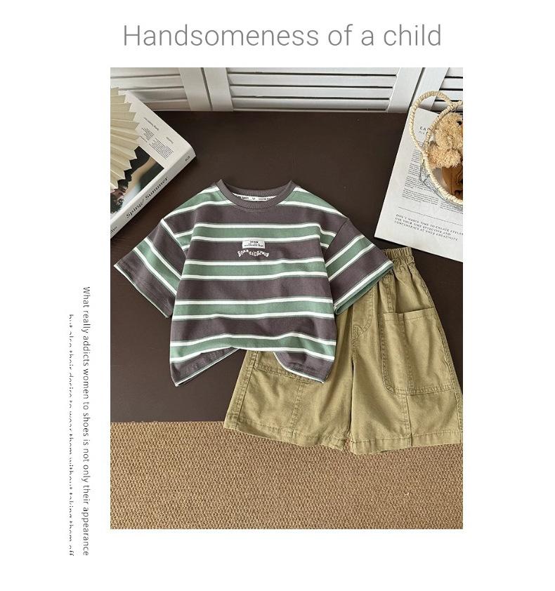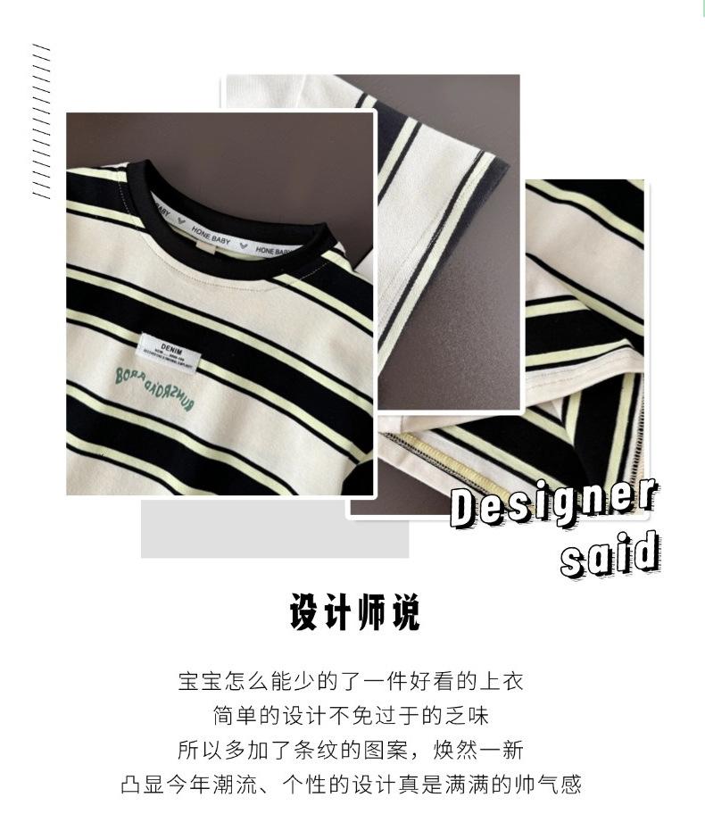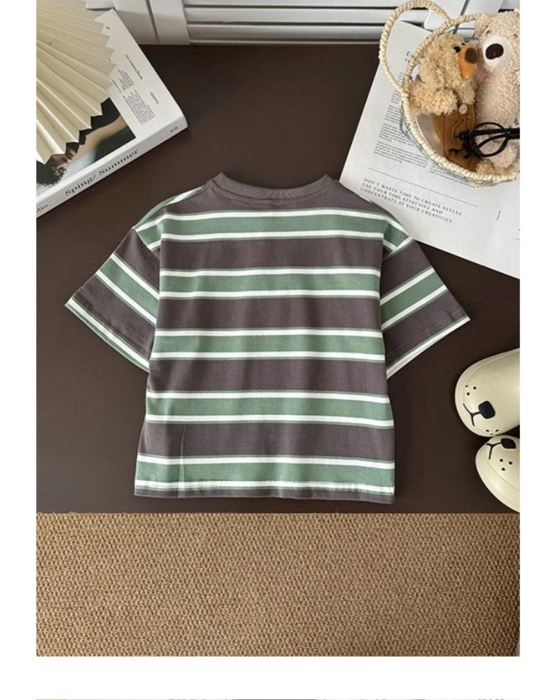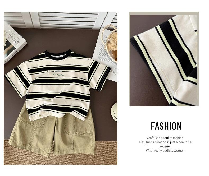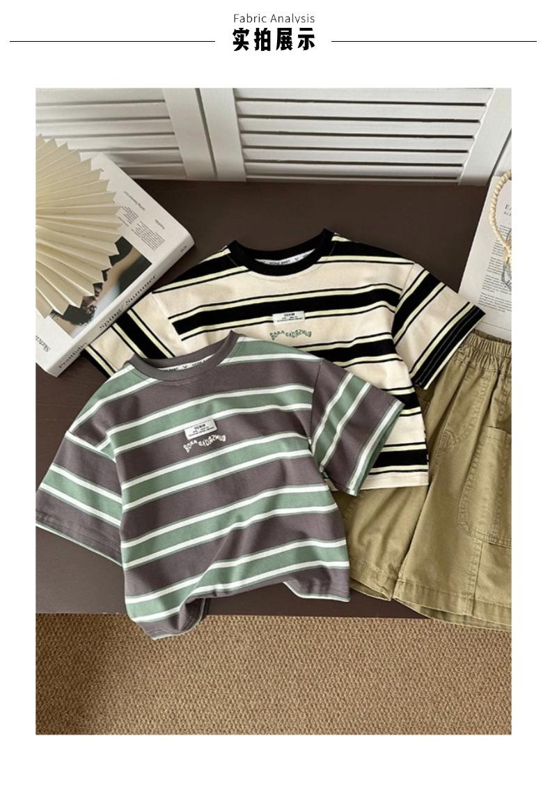 Camiseta de Manga Corta para Niño Top Rayado para Bebé 2025 Verano Nuevo Ropa Moda Camiseta Básica de Algodón de Media Manga para Niños