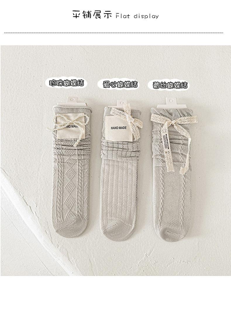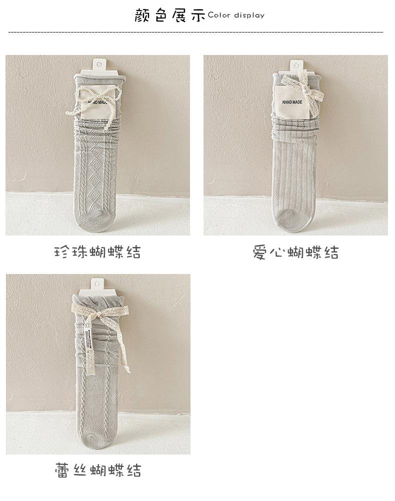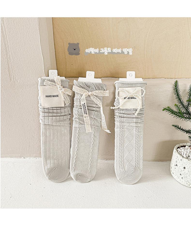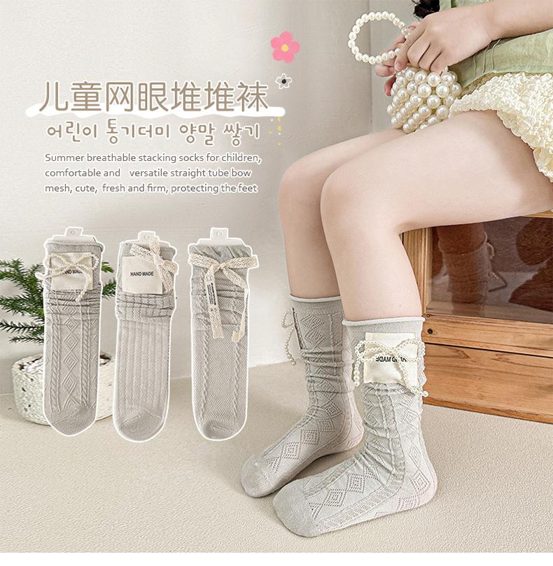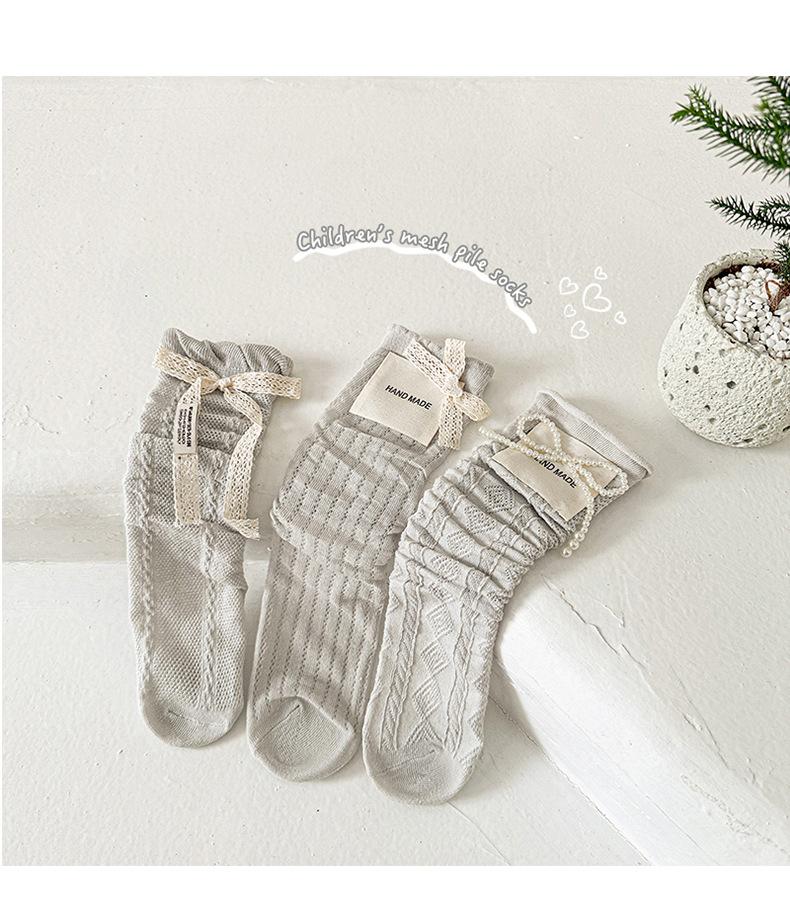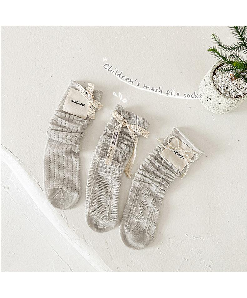 Calcetines apilados de rejilla para niños de la serie Grey Bow